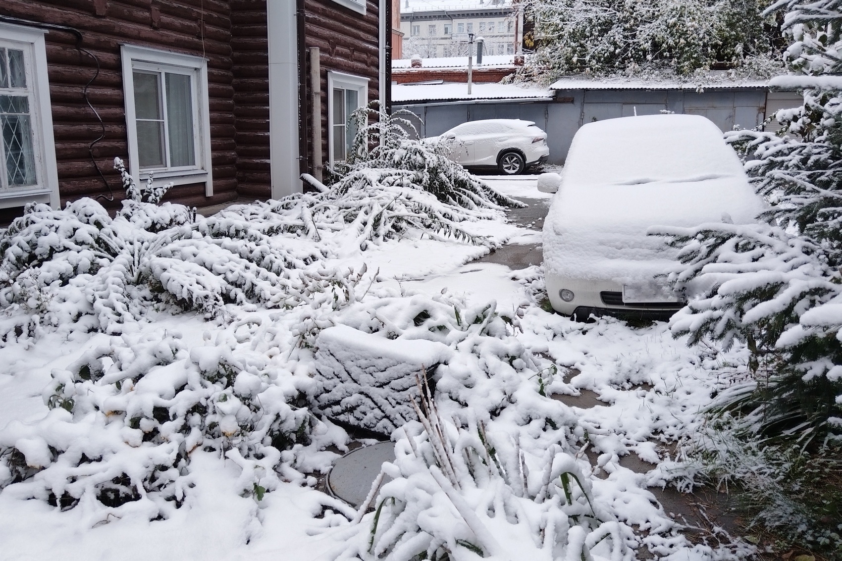В ночь на воскресенье, 5 октября, Новосибирск укрыло слоем белого и пушистого снега.