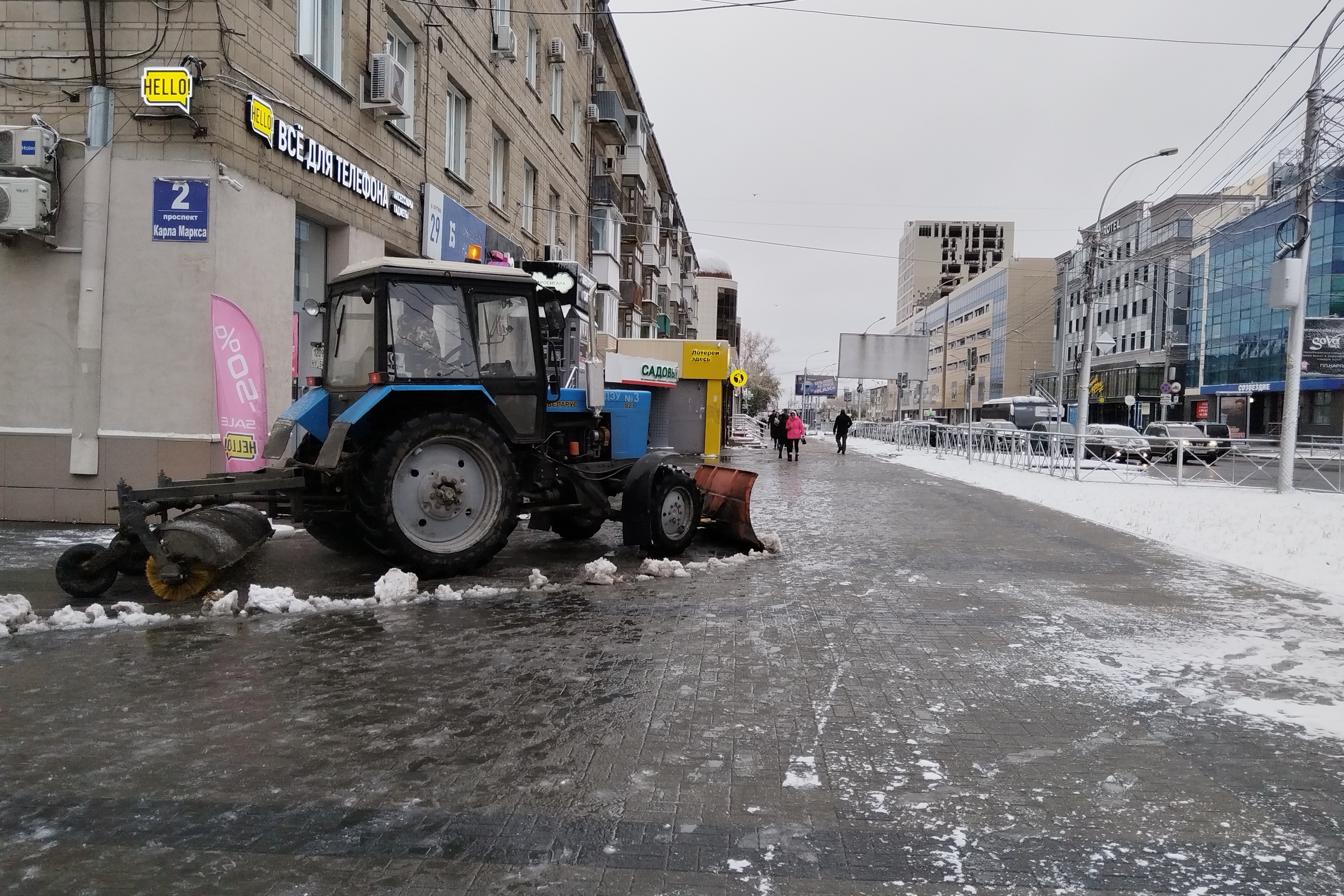 На дороги и тротуары уже вышла техника для борьбы с последствиями ночного снегопада.