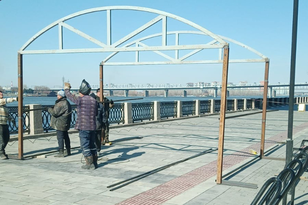 Временную конструкцию для безопасности горожан начали строить на Михайловской набережной в Новосибирске.