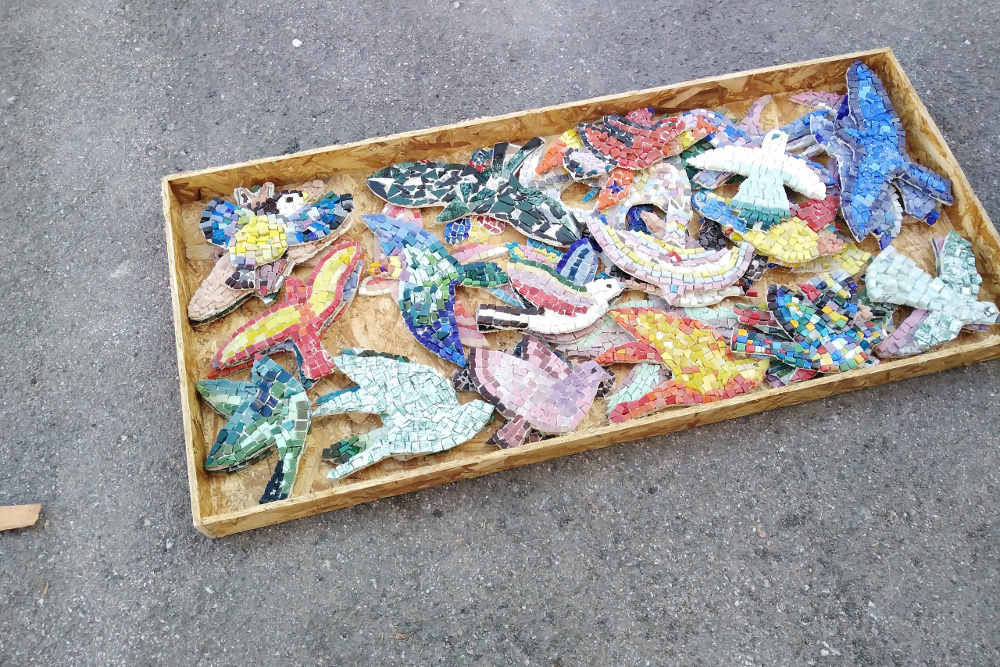 Проект «Птицы тоже люди» запустила в июле мастер-мозаист Галина Машнёва. Она предложила горожанам вместе сделать композицию. Для фигурок использовали цветное стекло, керамику, зеркало и другой декор.
