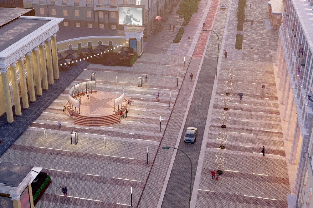 В планах обустроить между предполагаемым комплексом и кинотеатром площадь Победы. Об этом давно просили общественники. Застройщик готов финансировать. И даже предложил эскизы: фонтан, вокруг — мощёное пространство для тематических выставок. Но пока это только наброски, которые тоже смутили местных жителей.