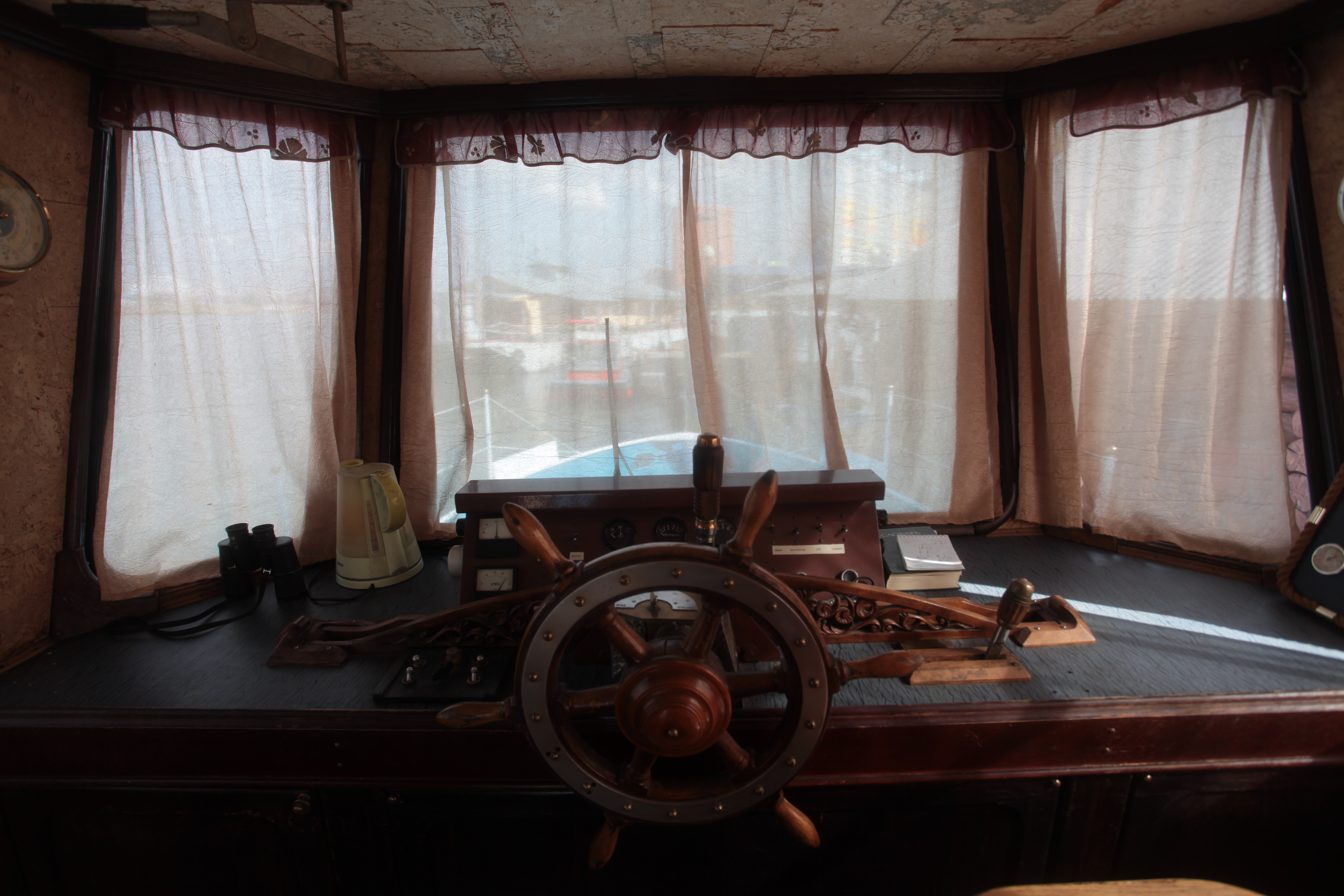«В 1989 году я купил за 900 рублей списанный в Колпашево теплоход. Вложил очень много сил и средств, чтобы привести его в порядок. Рубку переделывали, на палубе установили навес от солнца. Затем появилась баржа. На ней построили из калиброванного бревна домик с баней. В итоге получился целый плавучий комплекс для летнего отдыха. На веранде можно расставить столы и скамейки на большую компанию. И ещё останется место для танцев», — рассказывает хозяин передвижной дачи.