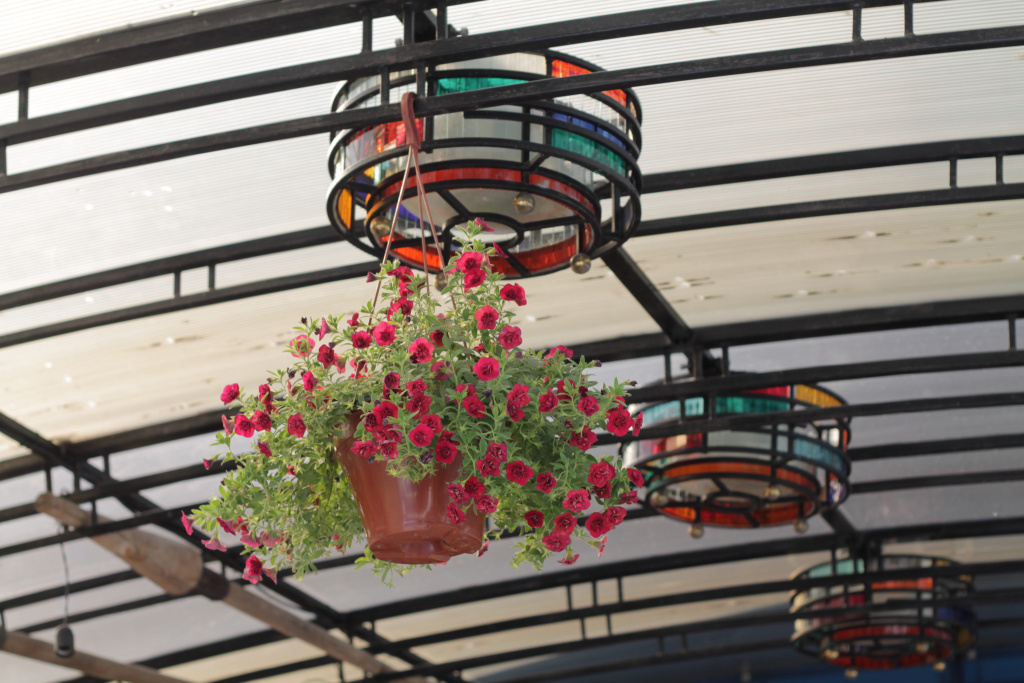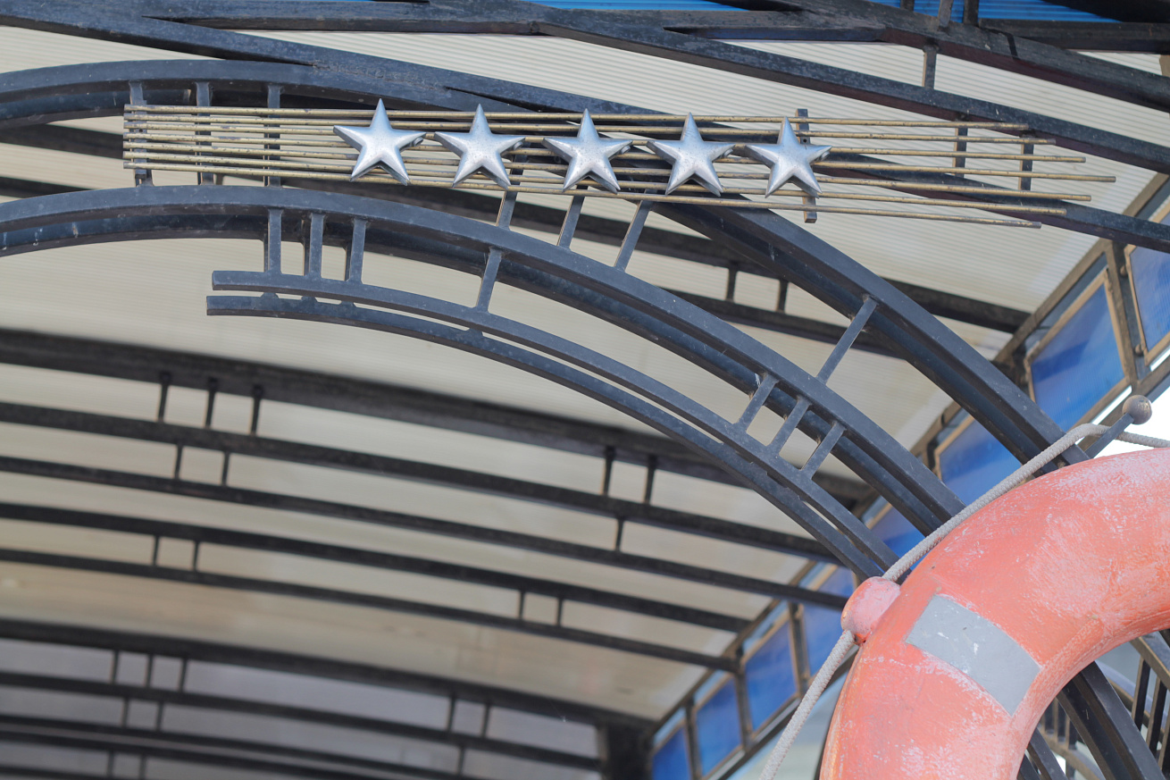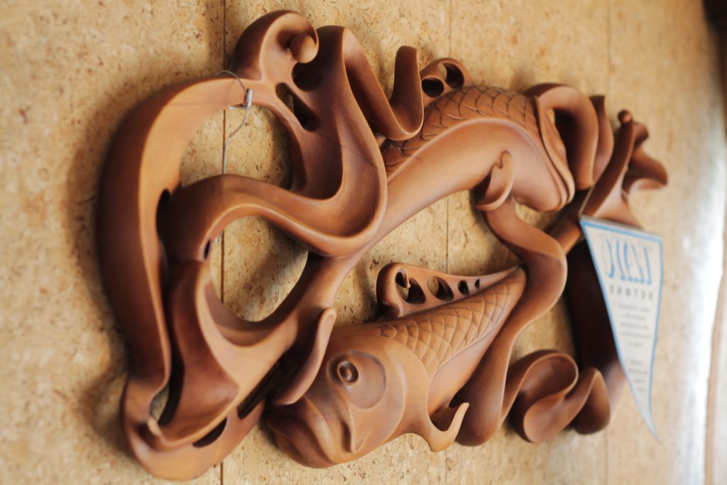 Элементы декоративного оформления и некоторые предметы интерьера выполнены по проектам члена союза художников России Евгения Лукина. По словам Геннадия Фёдоровича, они давние товарищи. Светильники ручной работы в стиле модерн — это особая гордость как хозяина хаусбота, так и самого автора.