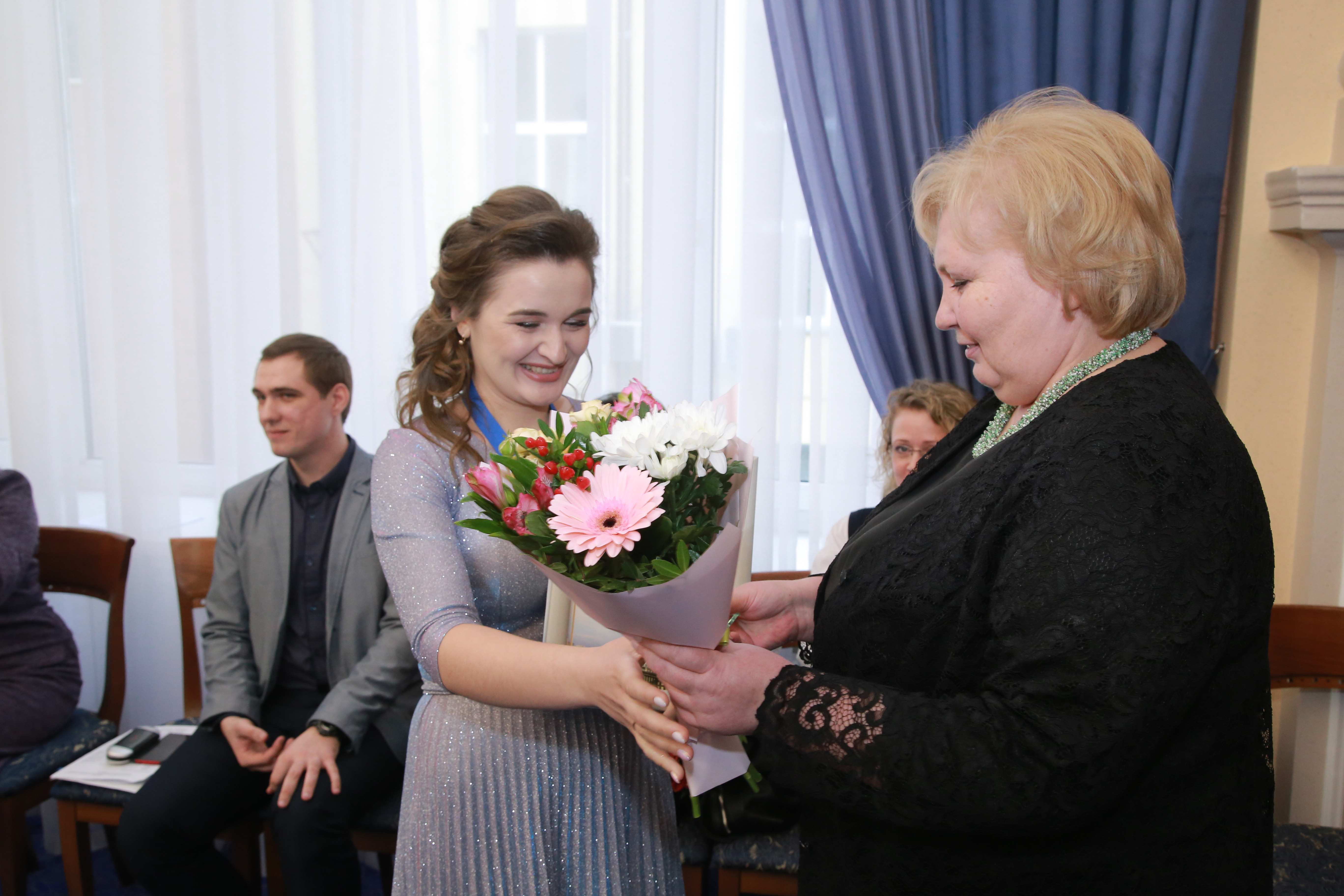 Наталья Худякова и начальник департамента образования Рамиль Ахметгареев. Фото: Павел Комаров, nsknews.info