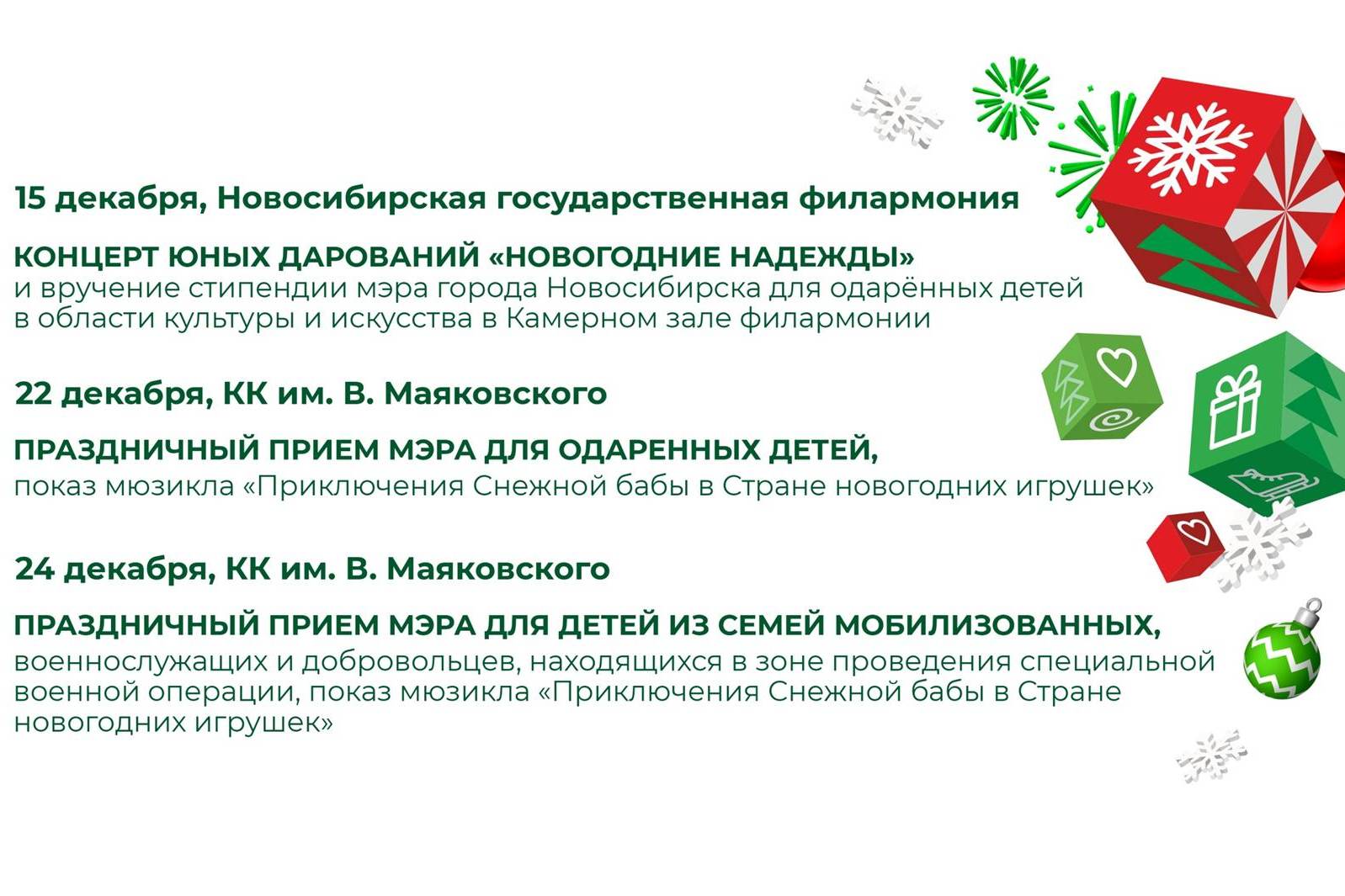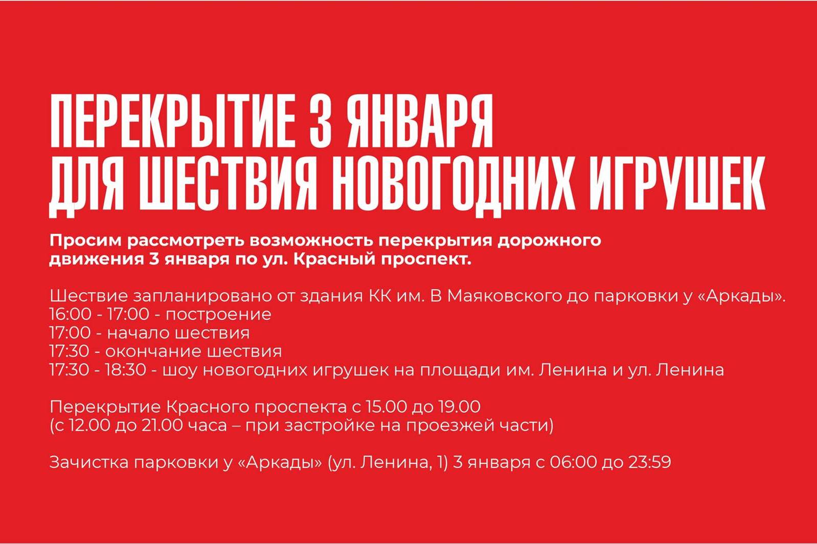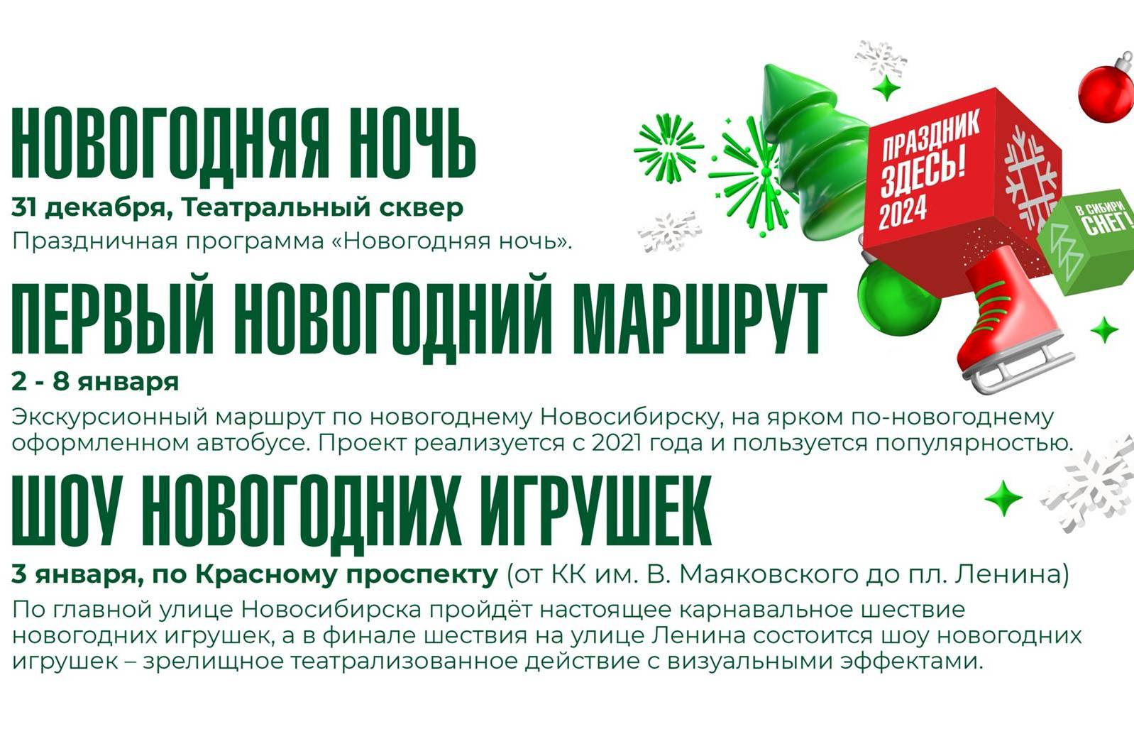 Добавим, что 3 января в городе собираются провести карнавальное шествие новогодних игрушек по Красному проспекту. Завершится оно театрализованным шоу с визуальными эффектами. Кроме того, на длинных зимних каникулах новосибирцев ждут праздничные автобусные экскурсии, фестиваль снежных баб, «Самый добрый концерт» и другие развлечения. Массовую встречу Нового года в ночь на 1 января запланировали в Театральном сквере перед НОВАТом возле главной городской ёлки, которая, кстати, уже зажглась.