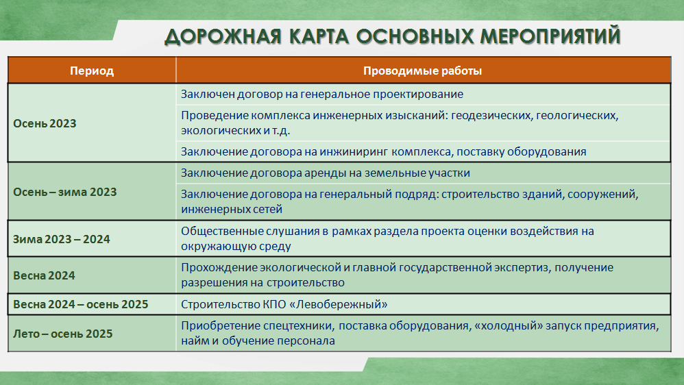 «Срок соглашения — 25 лет с момента подписания, из них два года — это фаза строительства. То есть мы к концу 2025 года должны получить этот объект. Весь остальной период — это период эксплуатации.