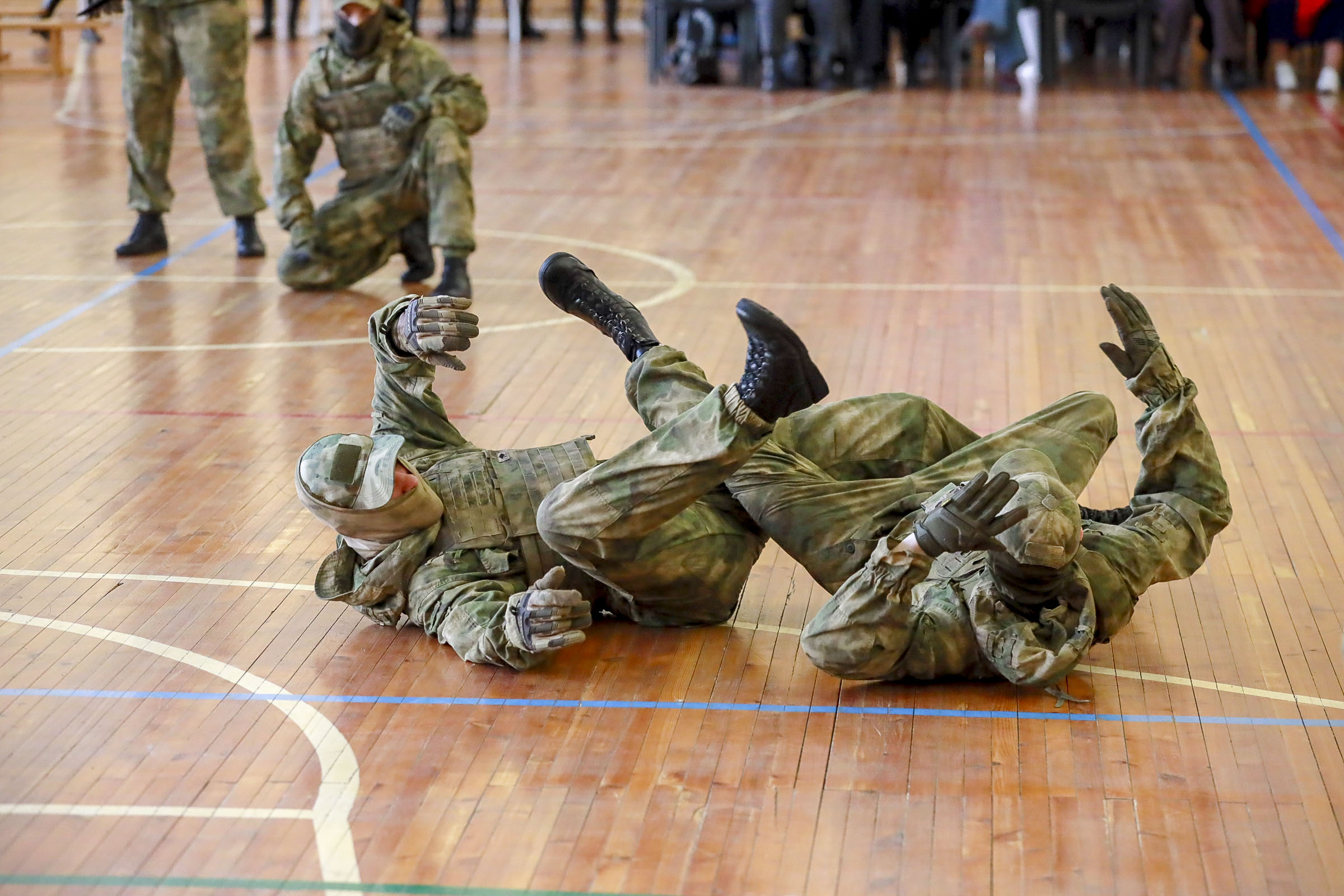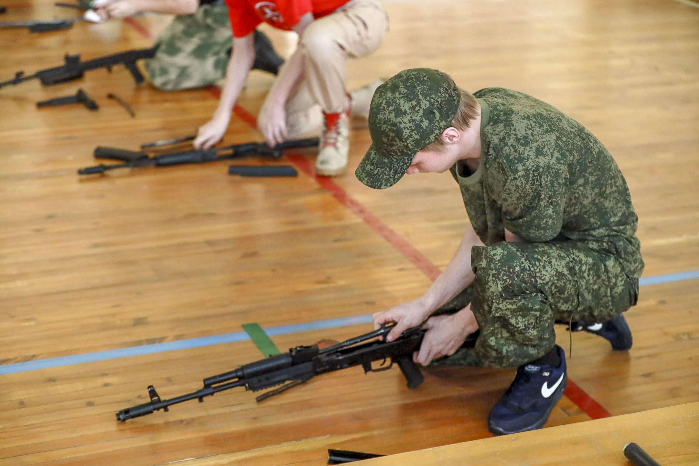 «Мы ходим строевым шагом, он намного выше — практически под девяносто градусов. Мы всякие движения показываем с карабином: крутим, вертим его. Тренировки каждый день. Это оттачивается до автоматизма», — рассказала участница конкурса «Защитником быть — Родине служить!» Айпери Эрмекбаева.