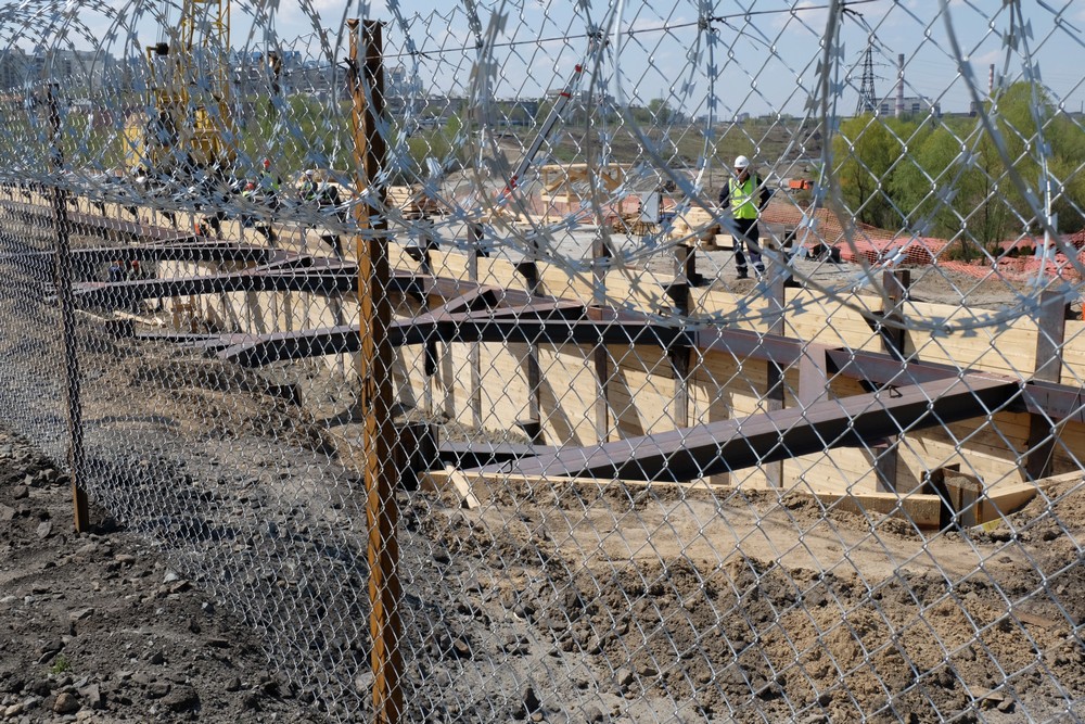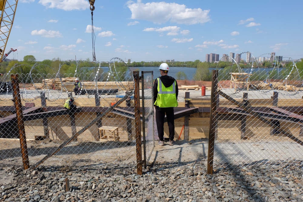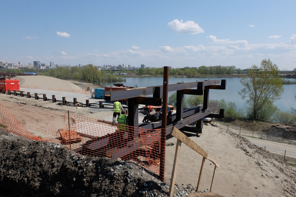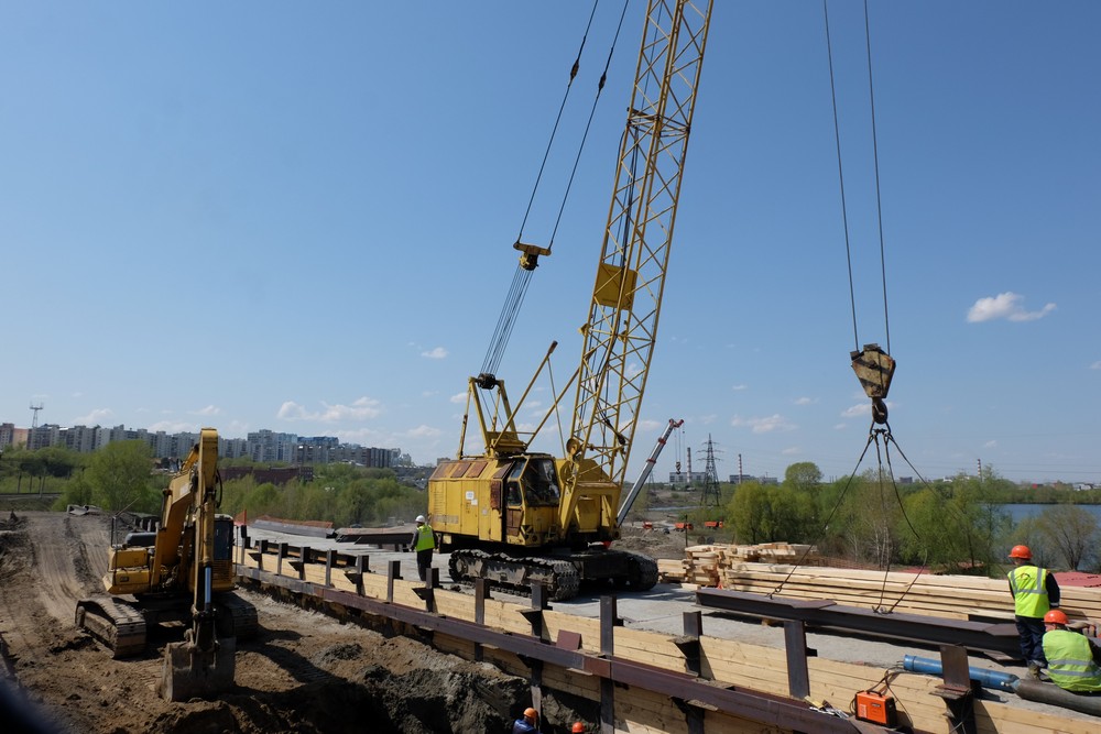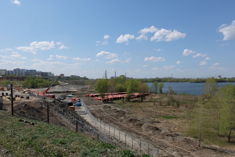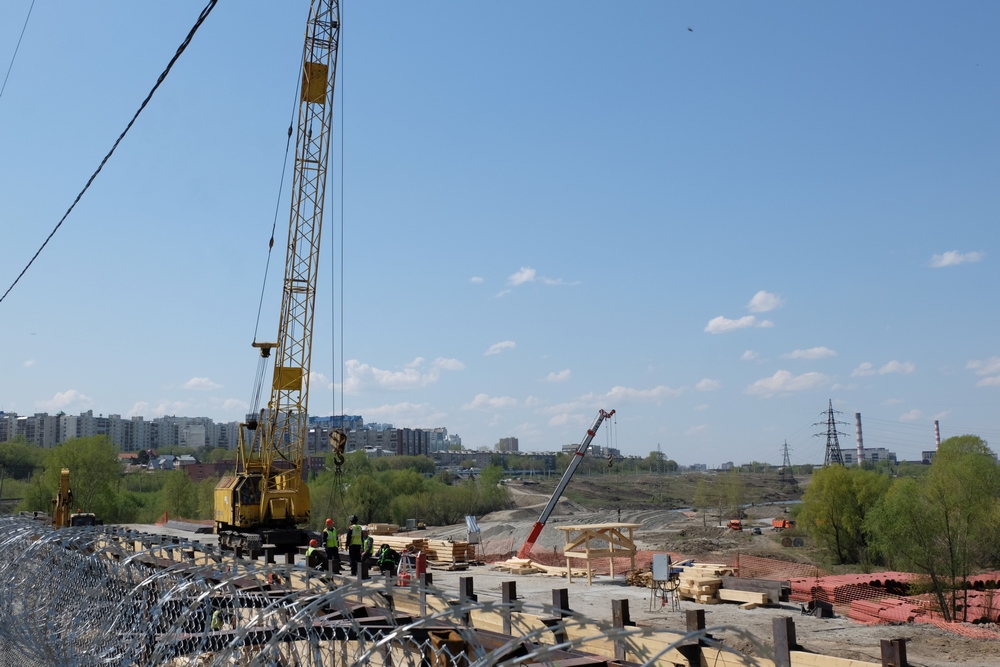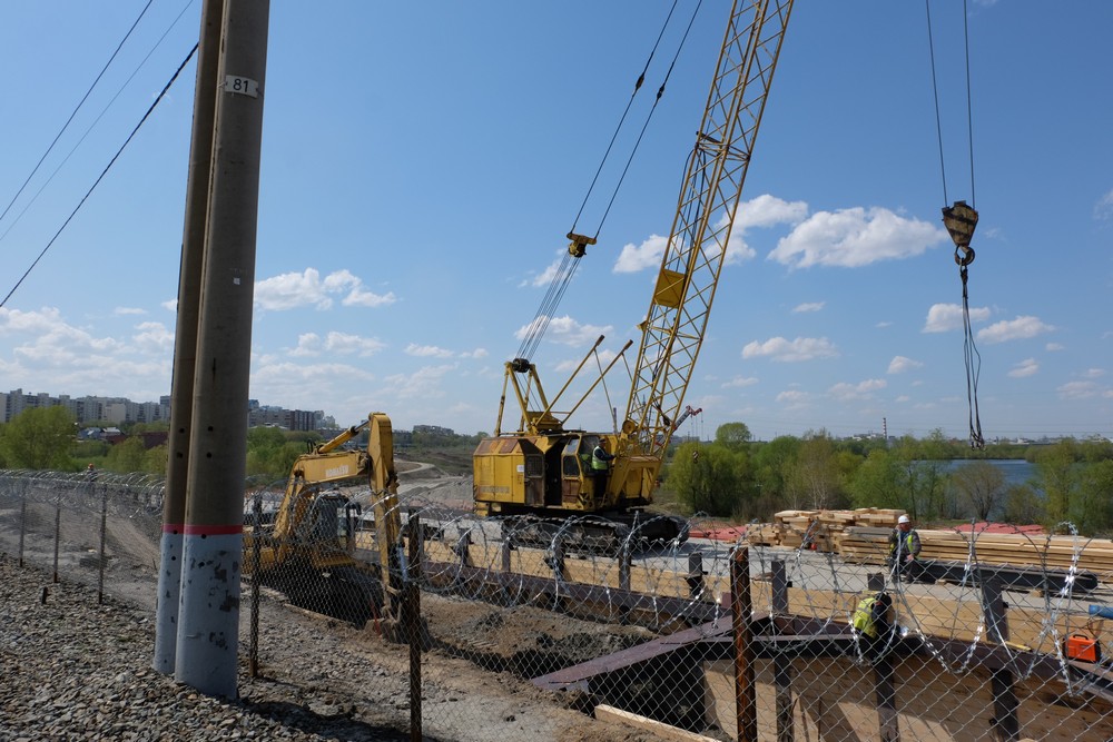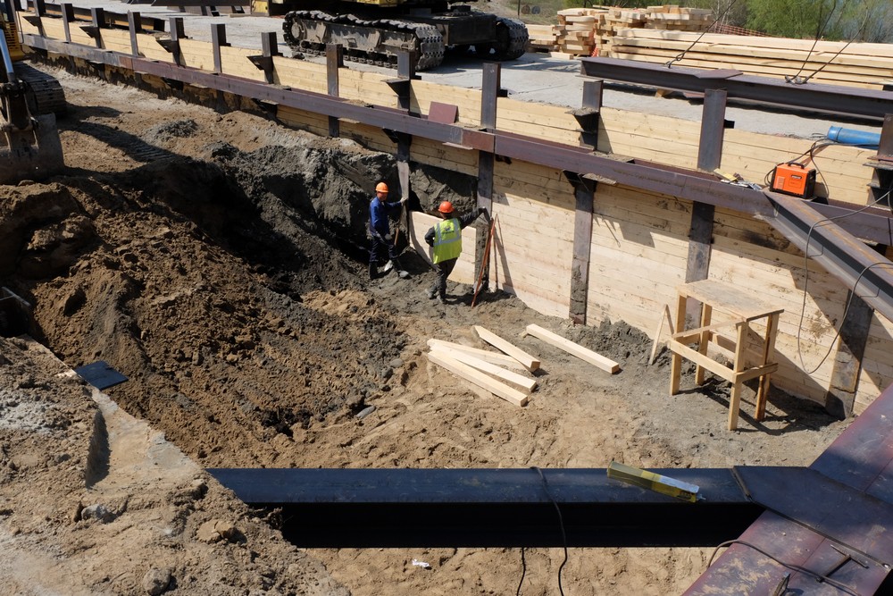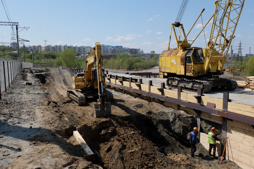 На строительной площадке идёт подготовка к бурению будущего тоннеля. Длина его подземной части составит 45 метров, высота — пять метров, в нём будет шесть полос движения. Сейчас с двух сторон железнодорожной насыпи рабочие копают котлованы и с помощью сварки укрепляют их защитными сводами. На стройке работают подъёмный кран и несколько экскаваторов.