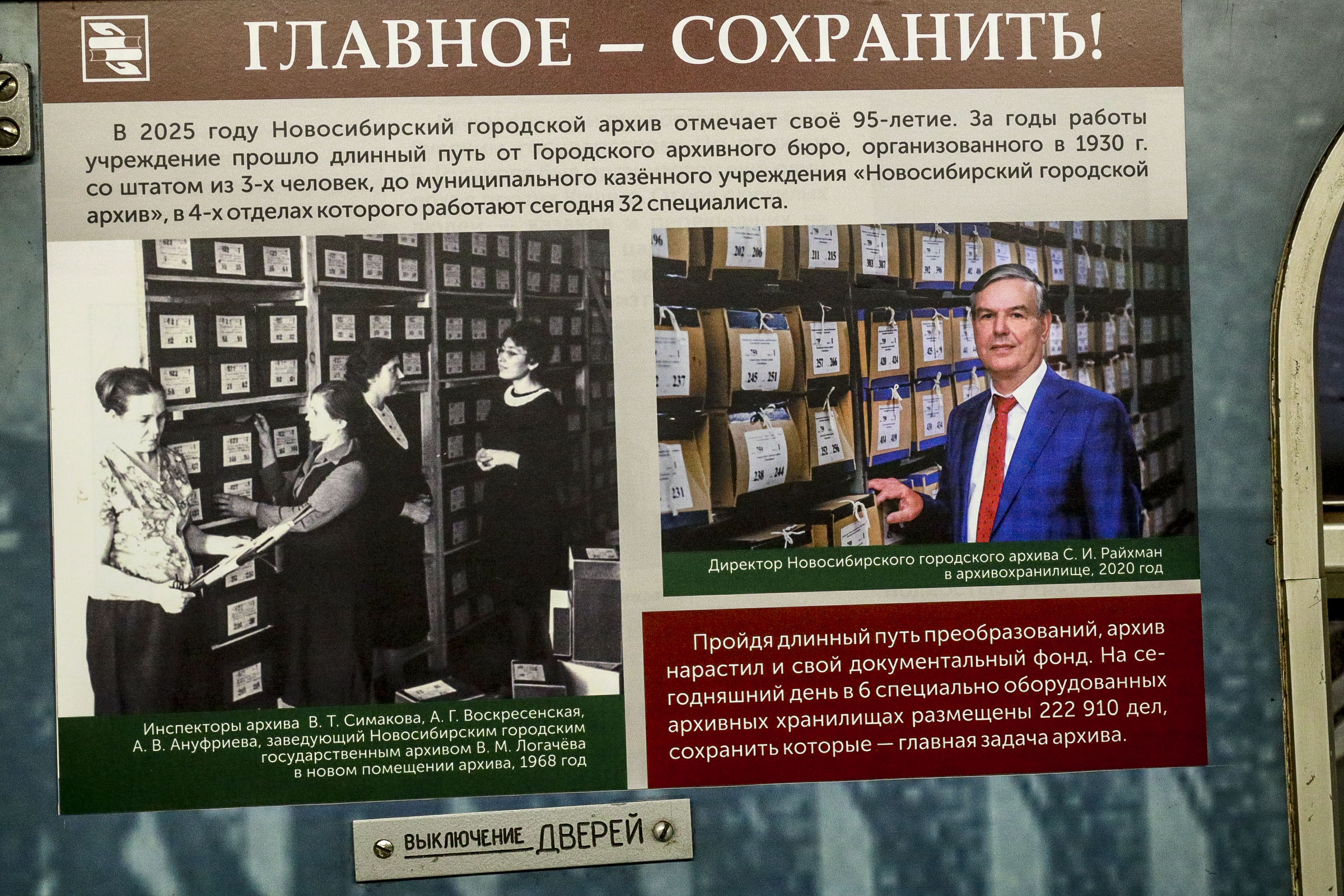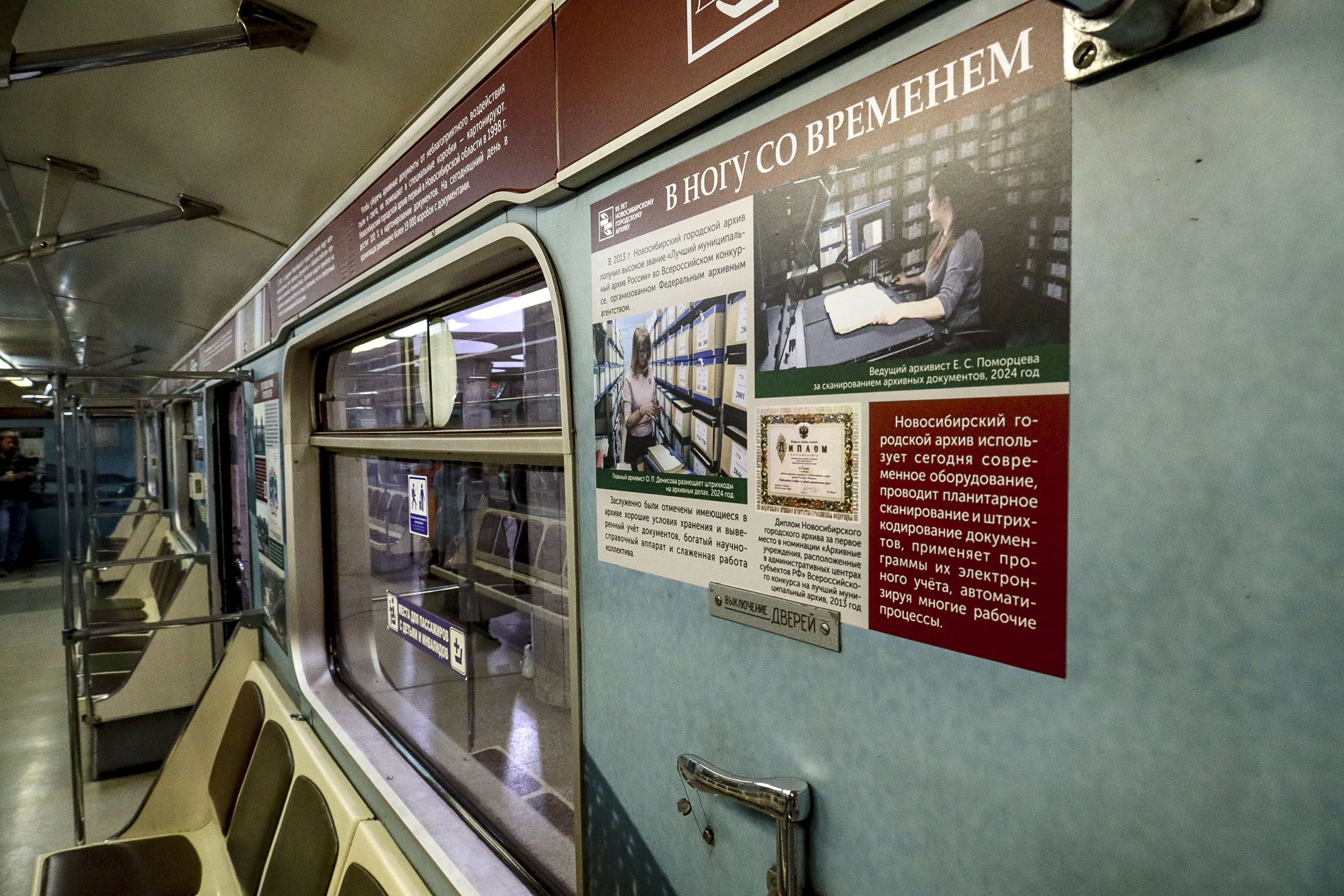 В Новосибирском метрополитене оформили новый вагон-музей. Он посвящён 95-летию городского архива. Экспозиция «Сохраняем историю города» рассказывает о работе учреждения, его сотрудниках и, конечно, становлении Ново-Николаевска.
