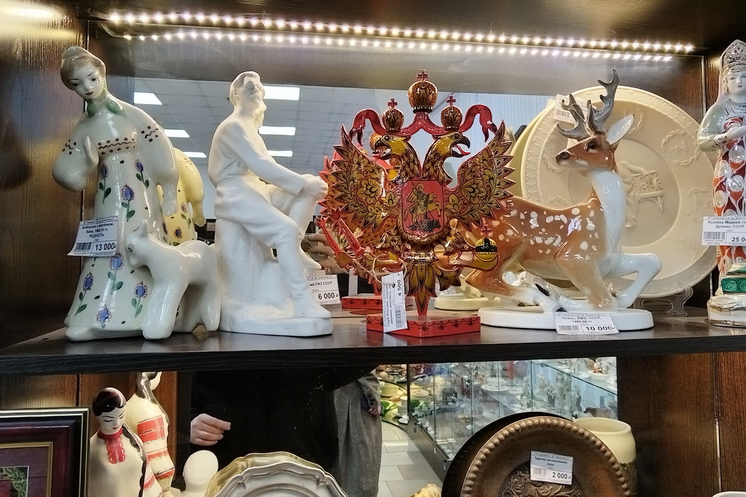 Сейчас, перед закрытием, покупателям предоставляют нешуточные скидки. Кстати, в отделе старинных вещей можно прикупить даже настоящую боксёрскую грушу и японский меч-катану.