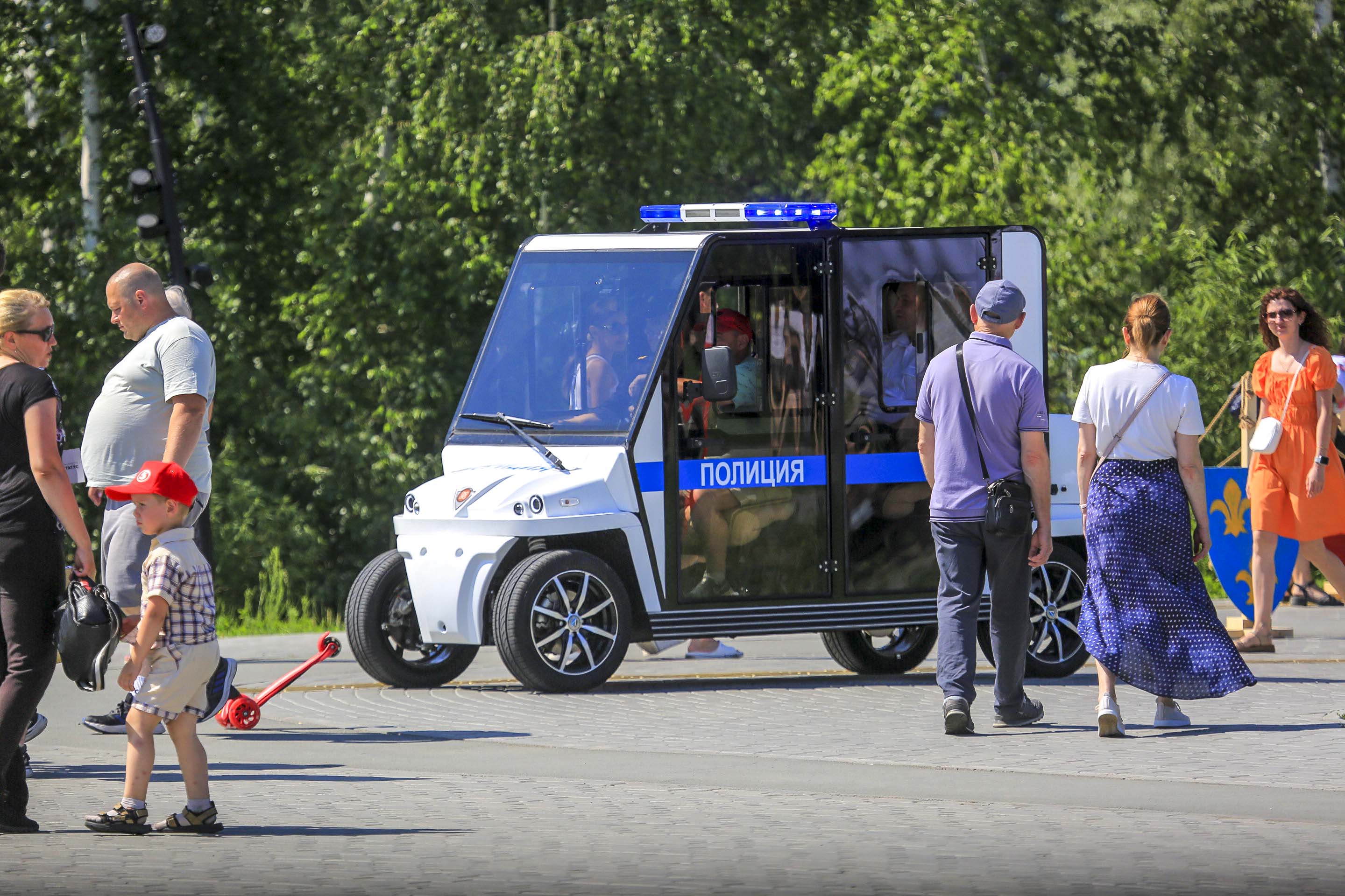 Полицейские опробовали мини-электрокары в парке «Арена» в День города