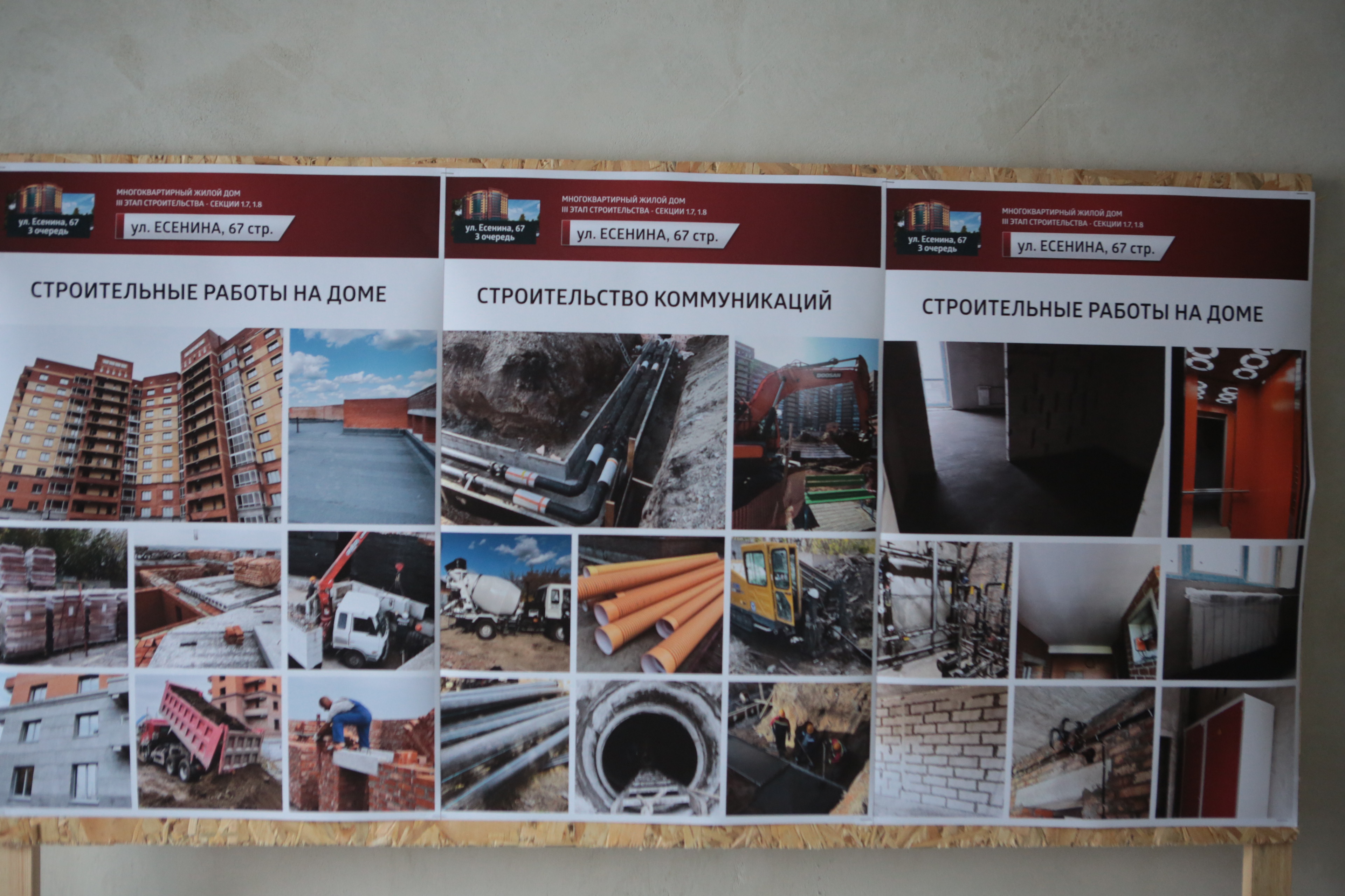 «Мы планируем ещё 14 объектов до конца года, в том числе и Есенина, 67, исключить из реестра проблемных. Либо с разрешением на ввод в эксплуатацию, либо с возмещением затрат, которые граждане понесли в части строительства. На сегодня 27 домов в Новосибирске остаются в статусе „долгострой“, пять домов введены в эксплуатацию в этом году», — отметил заместитель мэра — начальник департамента строительства и архитектуры мэрии Новосибирска Алексей Кондратьев.