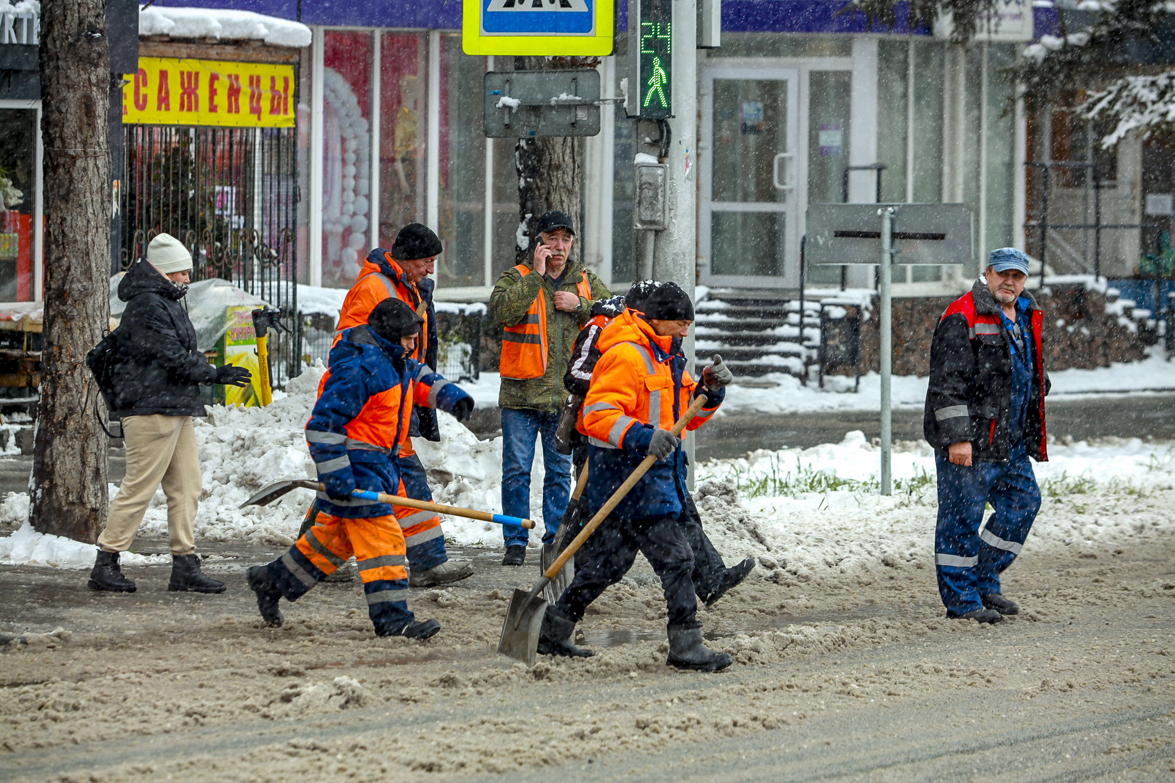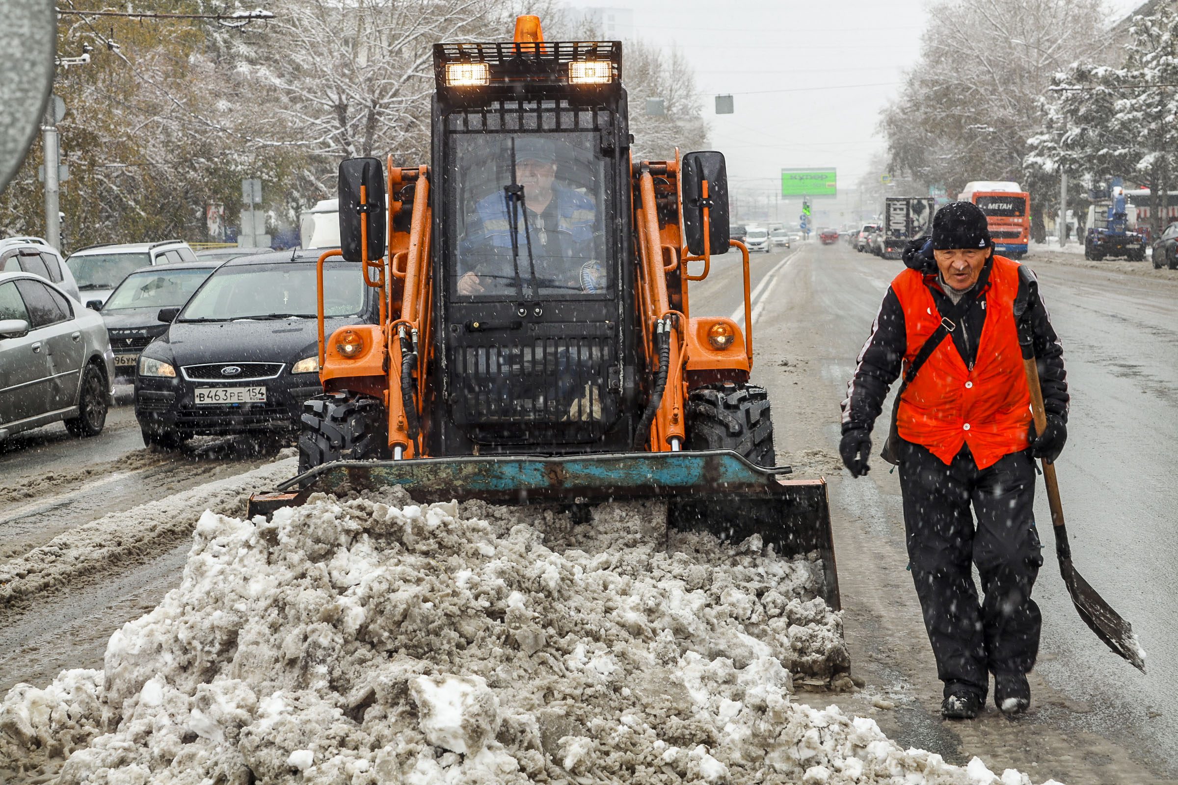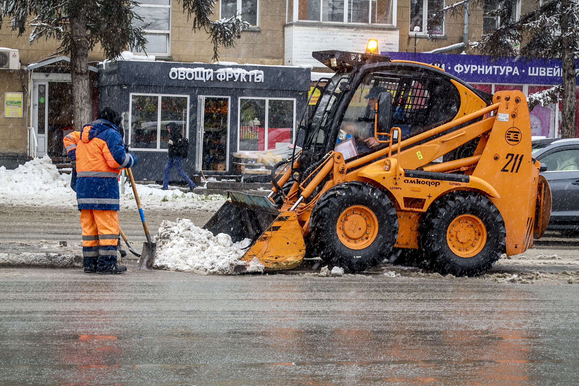 В Новосибирске продолжают ликвидировать последствия сильного снегопада. Пока стоят плюсовые температуры, сугробы активно сгребают с проезжей части и тротуаров, чтобы предотвратить образование ледяной корки.