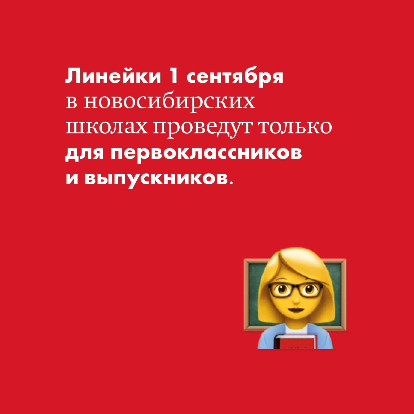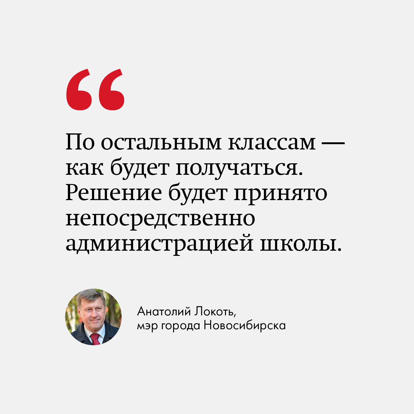 «По остальным классам — как будет получаться. У каждой школы своя ситуация, наполняемость разная, и школы у нас разные. Поэтому в зависимости от ситуации решение будет принято непосредственно администрацией школы. Но подчёркиваю ещё раз: для 1-х и 11-х классов линейки пройдут в том формате, к которому мы все с вами привыкли», — отмечает мэр Новосибирска Анатолий Локоть.