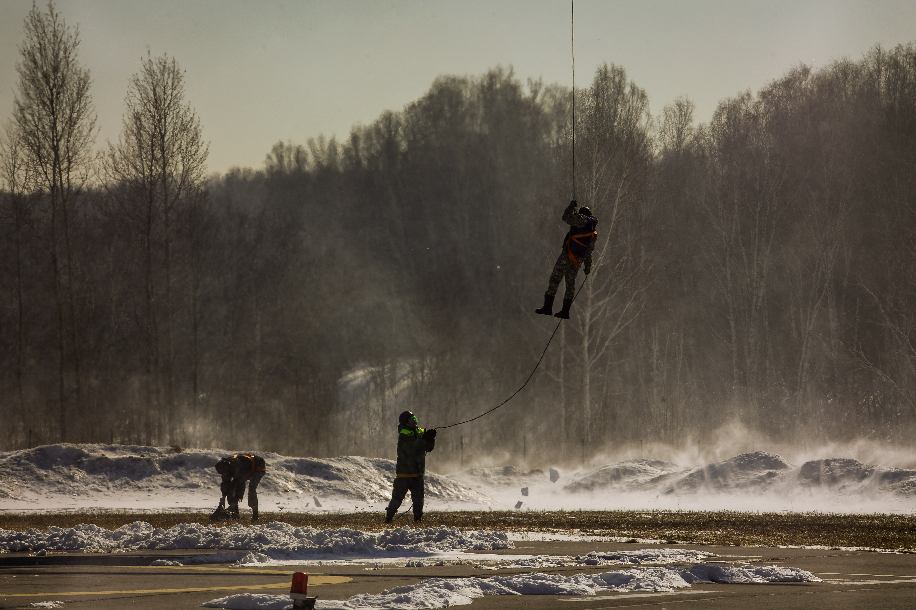 «От тренировочных вышек вертолёт отличается сильно. В условиях реального спуска в группе должно быть полное взаимопонимание, поэтому так важно сегодня всё отработать и ещё раз проверить знания», — рассказал старший инструктор Артём Воробьев.