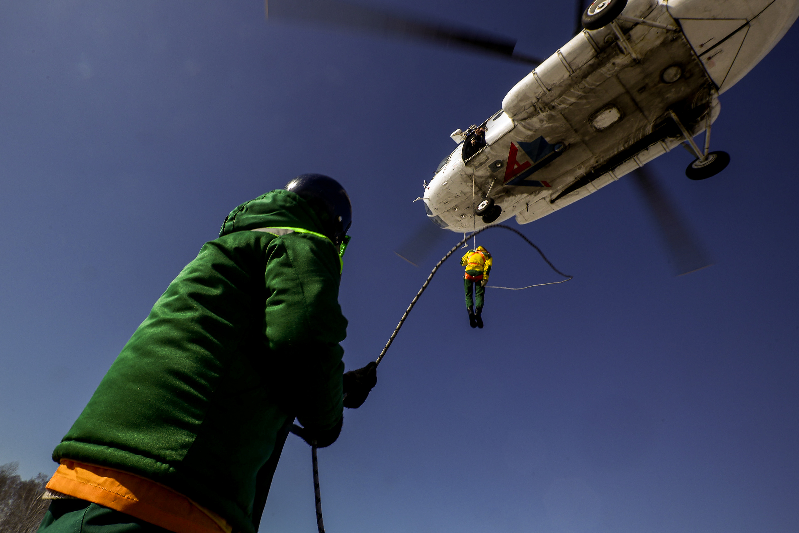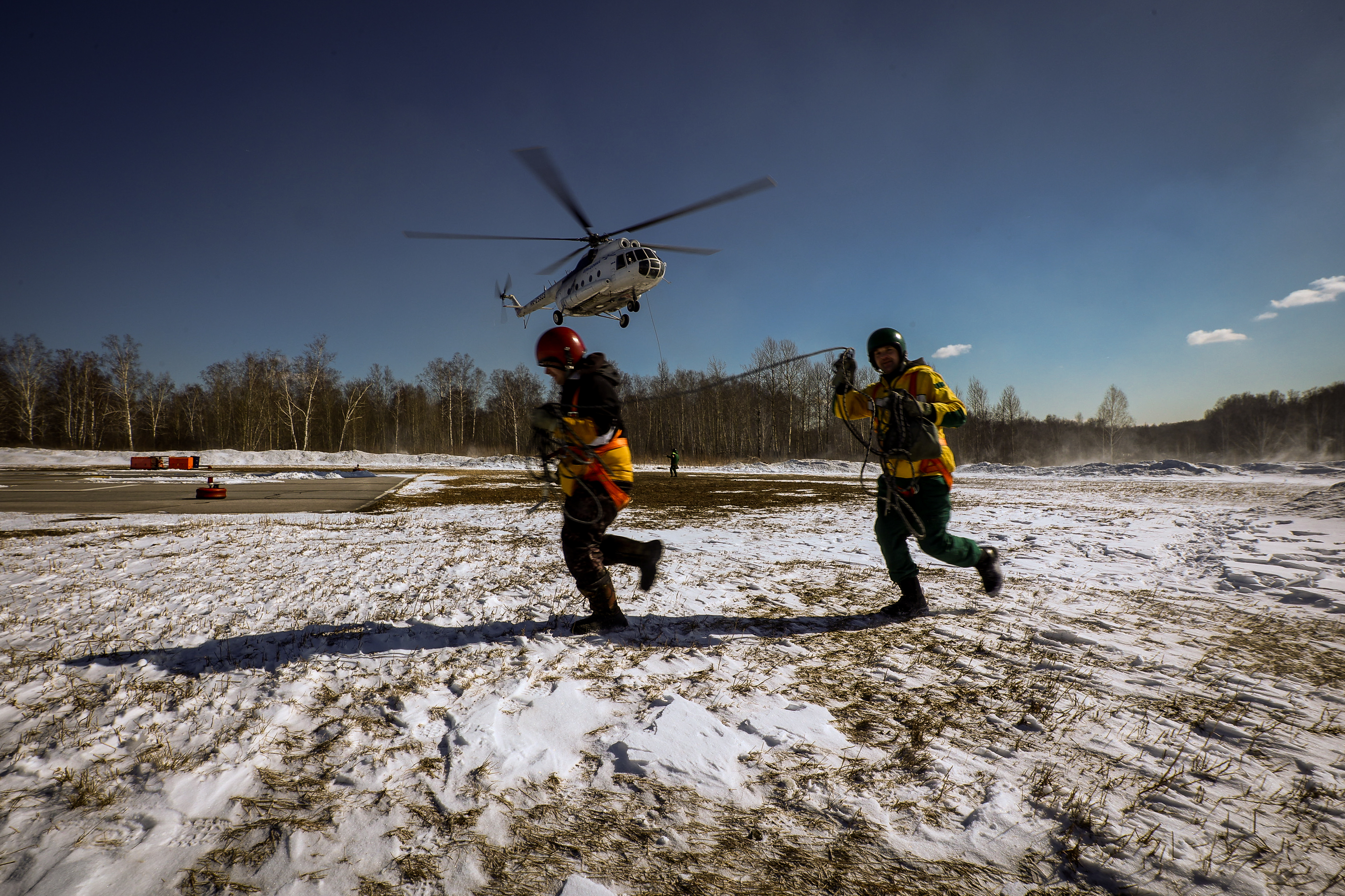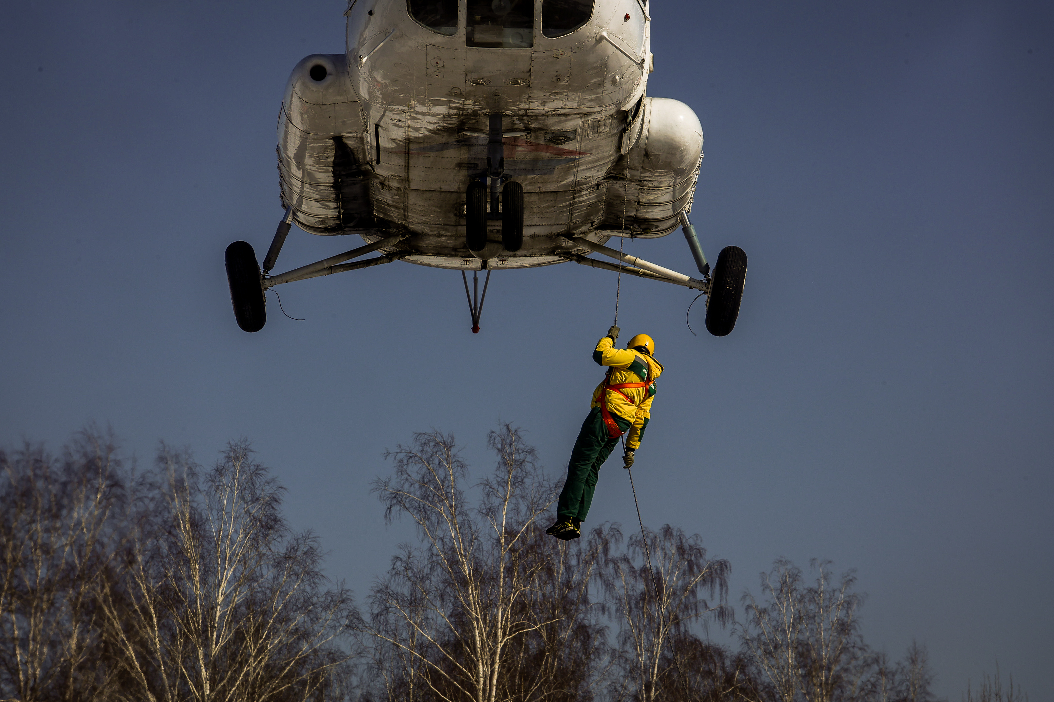 Пожарный десант отработал спуск с вертолёта Ми-8 под Новосибирском: фото