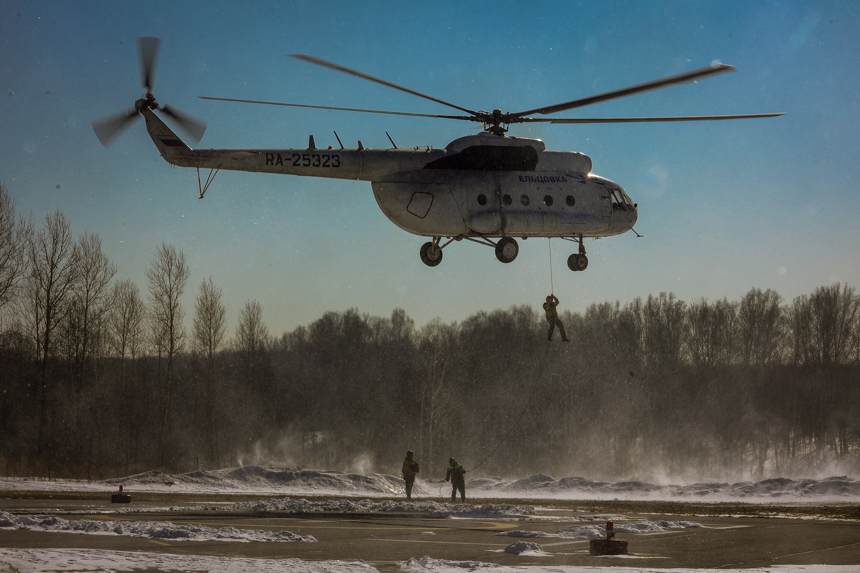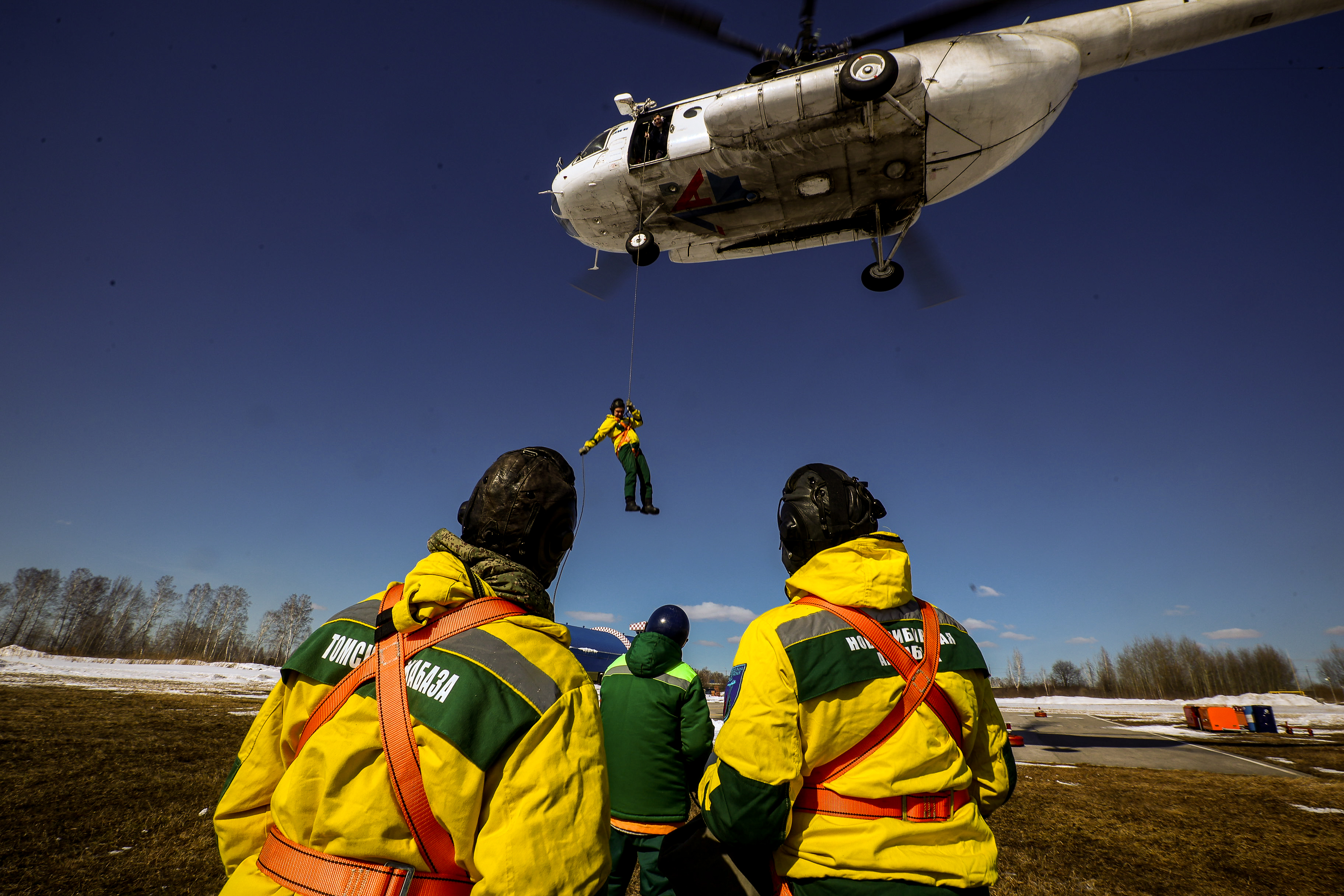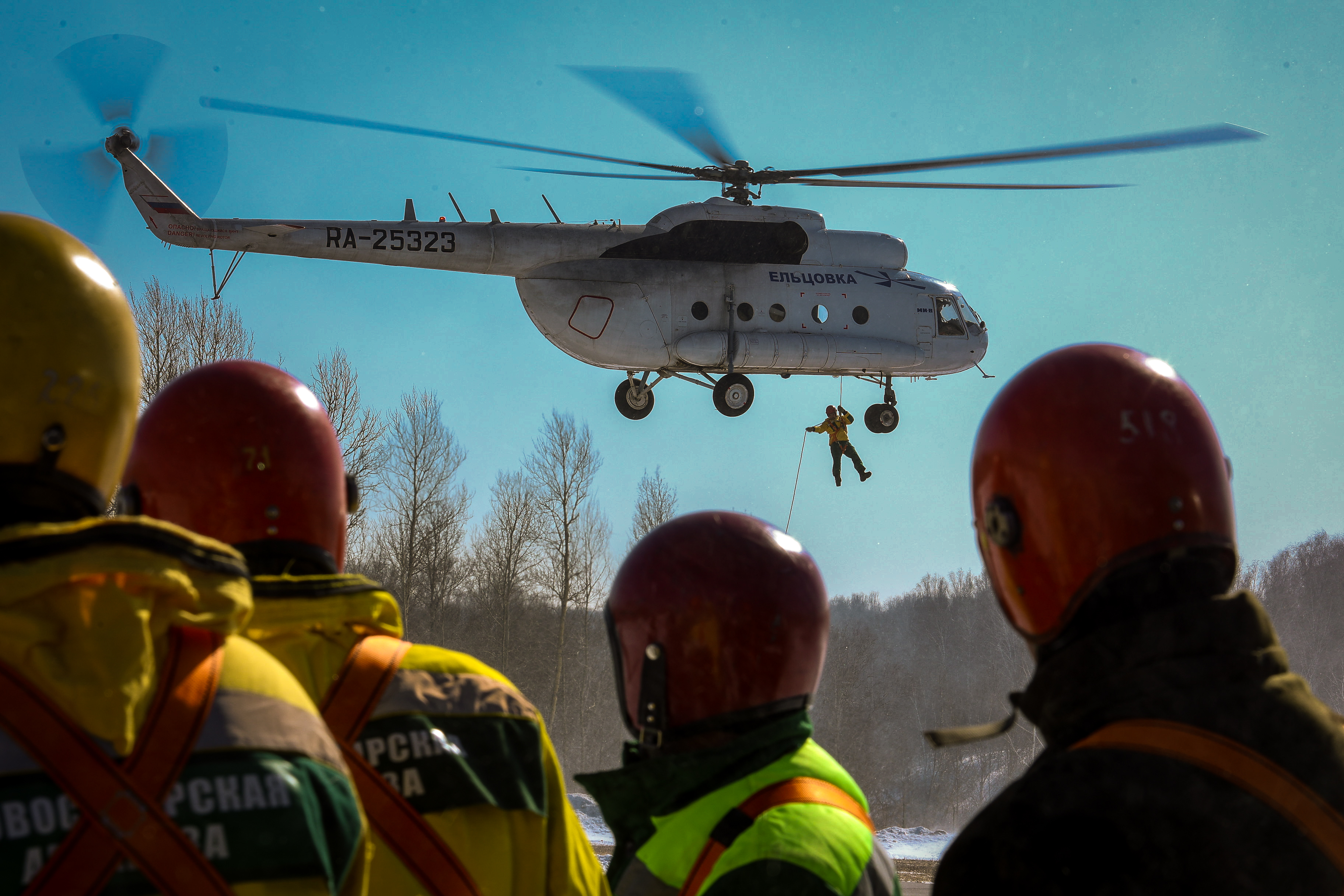 Пожарный десант отработал спуск с вертолёта Ми-8 под Новосибирском: фото