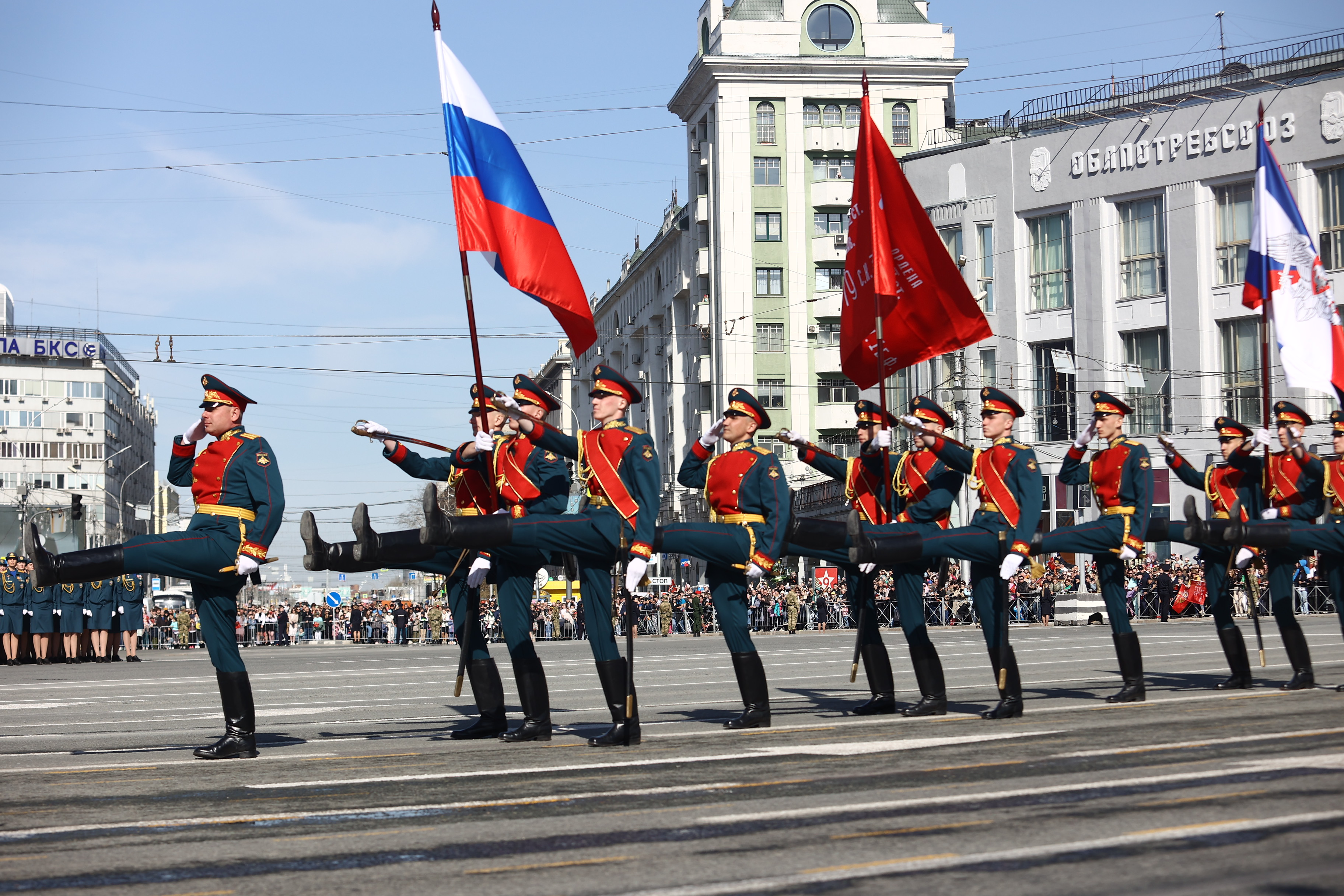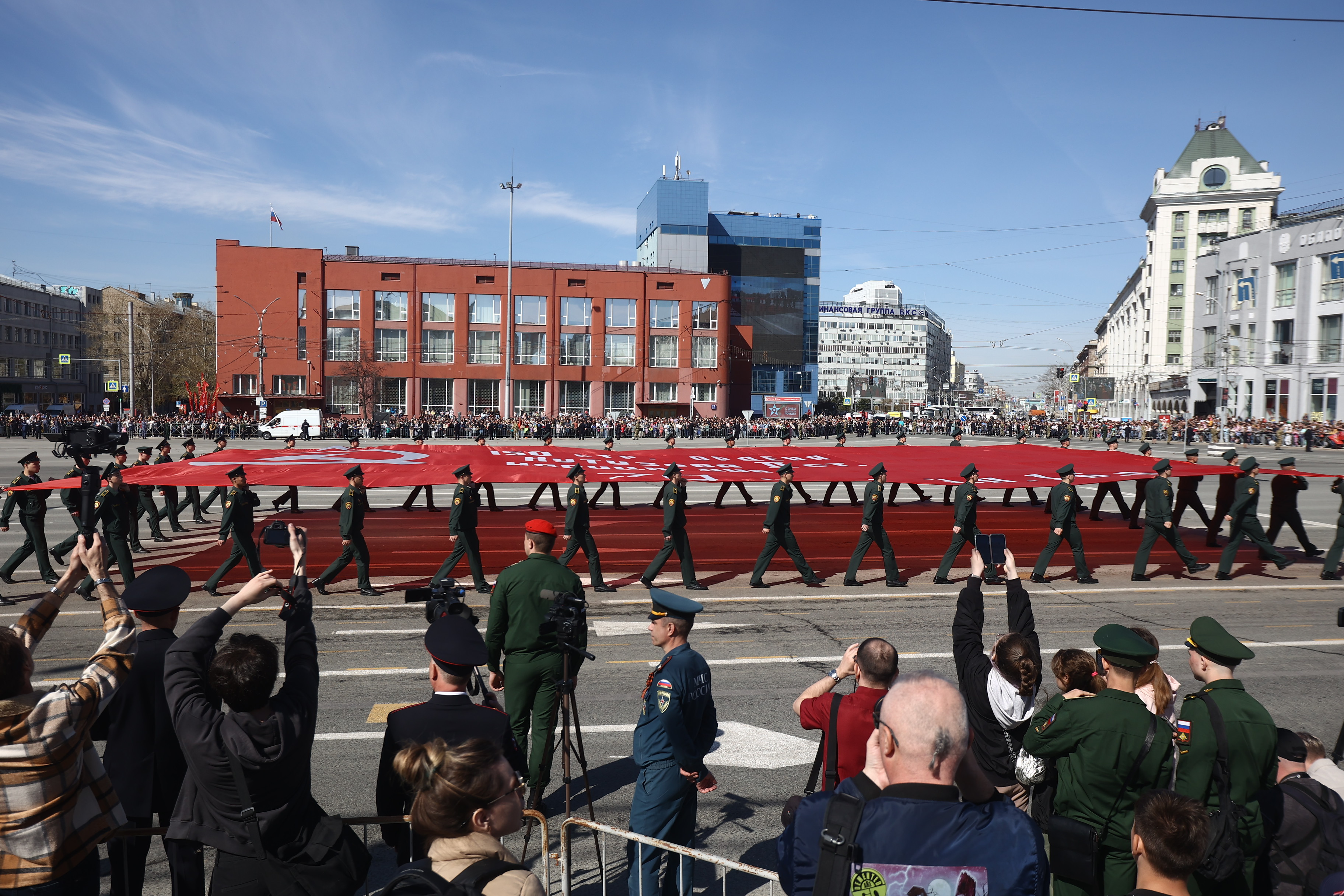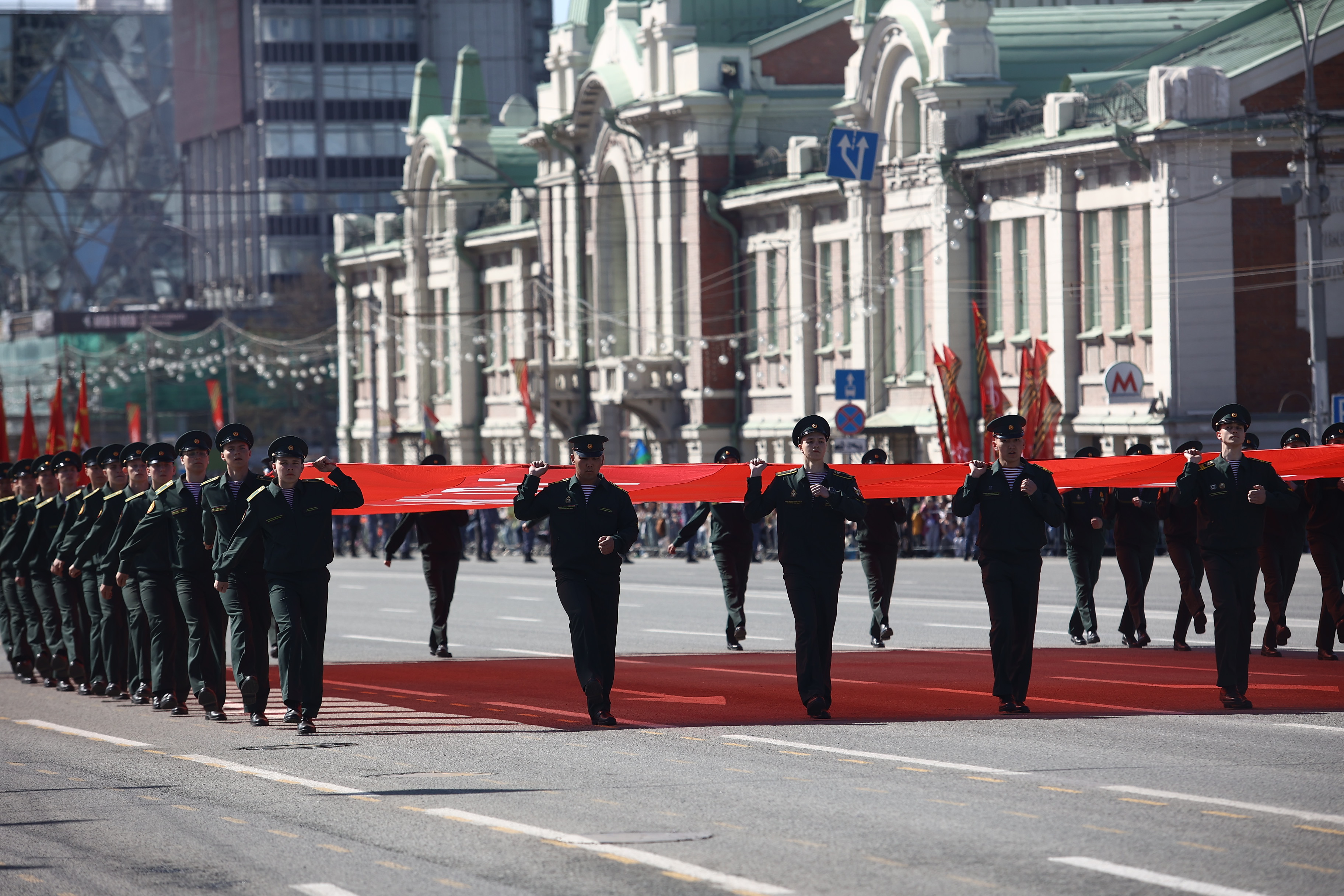 Главное зрелище этой весны: сегодня, 9 мая, в центре Новосибирска состоялся парад в честь 79-летия Великой Победы. По Красному проспекту стройными рядами промаршировали больше 2000 людей в военной форме: представители вооружённых сил, службы исполнения наказаний, МЧС и других структур, курсанты, кадеты, юнармейцы. За пешими колоннами по площади Ленина проследовала тяжёлая техника.