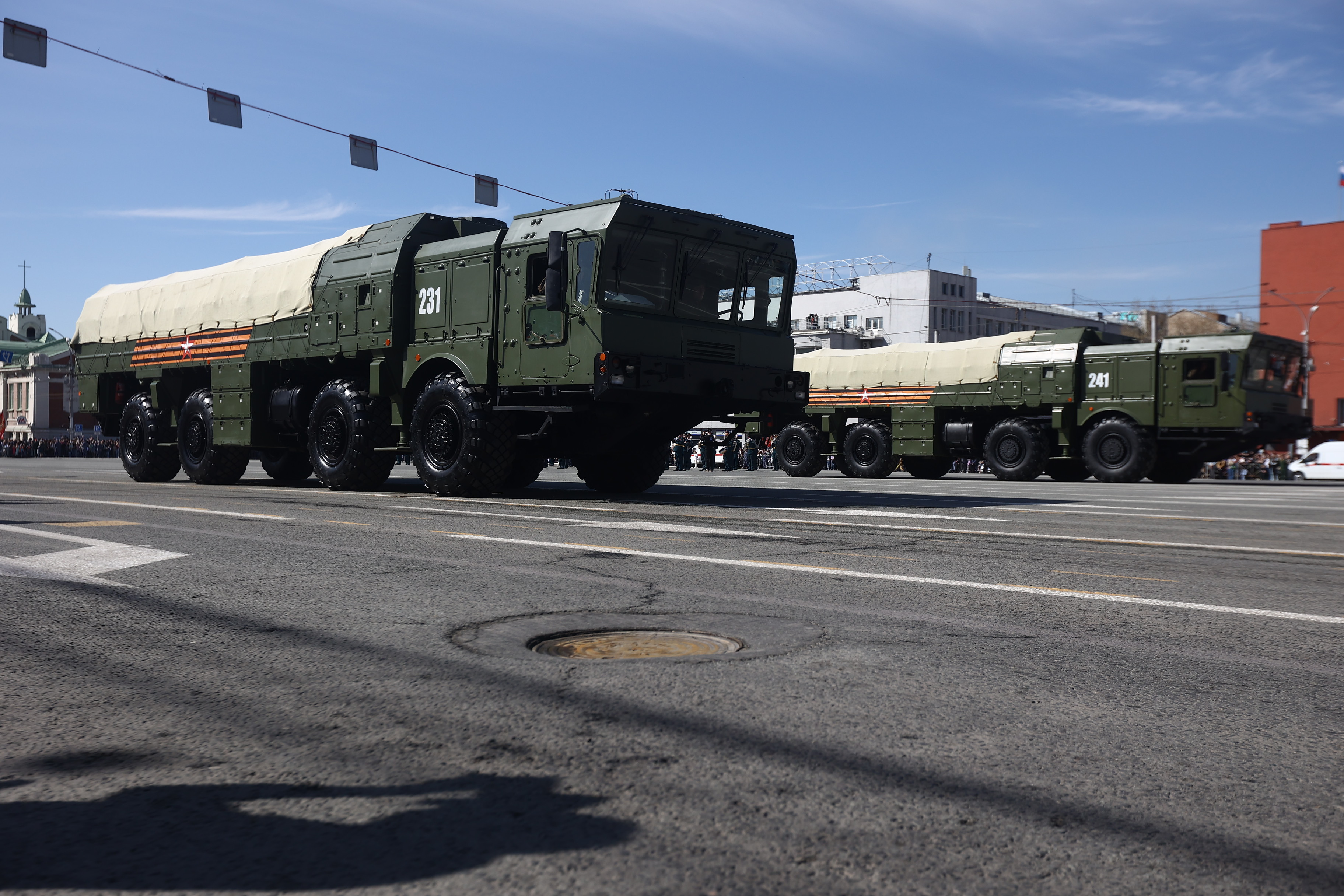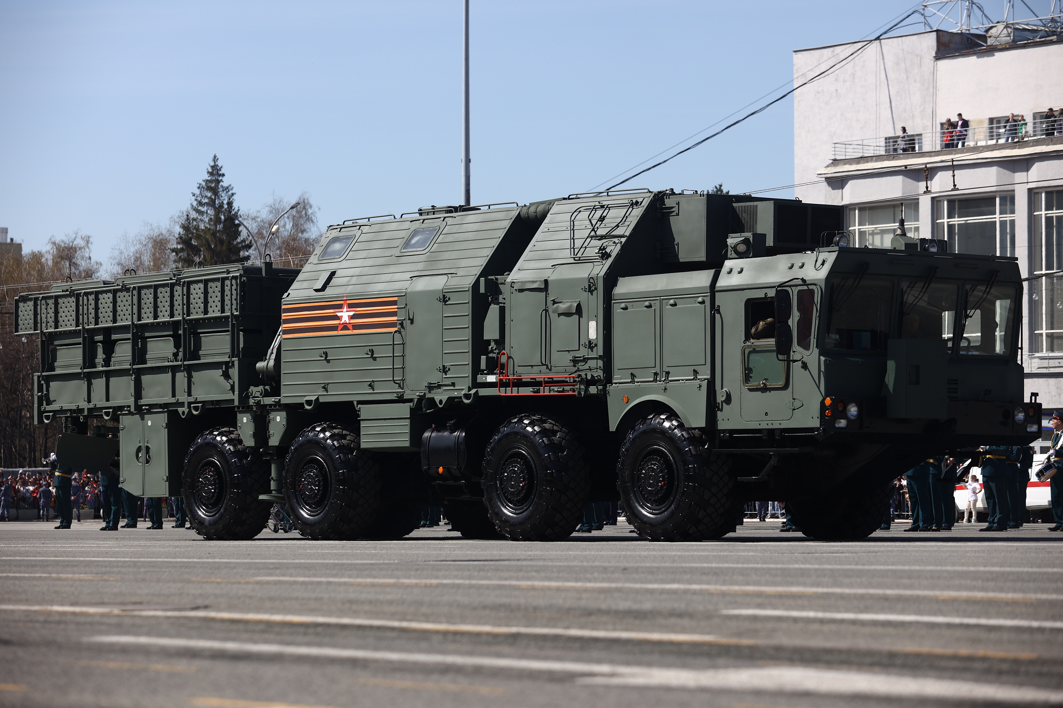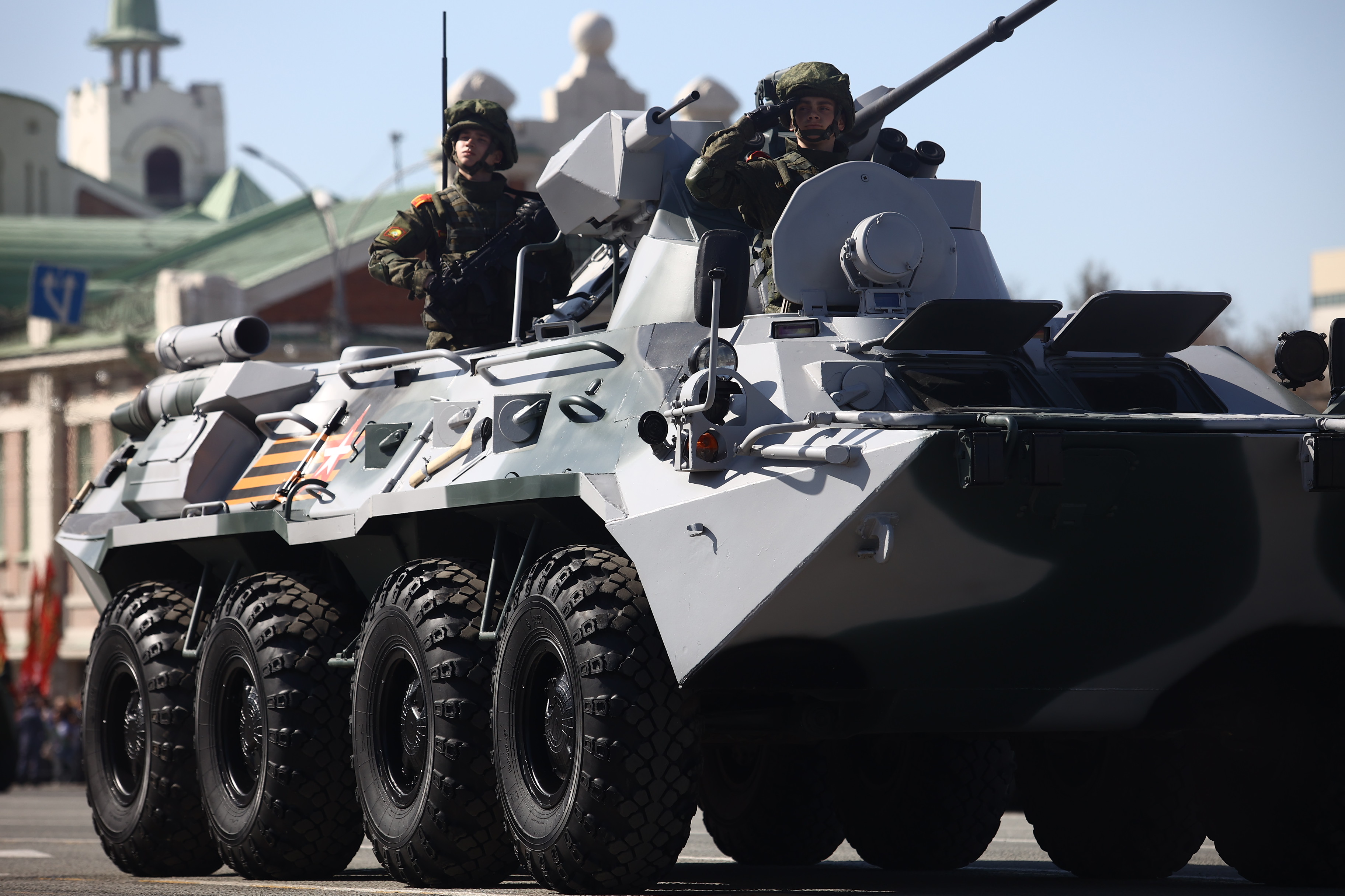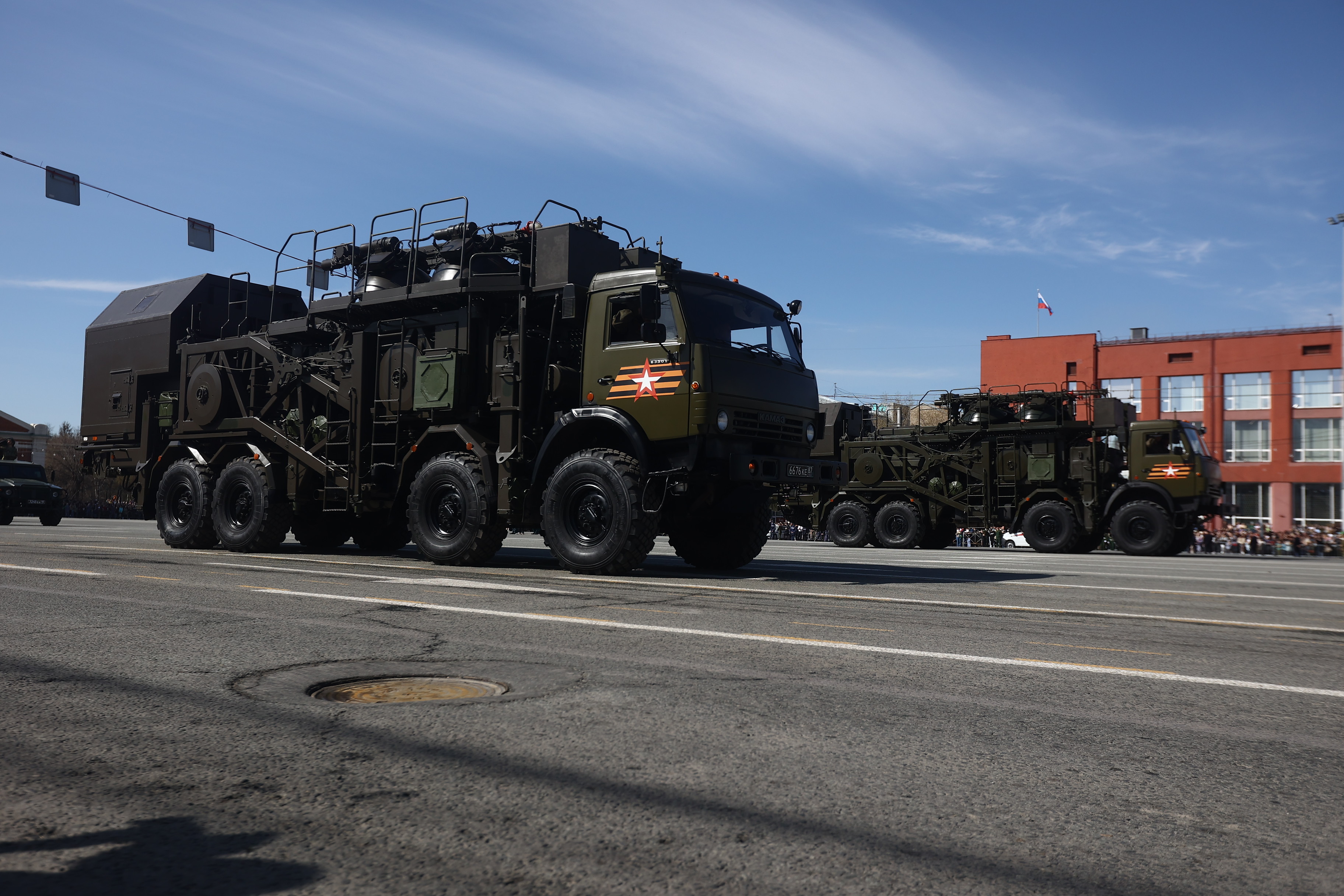 Это в том числе мобильная пусковая установка ракетного комплекса «Ярс», боевая продиверсионная машина «Тайфун», комплексы С-400 «Триумф» и «Искандер», бронеавтомобиль «Тигр», бронетранспортёры БТР-82АМ, радиорелейная станция Р-416ГМ. Возглавил колонну легендарный танк Т-34. А в небе над площадью Ленина прошёл мини-авиапарад от СибНИА имени С. А. Чаплыгина: новосибирцы увидели самолёт «Легенда-570» и восстановленный к празднику истребитель И-16, участвоваший в Великой Отечественной.