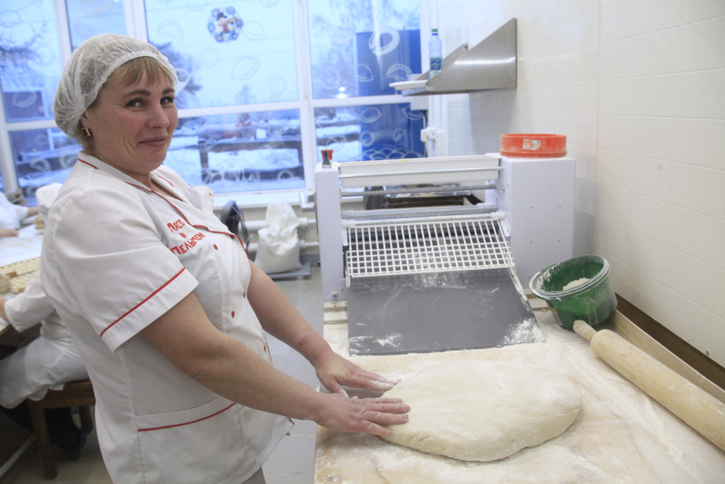 Самой первой приходит руководитель цеха лепки Наталья, которая отвечает за весь технологический процесс. В шесть утра она заводит тесто на предстоящую смену, затем раскатывает его с помощью машины и высекает кружочки специальной формой.