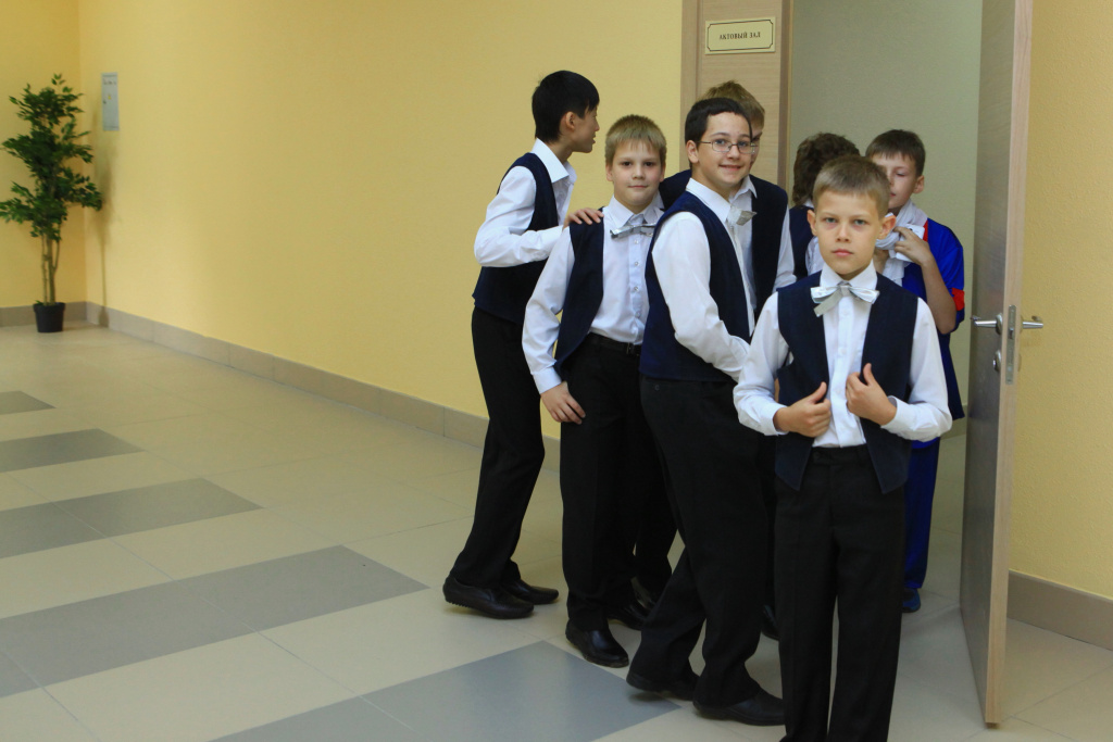 «Правила по внешнему виду учащихся закреплены в локальных актах, которые мы разрабатывали и утверждали совместно с детьми и родителями. Там прописано, что на торжественных мероприятиях для всей школы — единая парадная форма с белой рубашкой и красным галстуком, на котором изображён логотип гимназии. Мы считаем, что дети с раннего возраста должны понимать, что на праздник нужно приходить нарядными.