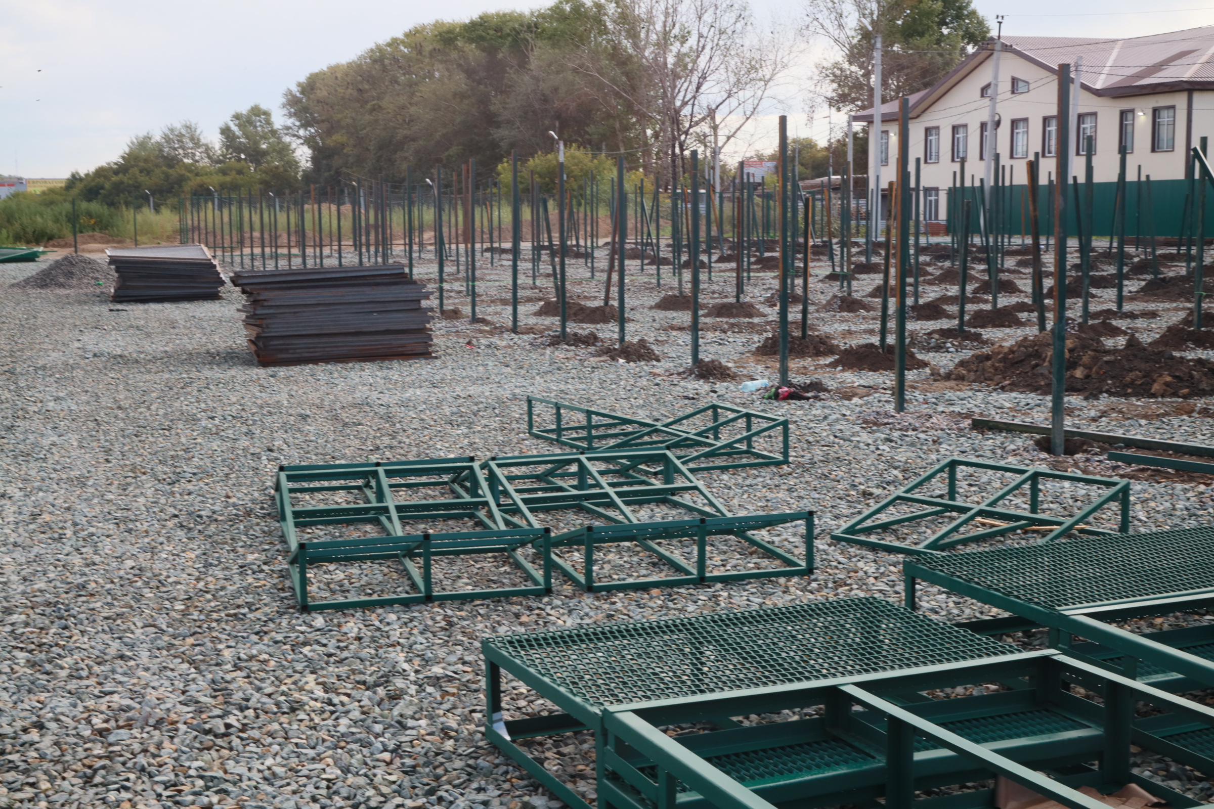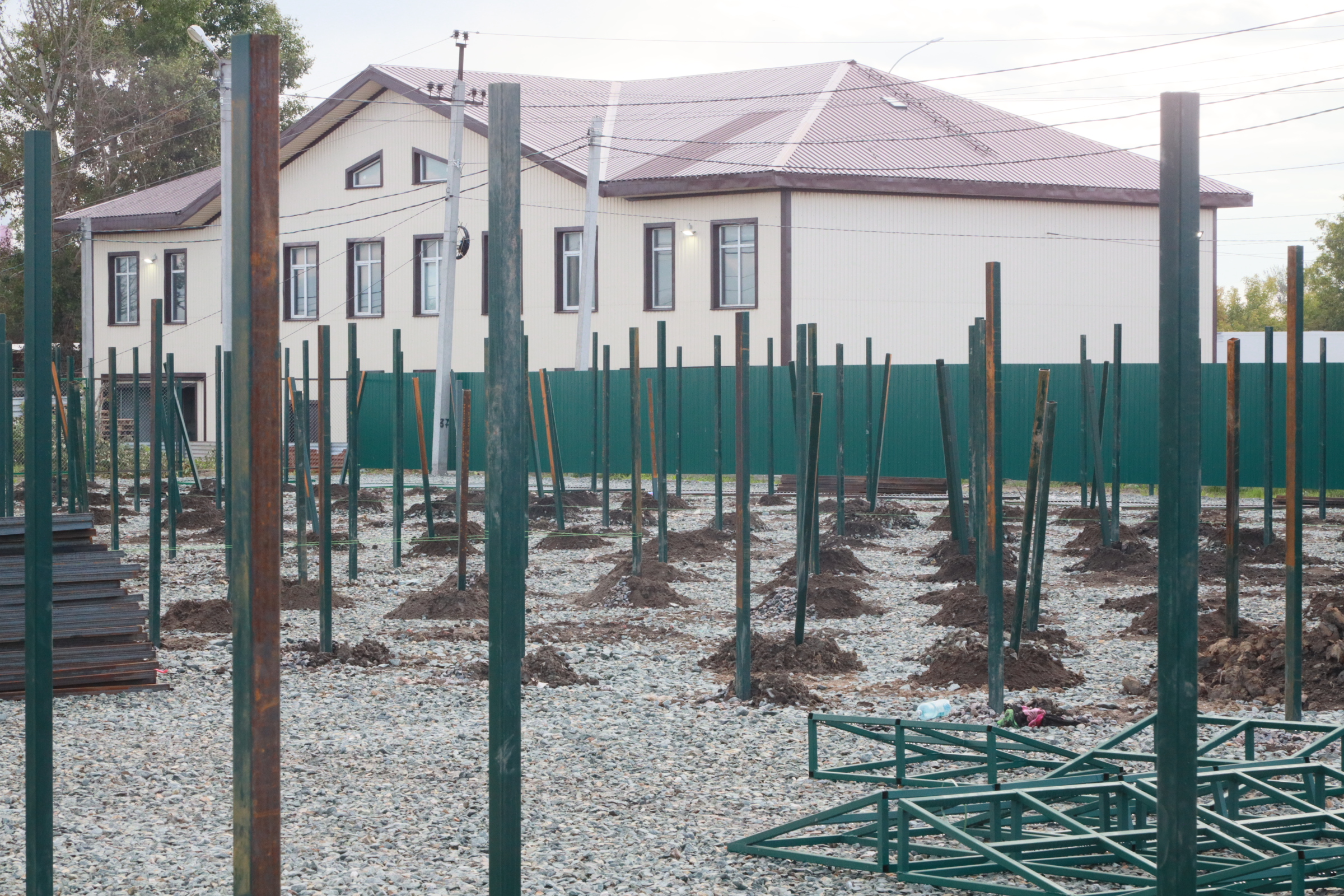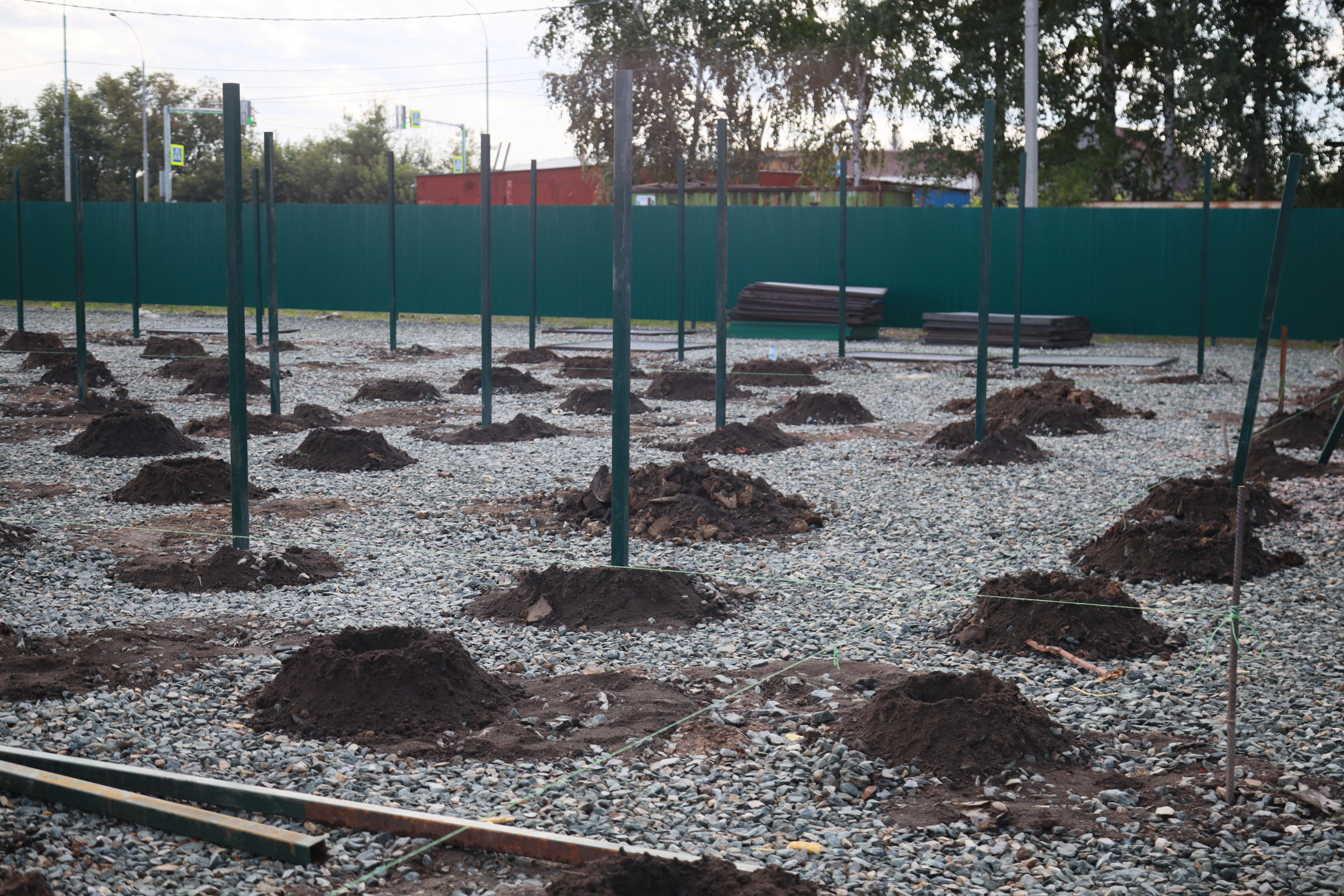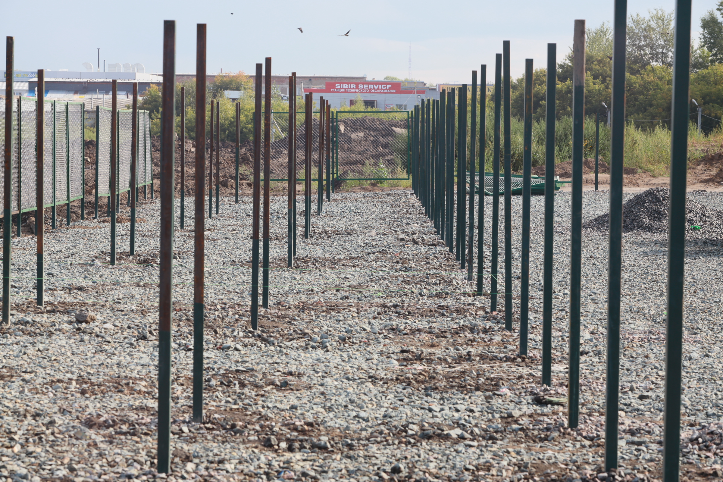 Территорию уже засыпали щебнем, позже в вольерах уложат плитку и установят по четыре будки. Собак будут держать на цепи.