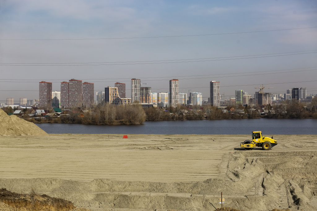 Утрамбовывают сотни тонн песка под площадку для терминалов оплаты. Напомним, что четвёртый мост через Обь будет платным для автомобилистов. Всего планируют установить 20 терминалов.