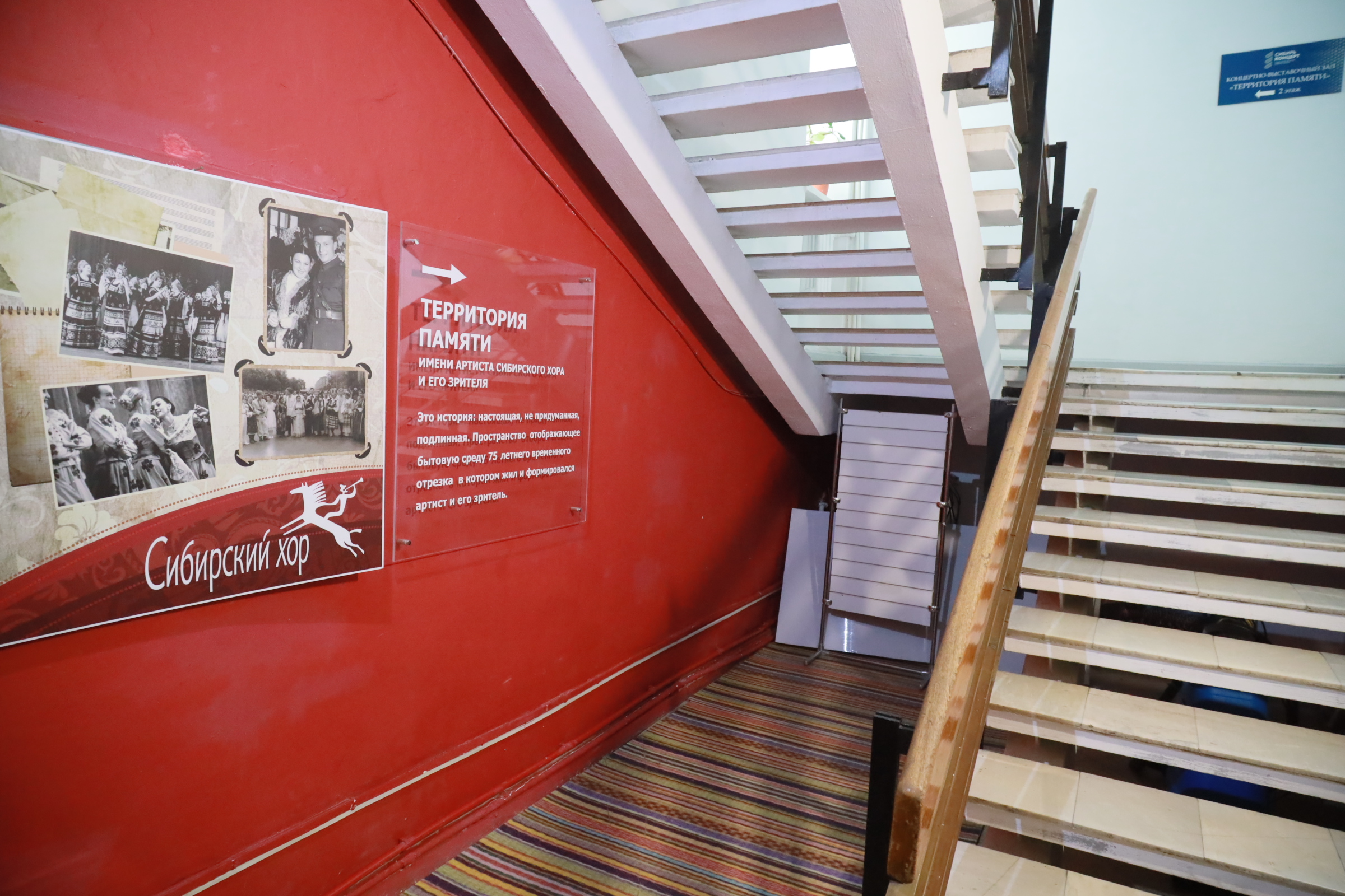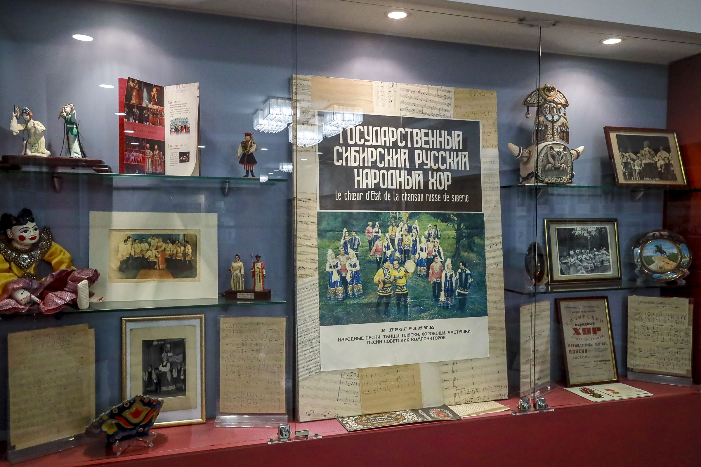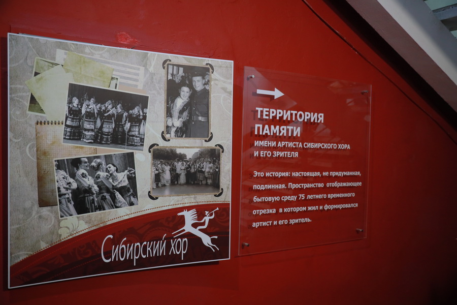 Эту концепцию представляют и экскурсии с погружением в работу хора, которые проводят на площадке «Сибирь-Концерта». Рассказ начинается с арт-фойе, затем гостей ведут в музейный зал «Территория памяти» — показывают обстановку, в которой формировался артист и его зритель. Здесь, например, можно увидеть скромный гастрольный скарб: одежду, матрасы «вскрутку», чайники, котелки, музыкальные инструменты.