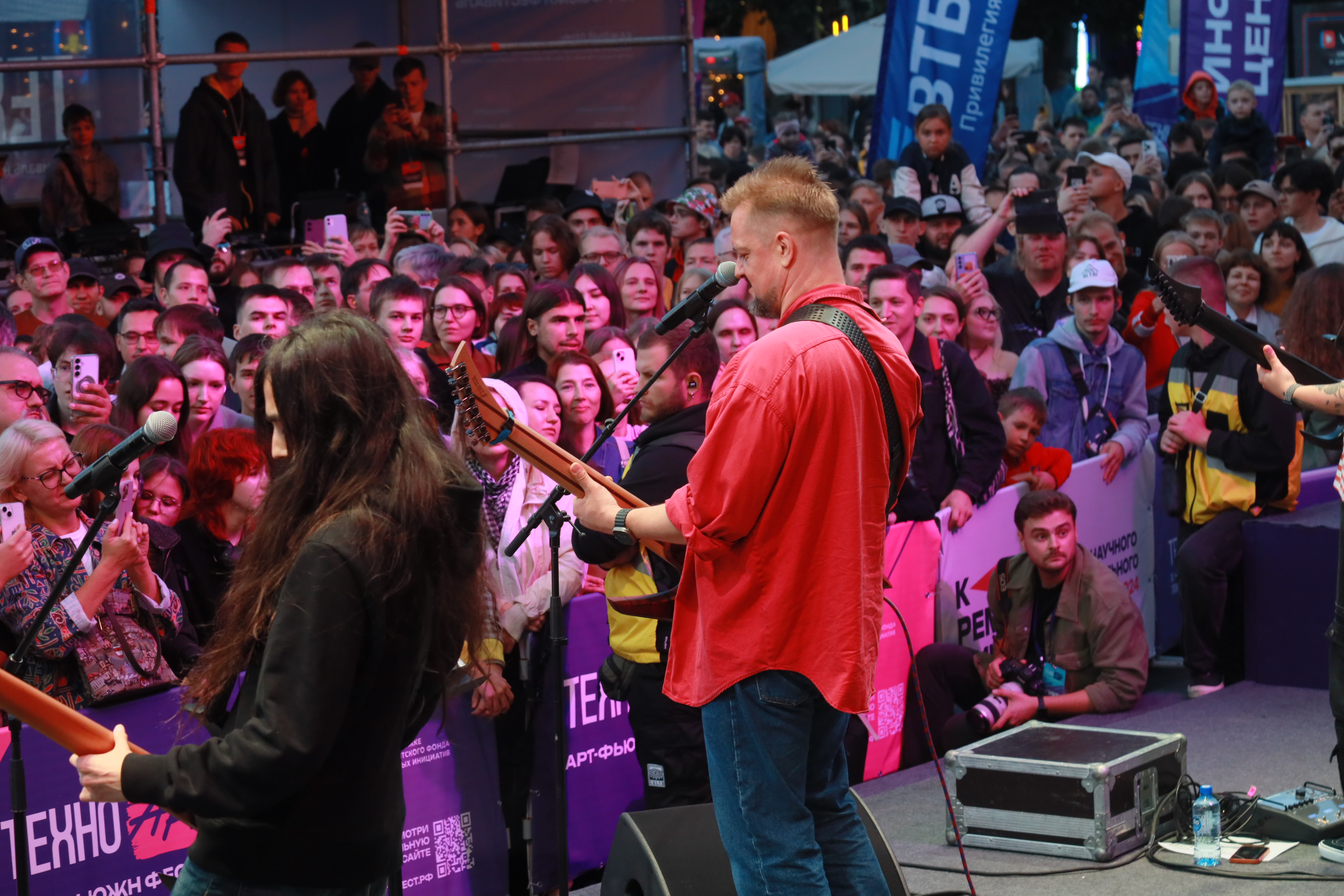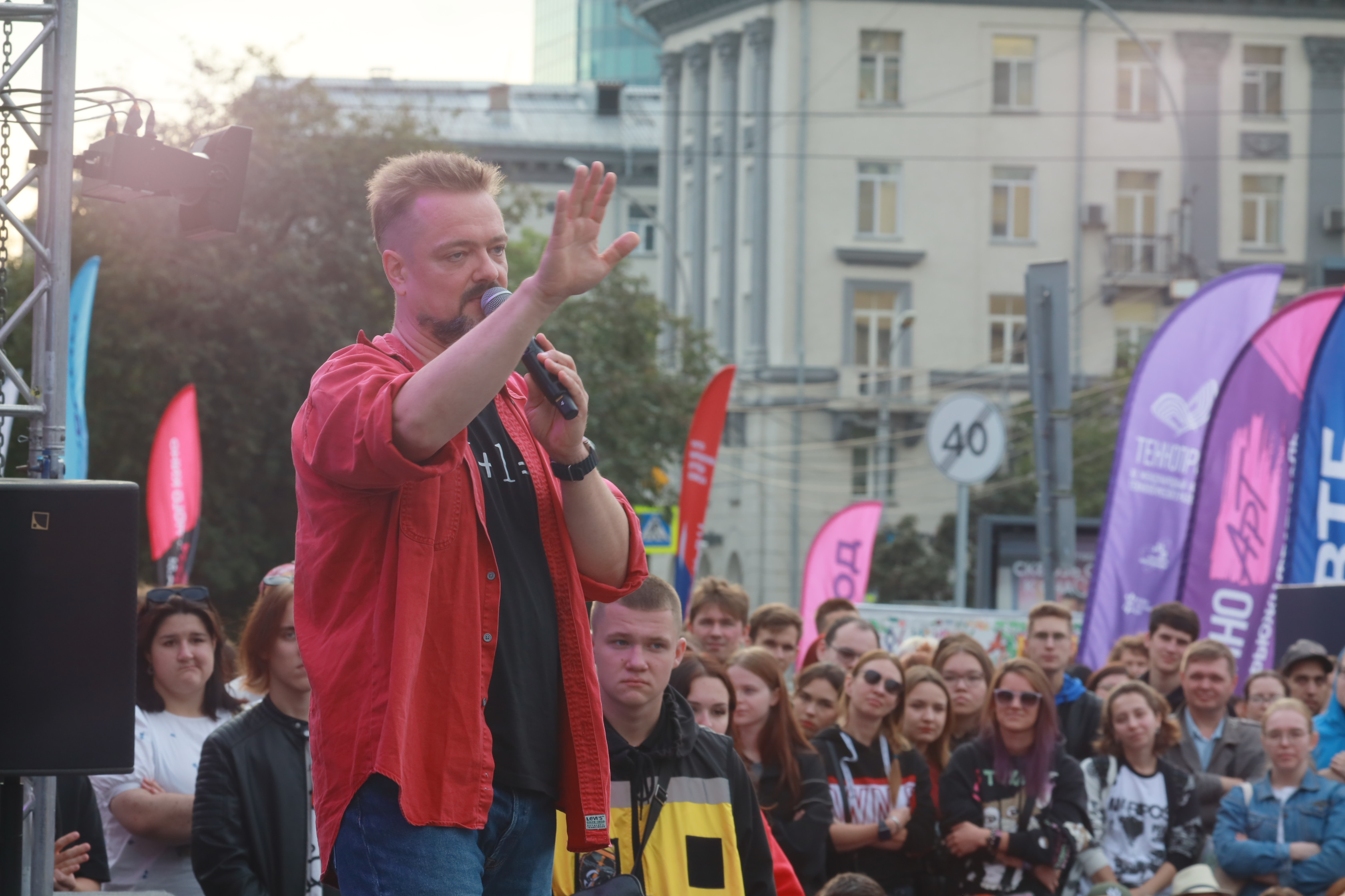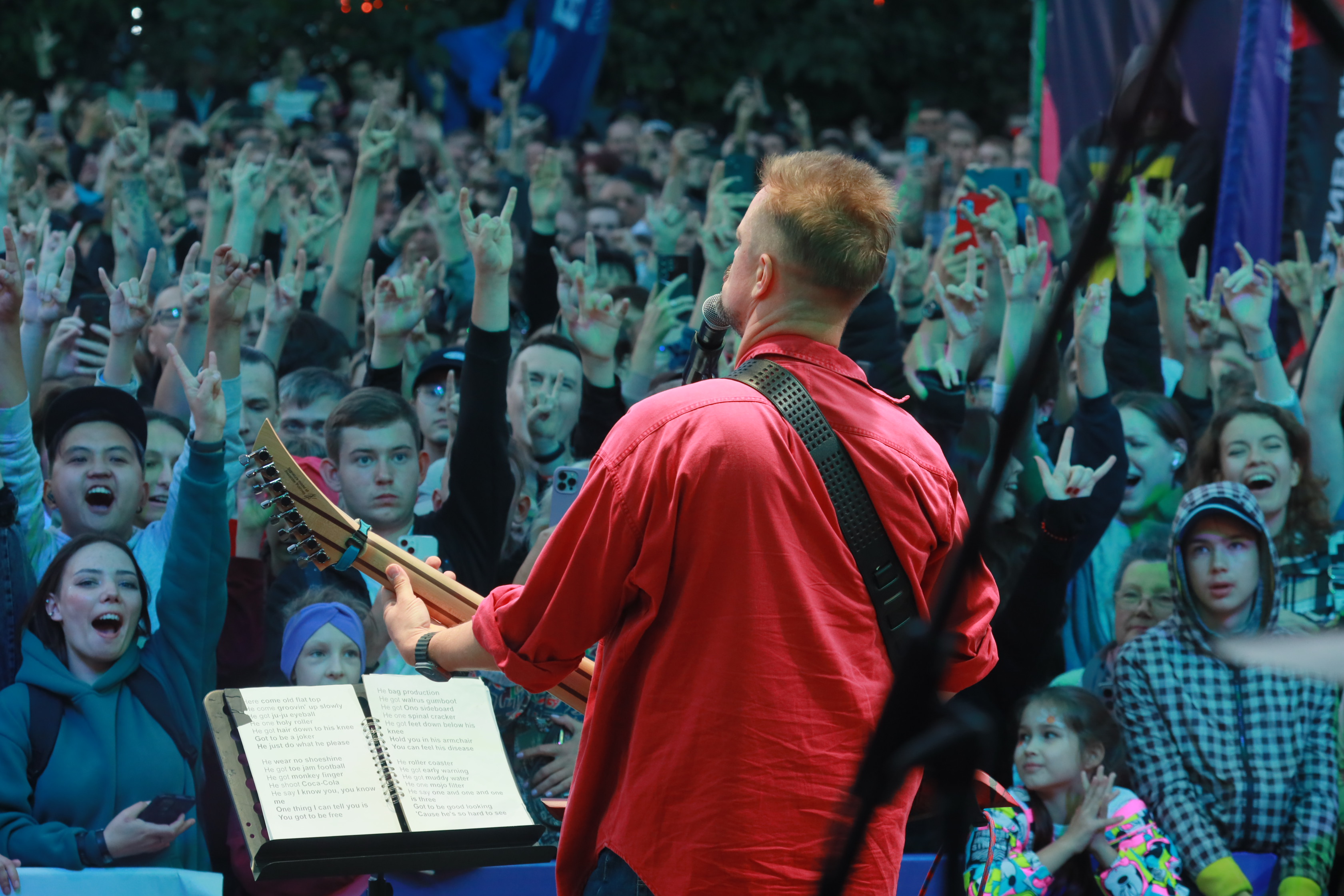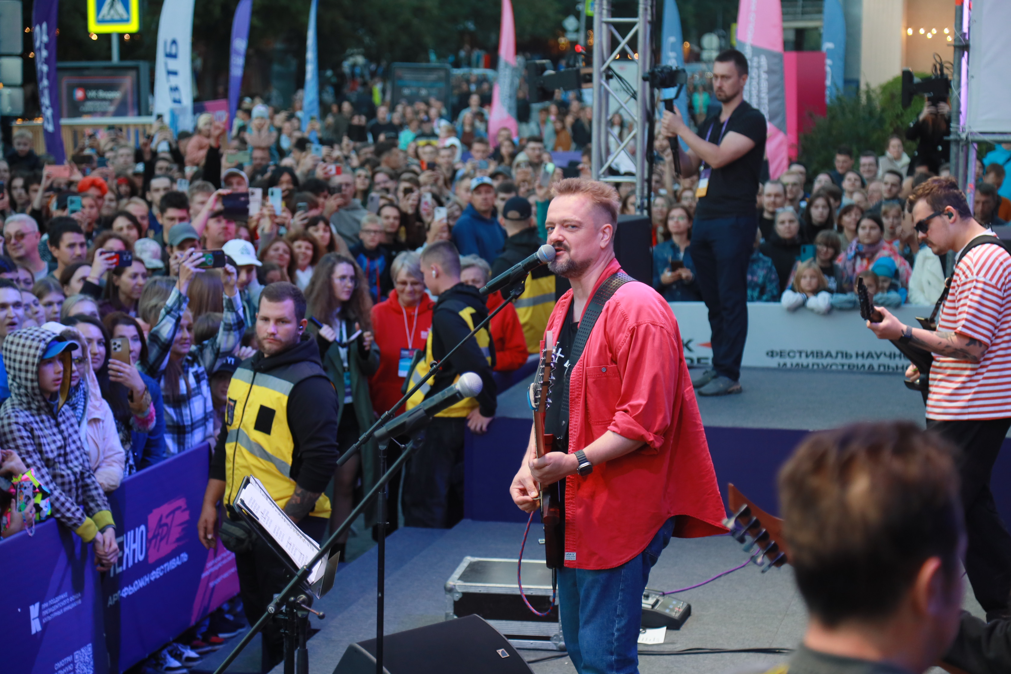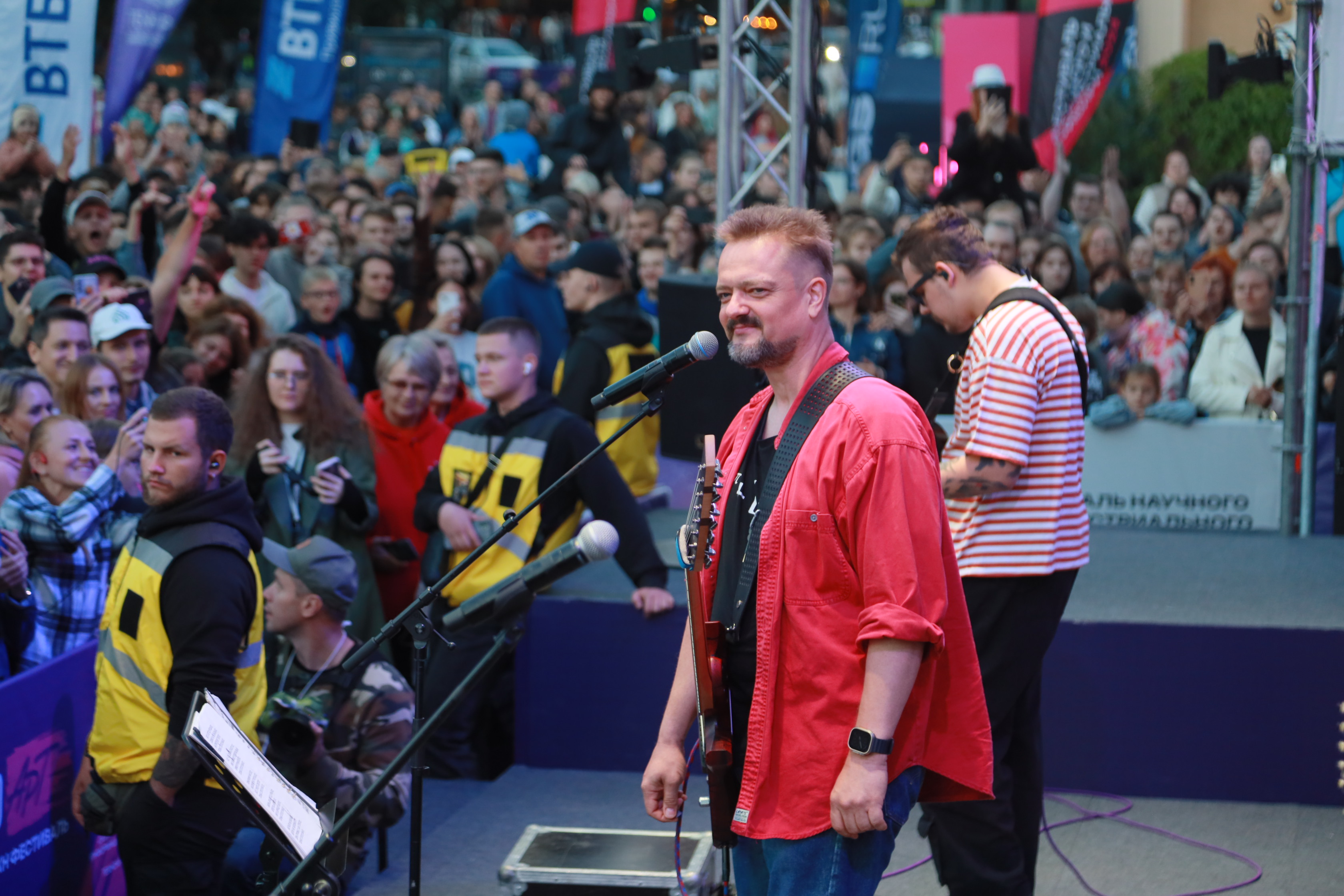Знакомый всем новосибирцам шоумен рассказал публике, как физика помогает писать песни, а потом раскачал толпу на зажигательном концерте под открытым небом. Как это было — смотрите в фоторепортаже «Новосибирских новостей».