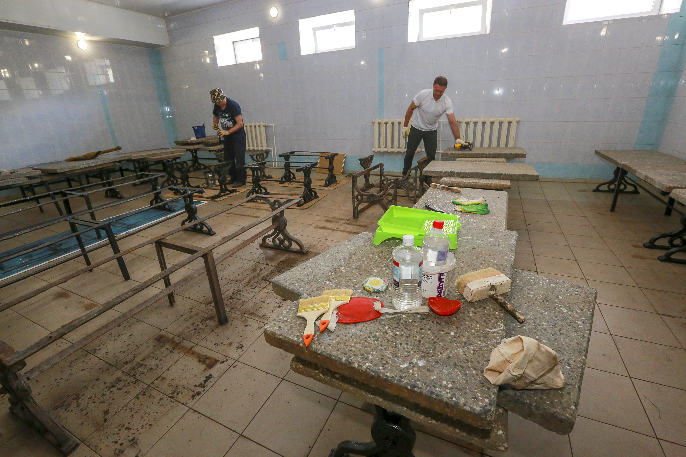 Виктор Таракин пояснил, что ремонт начали с женского отделения. Его откроют первым. По графику в нём будет два дня мужских и два женских. Один из дней — льготный, один — стандартный. Пока учреждение будет функционировать в этом режиме, завершат работы в мужском отделении.