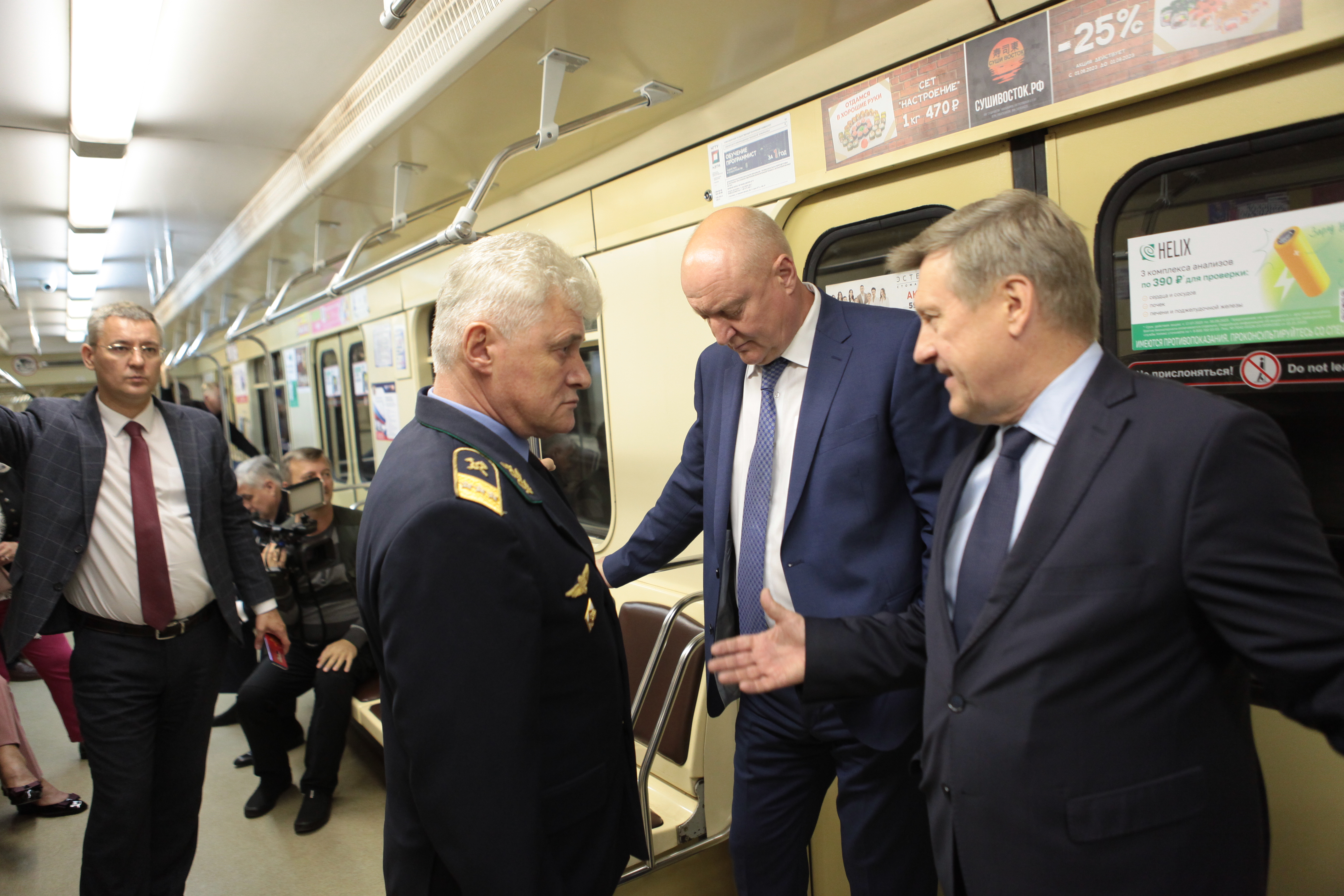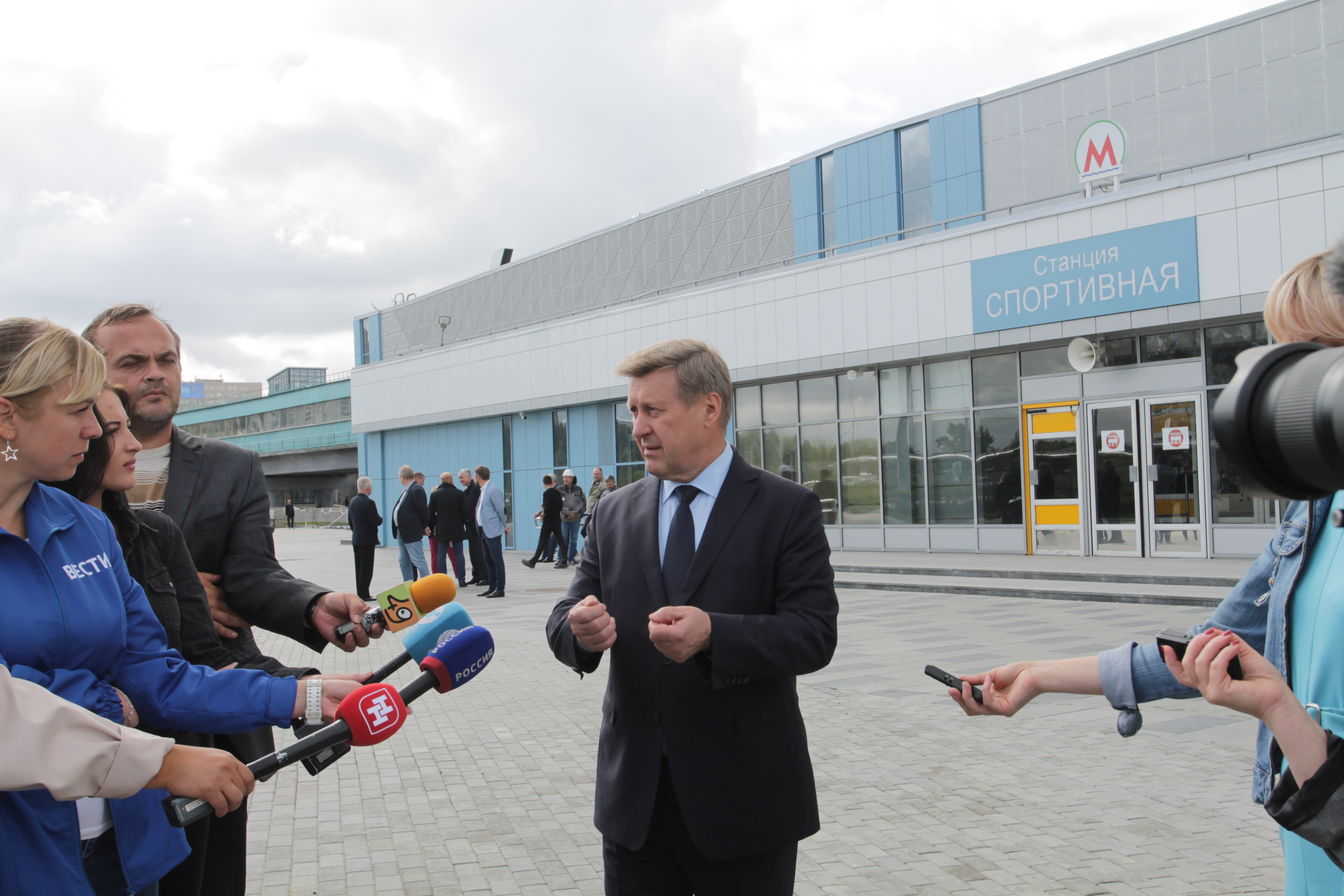 Пятивагонный поезд с мэром Локтем прибыл на станцию метро «Спортивная»