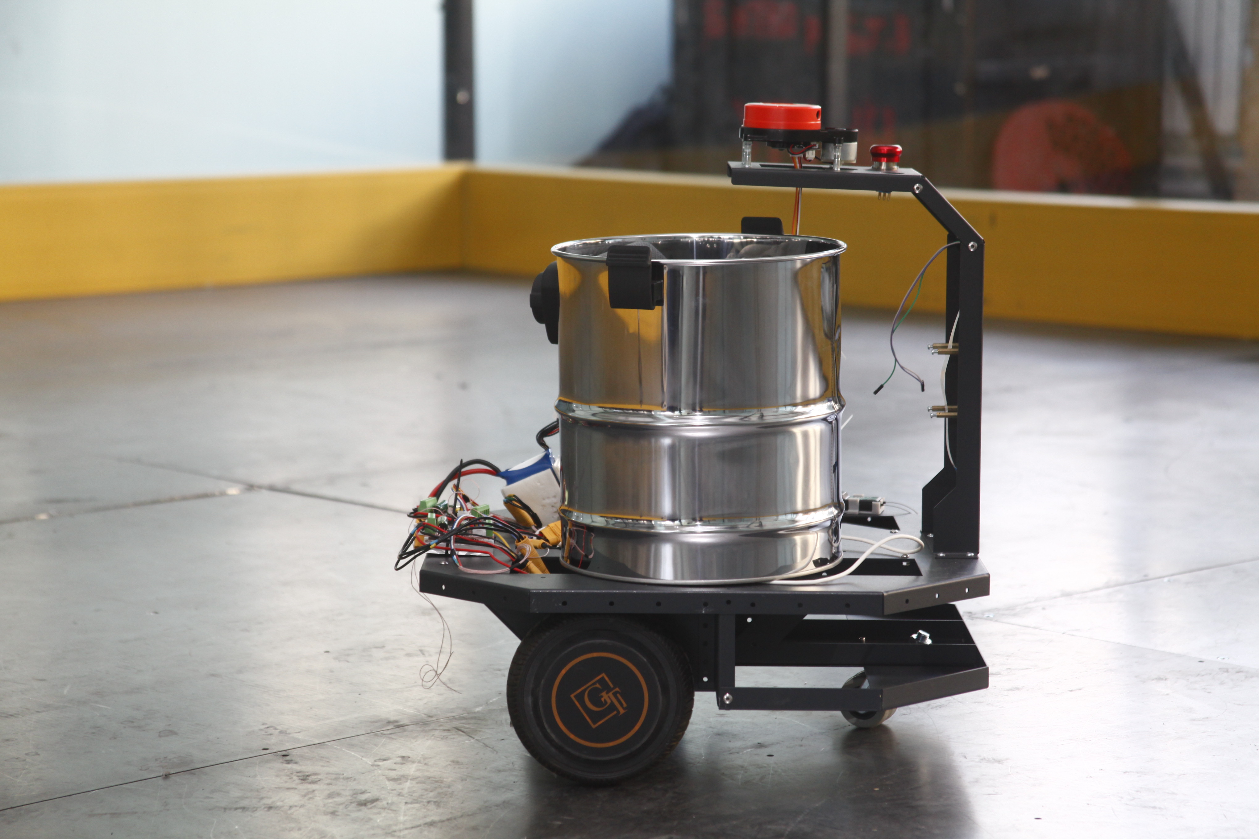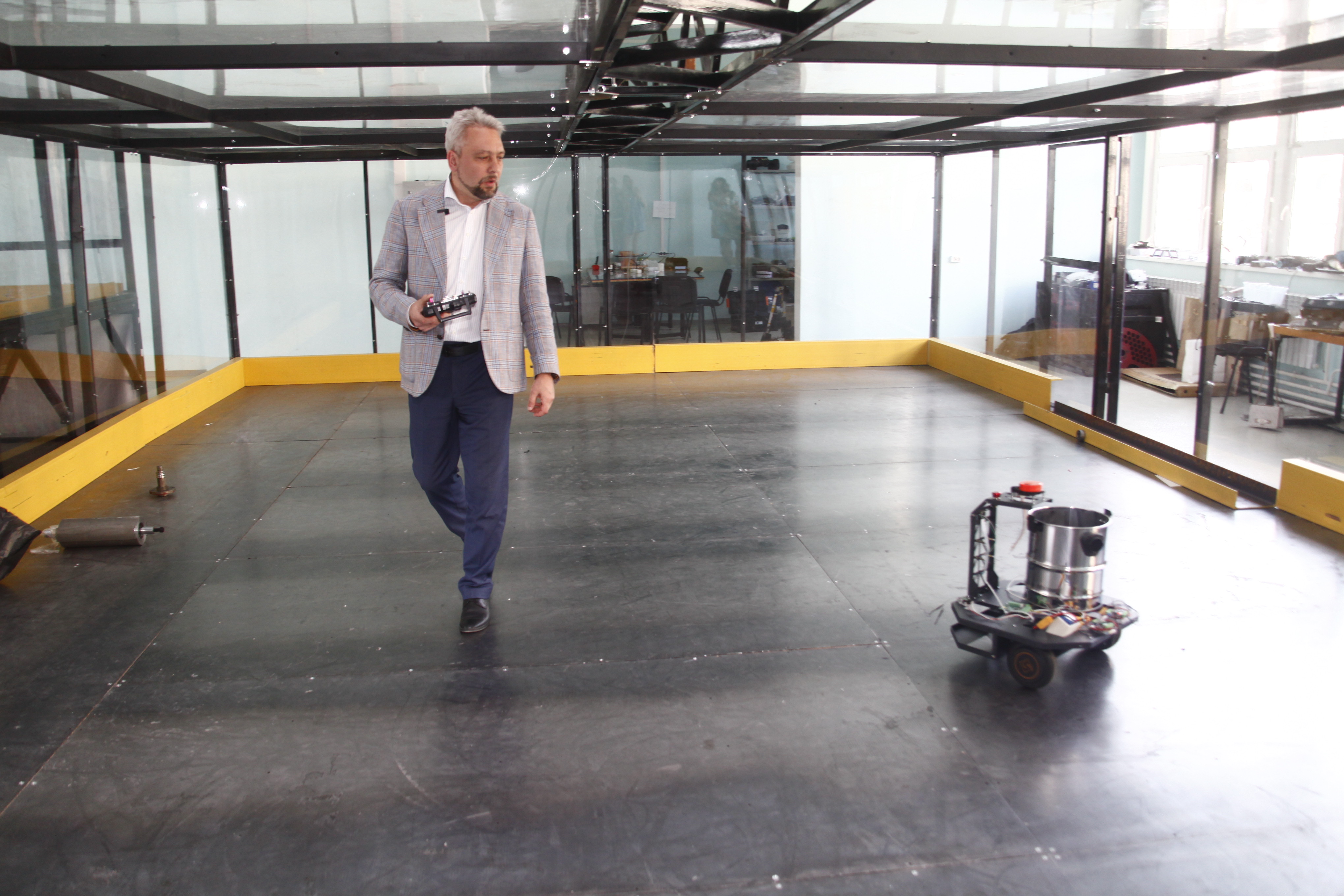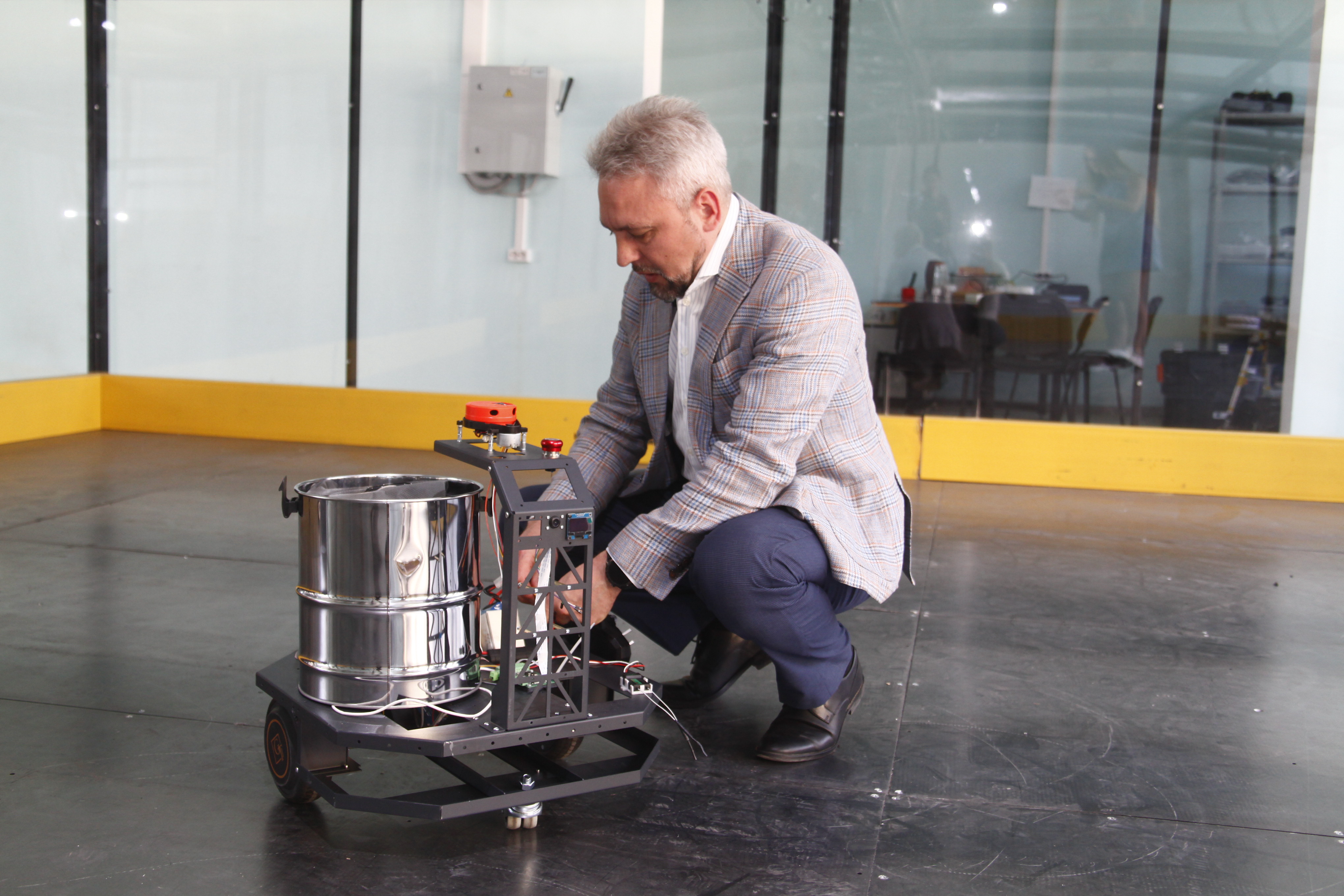«Отличием от обычного робота-пылесоса является то, что его работа востребована тогда, когда в помещении есть люди. Соответственно, он не должен их пугать. Чтобы его было видно, он песенки поёт и предупреждает о своём существовании, о своей работе», — рассказал руководитель студенческого конструкторского бюро «Прорыв: экстремальная робототехника» НГТУ НЭТИ Алексей Цыгулин.