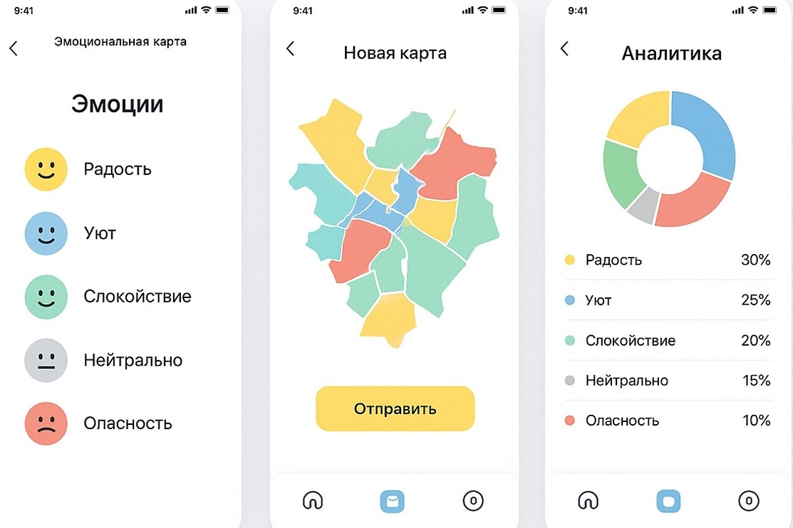 Принцип действия сервиса будет простым: пользователям нужно отмечать на карте точки, где они испытывают сильные эмоции — радость, восхищение, спокойствие или, наоборот, грусть и тревогу. В результате город «оживёт» на экране разными красками, меняясь и переливаясь в зависимости от душевного отклика аудитории.