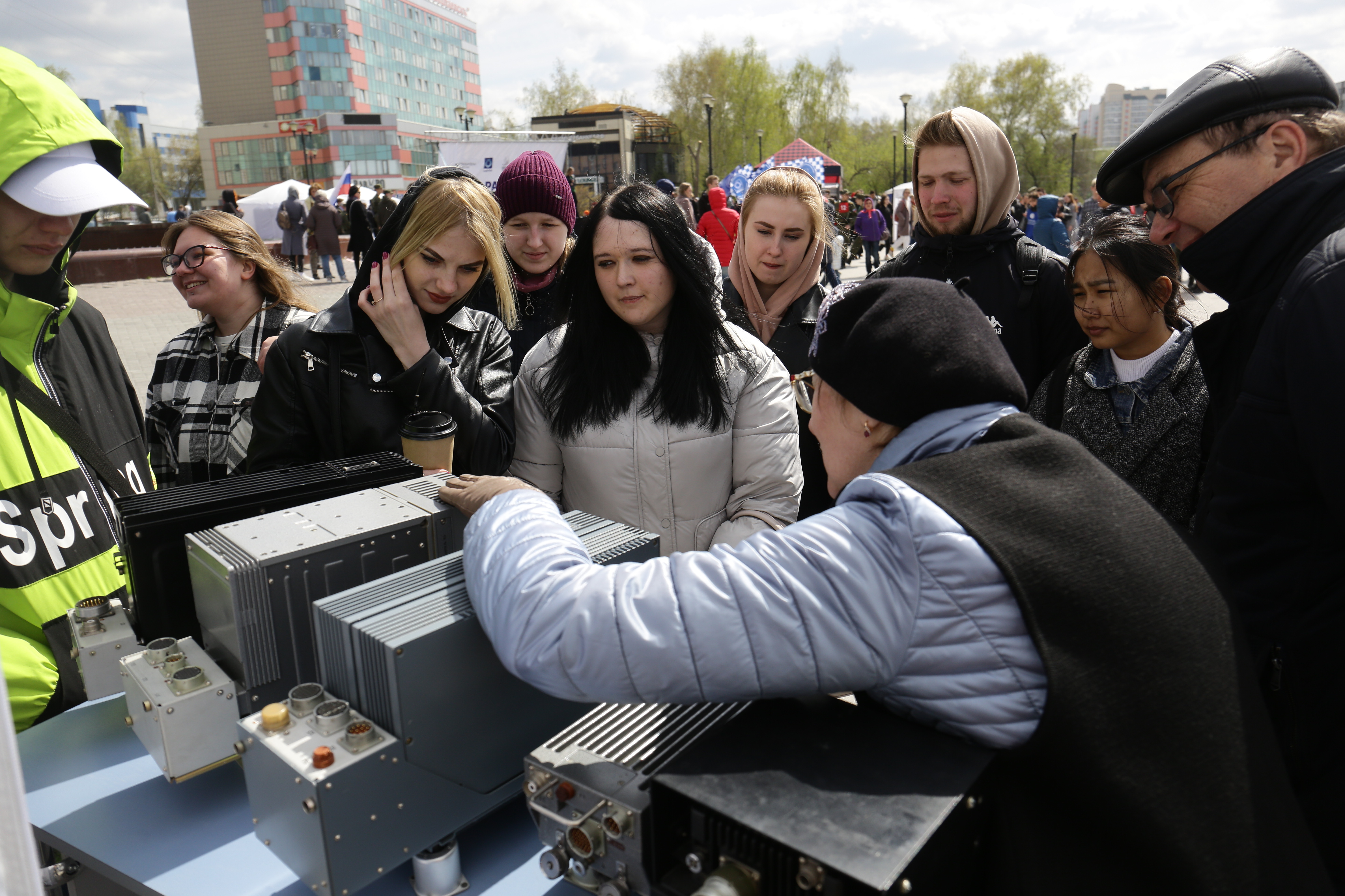 Несмотря на ветреную погоду, на праздник с концертом и розыгрышем призов пришли сотни человек, в основном имеющих отношение к этой профессиональной отрасли. В 15:00 радиоклуб Сибирского государственного университета телекоммуникаций и информатики выйдет на связь со 105-летним ледоколом «Красин».