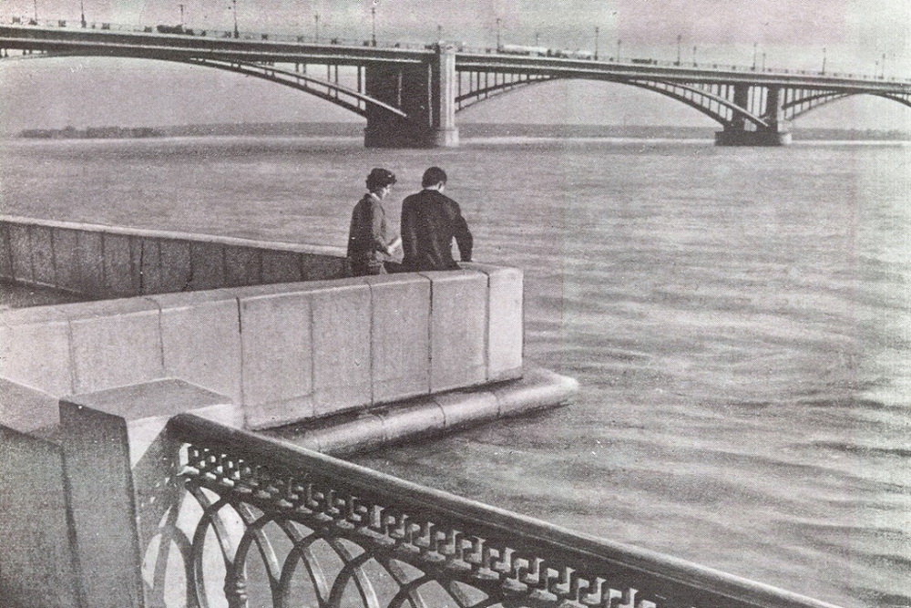 Евгений Ларин: Весна, хоть и немного капризная, в наши края всё же пришла. Первым признаком её наступления до 1957 года у нас был ледоход на Оби. Об этом рассказывает, например, очень трогательный лирический выпуск кинохроники Западно-Сибирской студии о том, как весной 1956 года новосибирцы любуются последним ледоходом в городе. После 1957 года, когда запустили в работу Обскую ГЭС, ледоходов на Оби не стало, весь лёд стал оставаться в водохранилище.