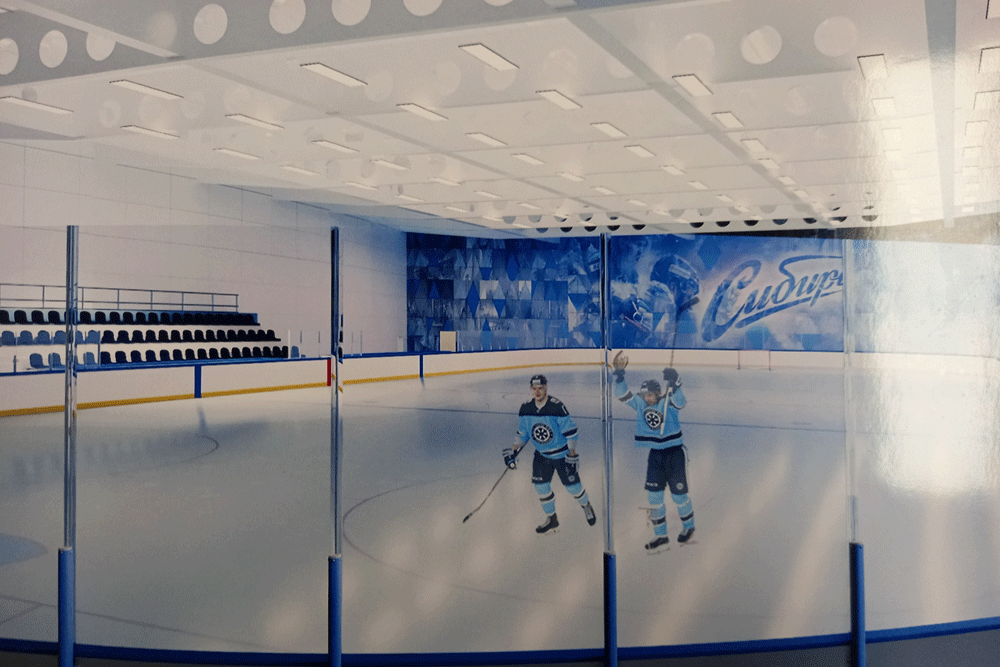 Стилистику и цветовые решения подобрали вместе с ХК «Сибирь», для которого новый ЛДС станет домашней площадкой.