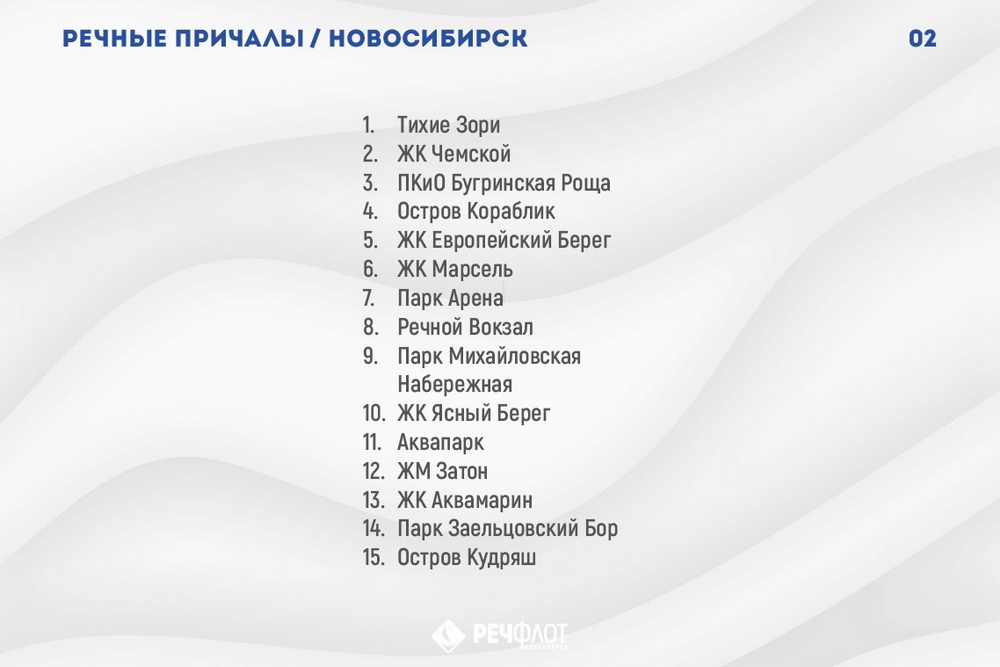 Антон Бочаров: Компания «Речфлот» выполняет социальные и коммерческие рейсы. В прошлом году запустили маршрут «Тихие Зори — Северо-Чемской — Речной вокзал». В утренние часы с левого берега новосибирцы едут на работу на правый, а вечером возвращаются назад. Несколько десятков пассажиров регулярно пользуются этой возможностью.