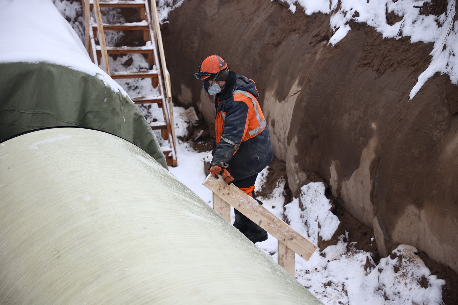 Коммуникации обновляют зимой, поскольку в это время нагрузка на них минимальна. Сейчас бригады работают на левой ветке. Её восстанавливают с помощью технологии «труба в трубу»: в старую вставляют новую из композитных материалов, устойчивых к агрессивной среде.