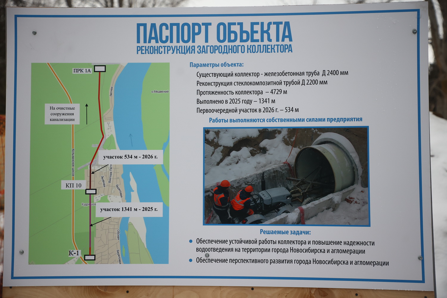 Через этот коллектор каждые сутки проходит 500 тысяч кубометров стоков — из Новосибирска, города Обь, Краснообска. Своевременный ремонт здесь особенно важен: он гарантирует бесперебойную работу канализации.