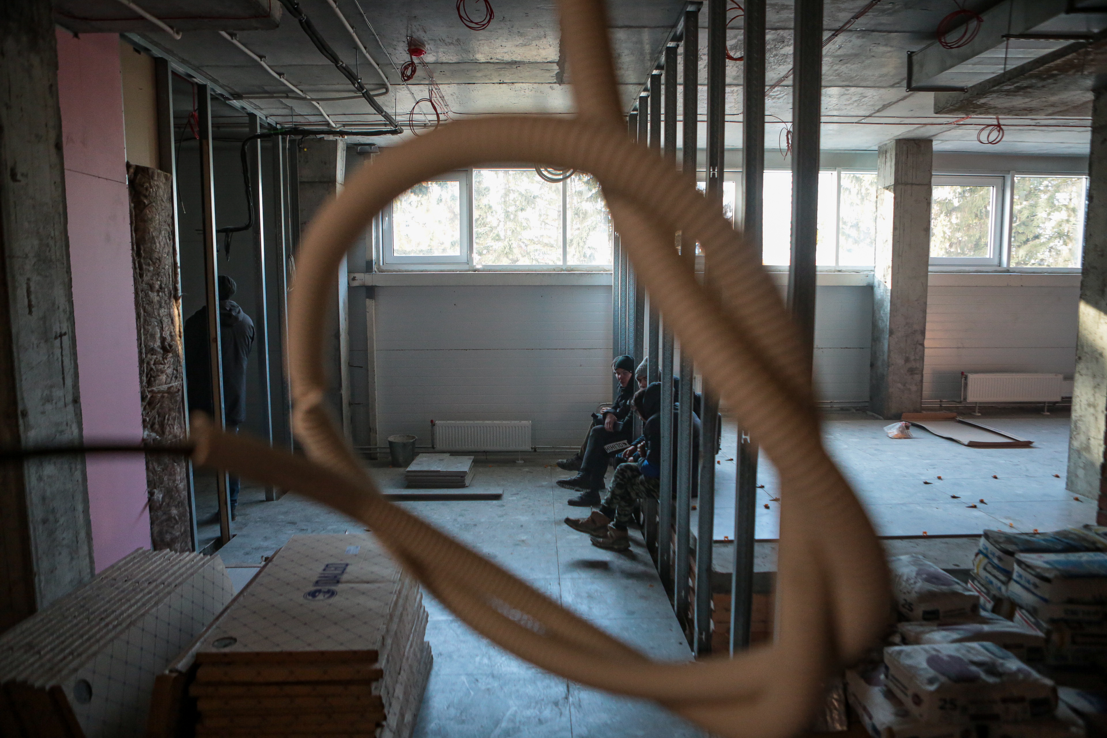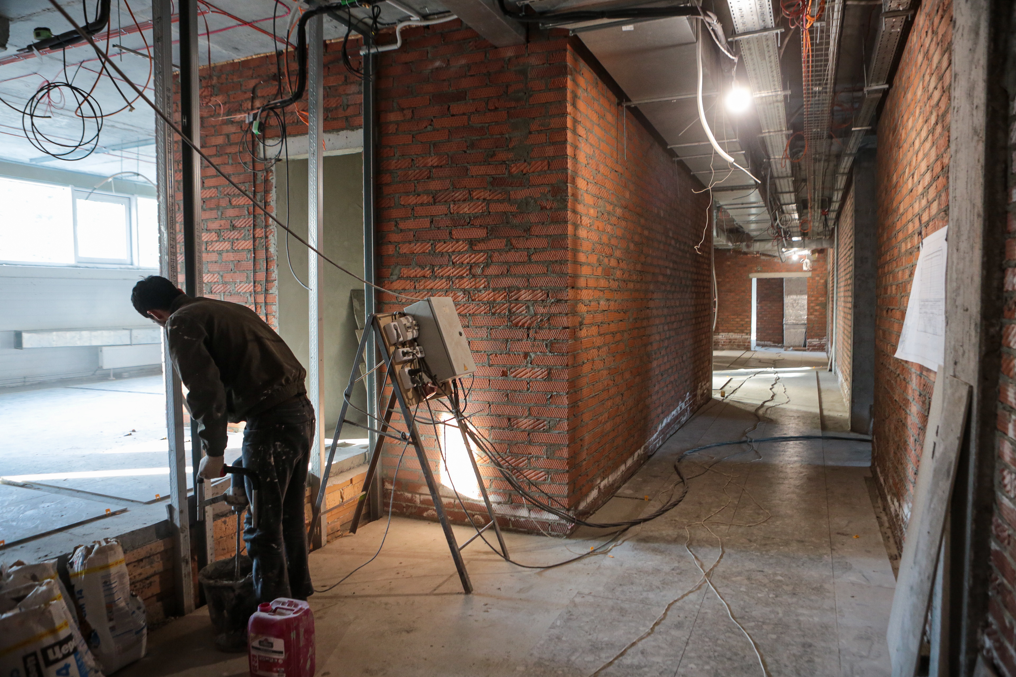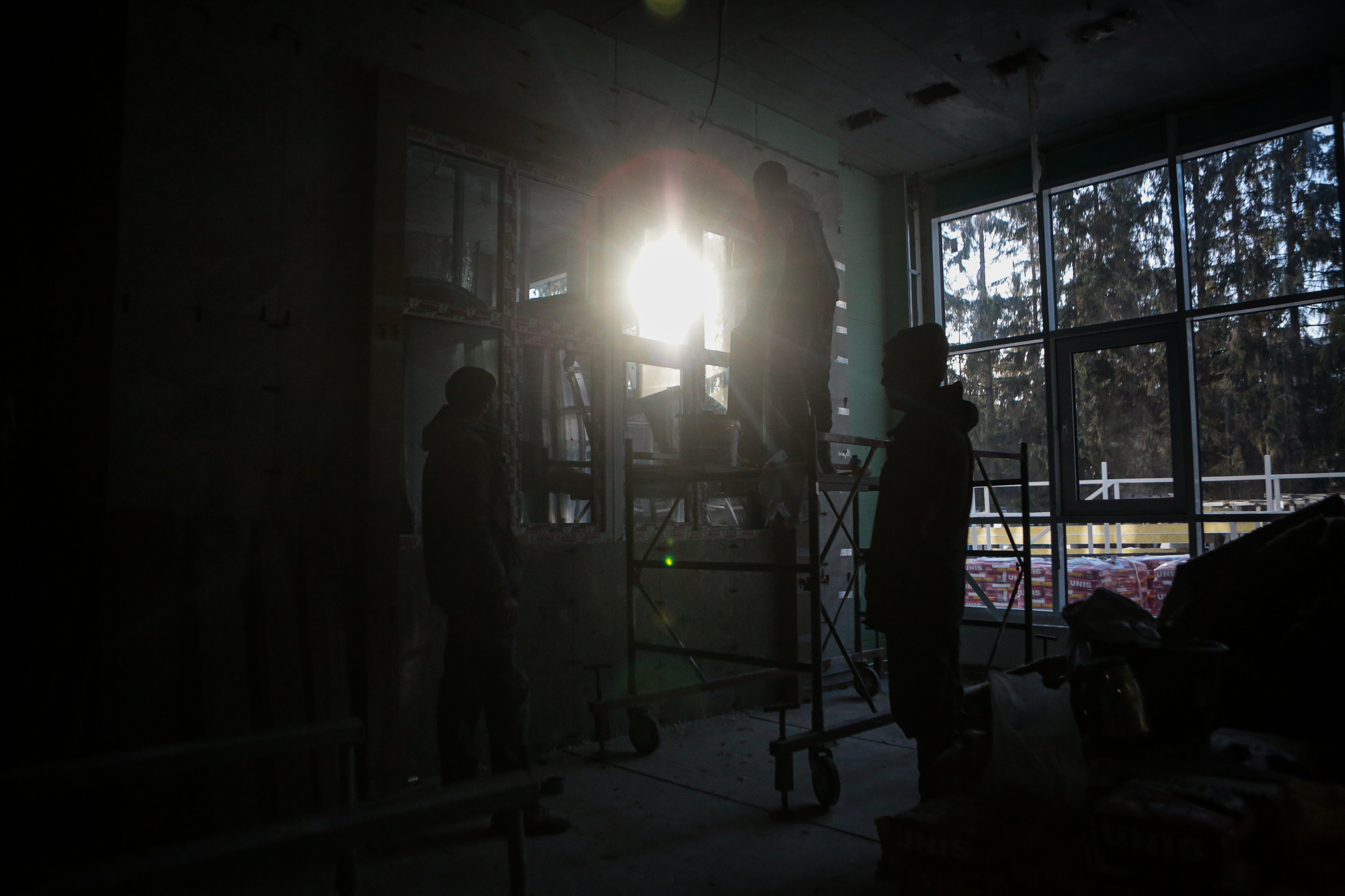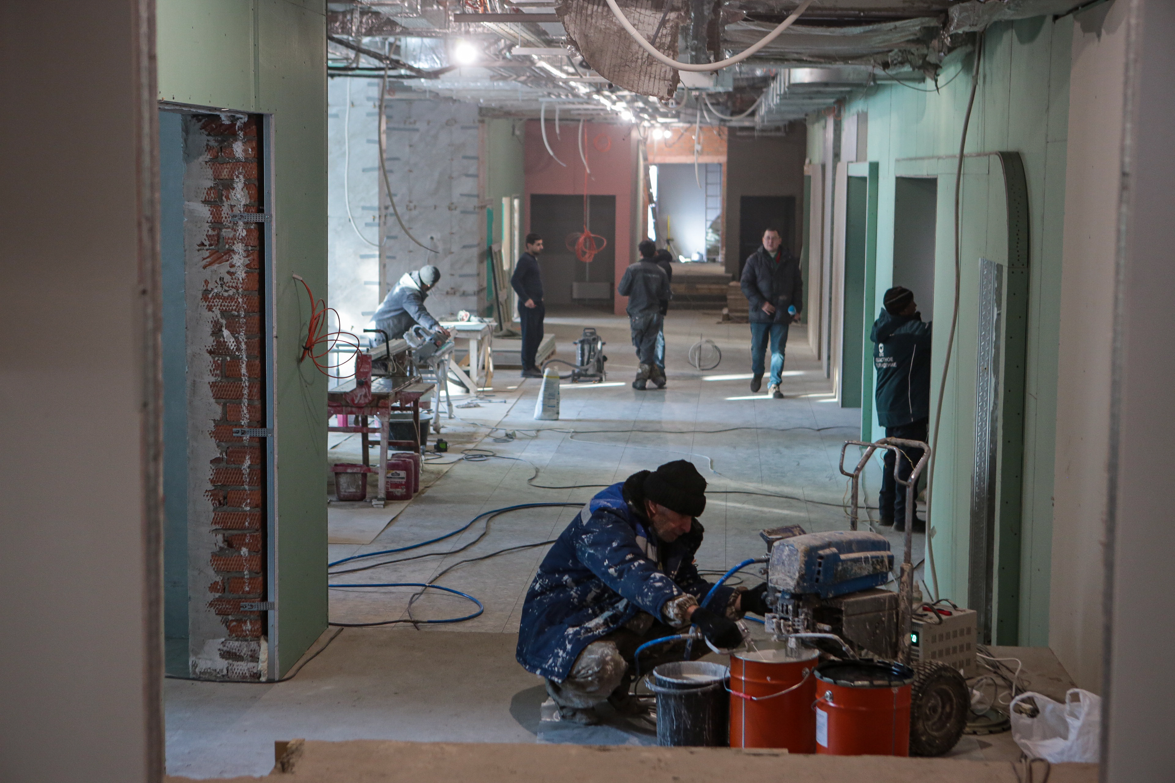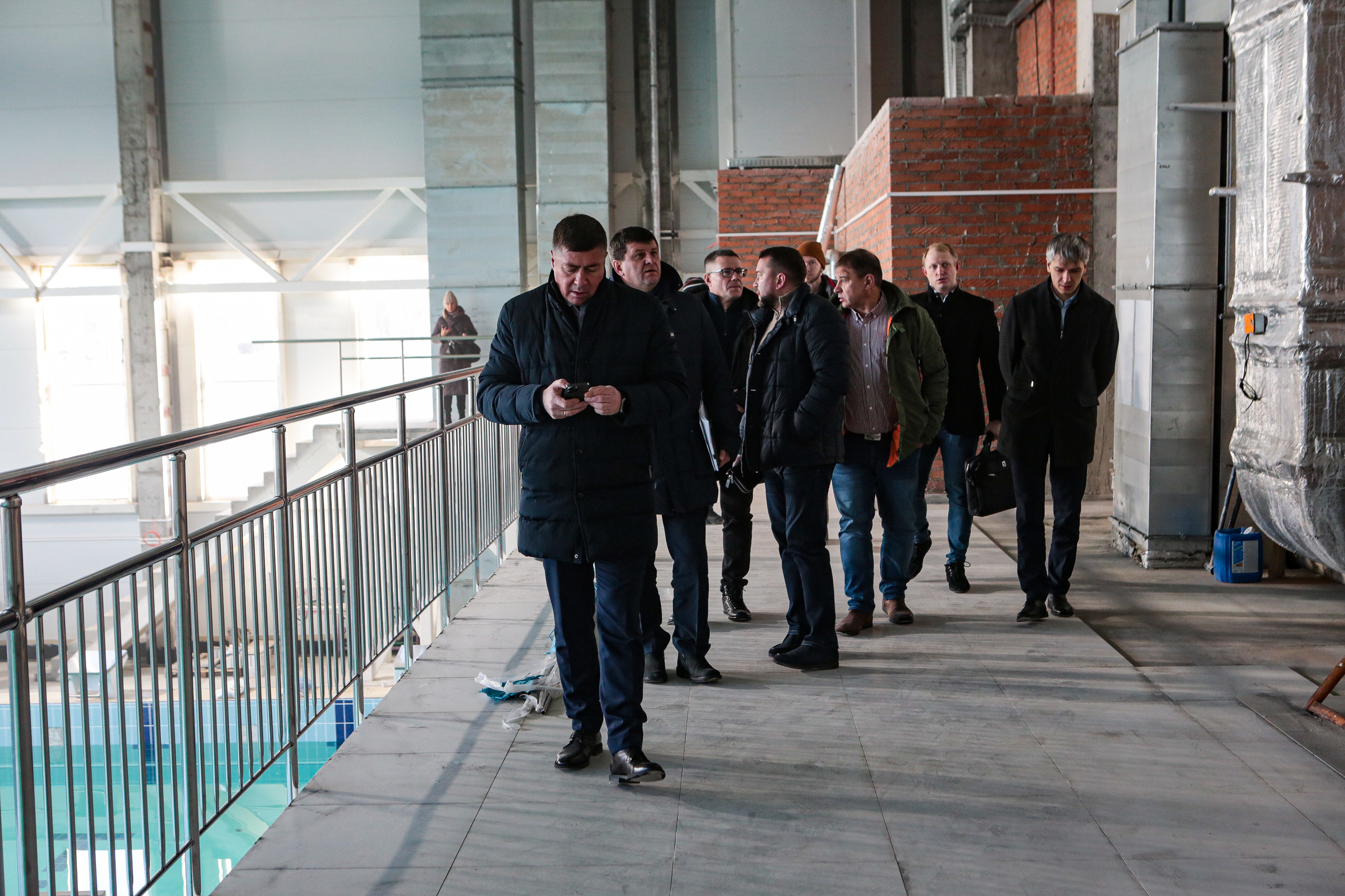 Строители перешли к отделочным работам, их завершат в конце года. А в начале следующего готовый бассейн передадут спортсменам.
