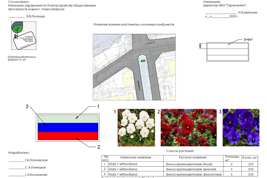 «Цветочное оформление мемориальных комплексов в традициях садово-паркового искусства всегда делают из однолетников. Они держат цвет весь сезон, создают цветовые акценты, привлекают внимание и подчёркивают значимость территории. Обычно мы использовали сальвию блестящую — у неё великолепный красный цвет, бархатцы, или тагетесы, но в этом году решили поменять состав однолетних культур. Три чистых цвета российского флага — красно-бордовый, белый и синий с лиловым подтоном — воссоздадим из виолы. Анютины глазки, или фиалка Виттрока (Víola), — цветок холодостойкий, он не боится заморозков. Именно поэтому попробуем его», — объяснила выбор Светлана Гижицкая.
