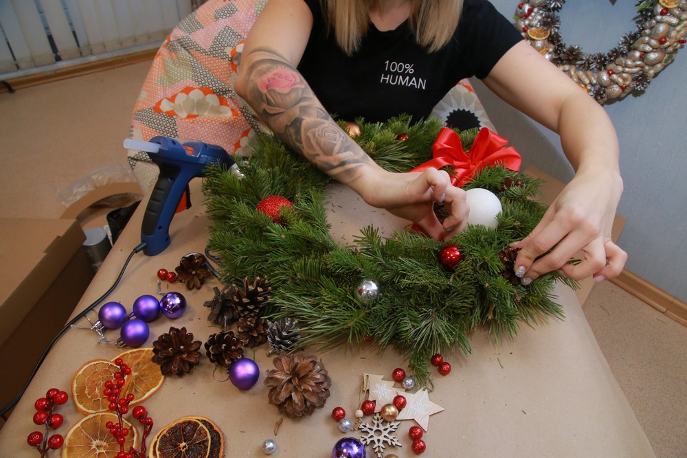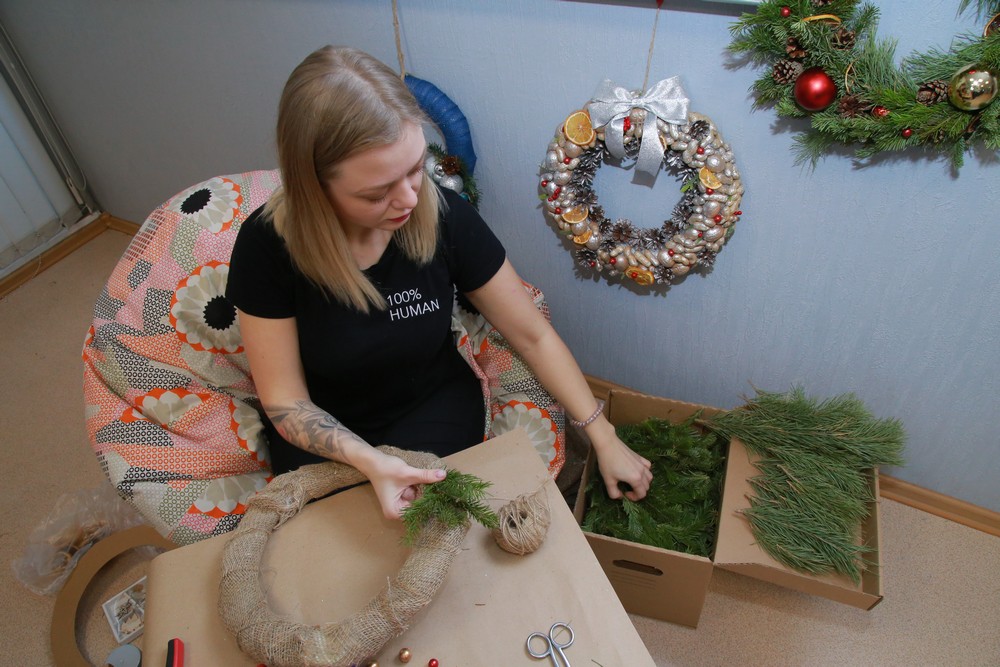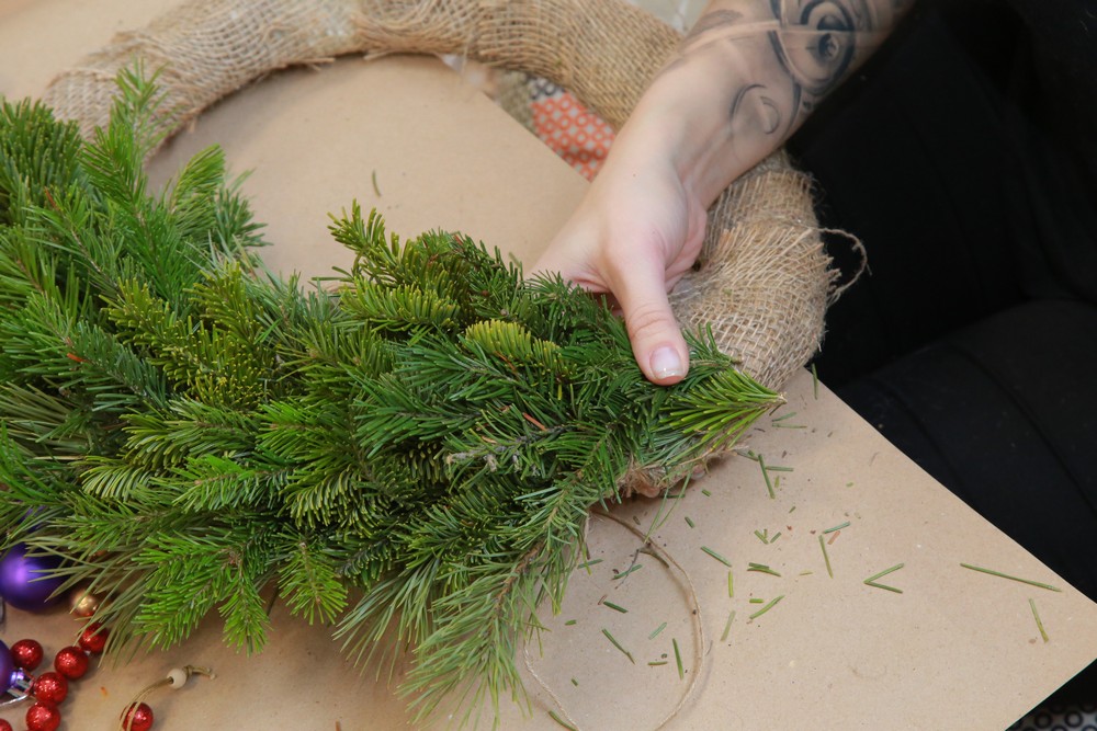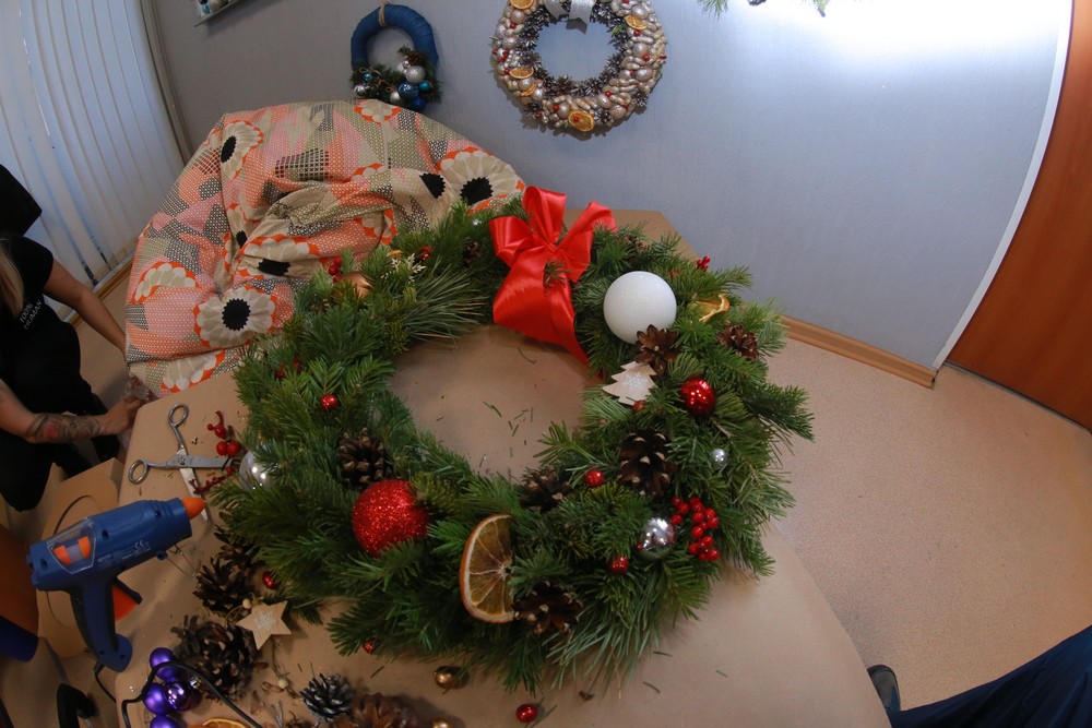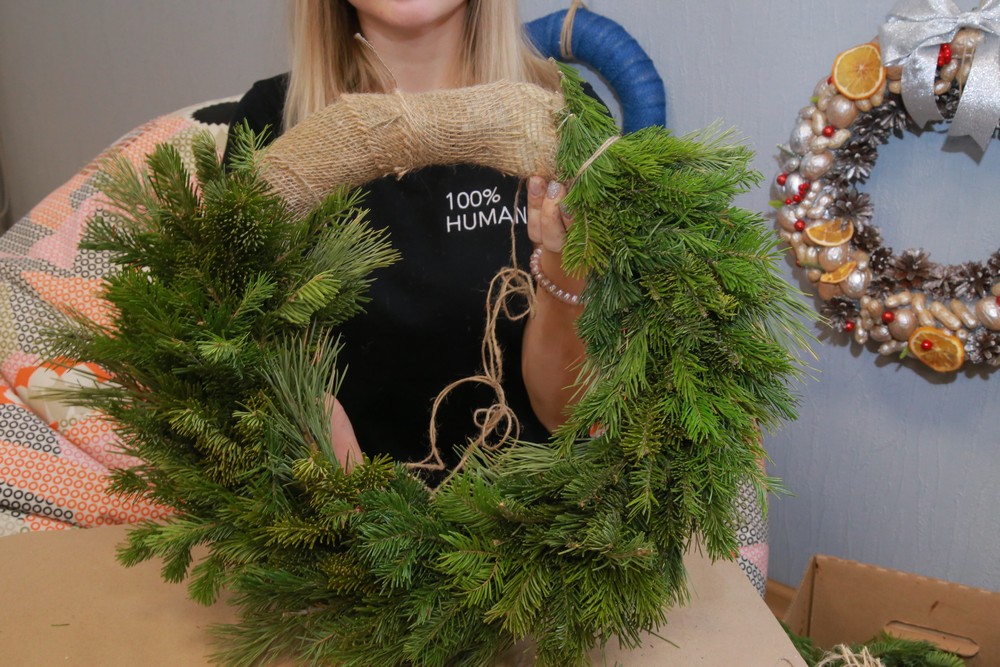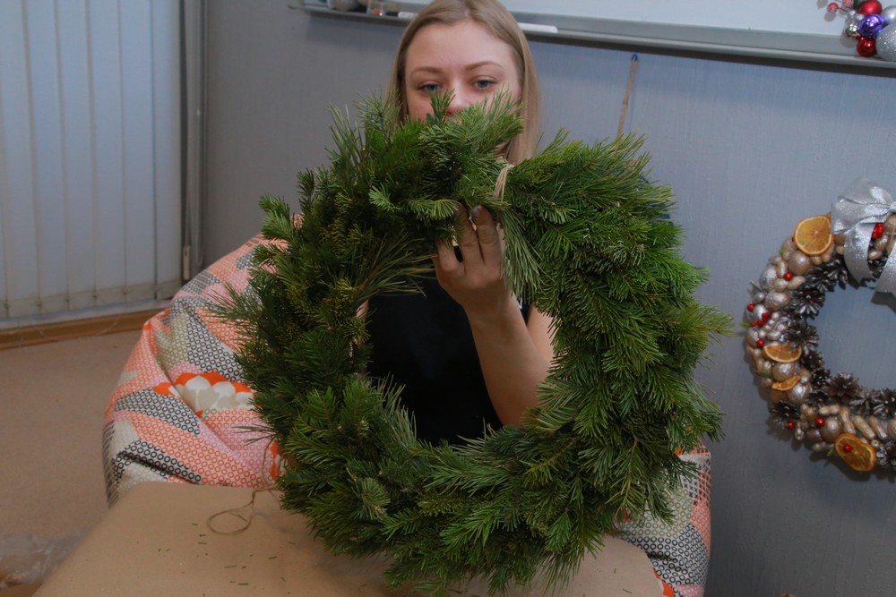 Новогодний венок из еловых веток и шишек: мастер-класс