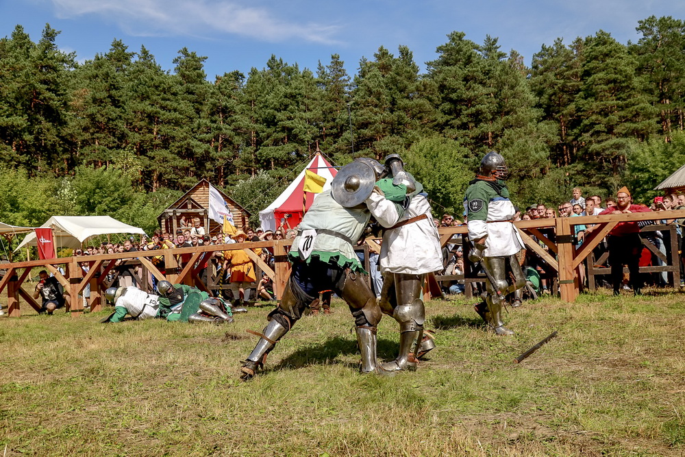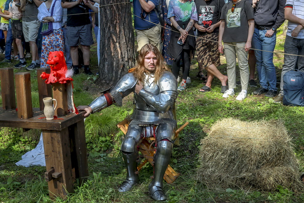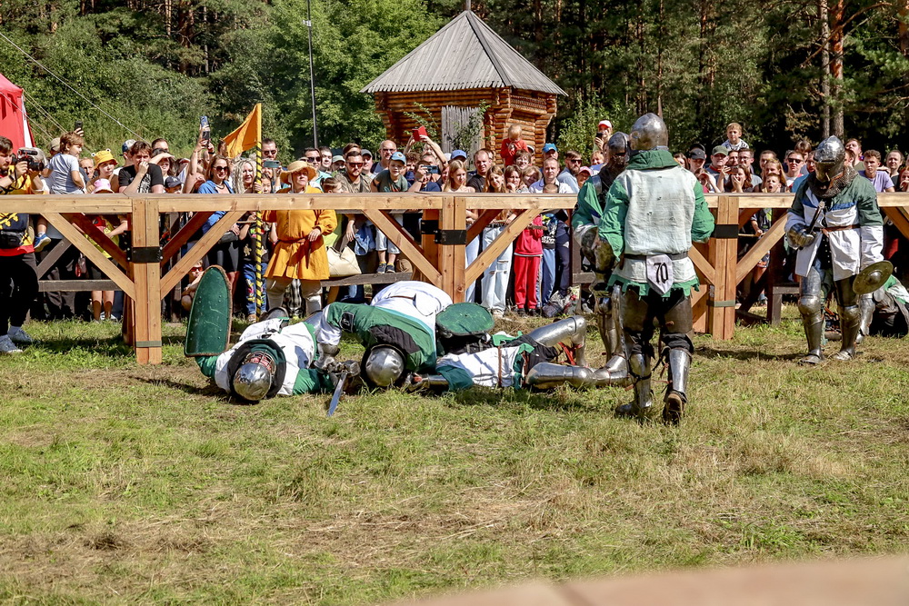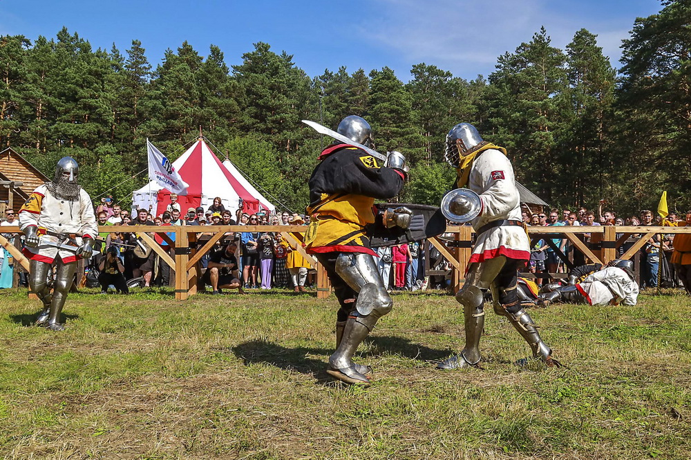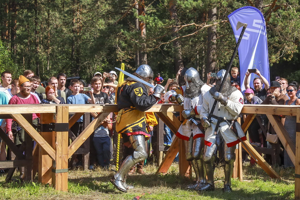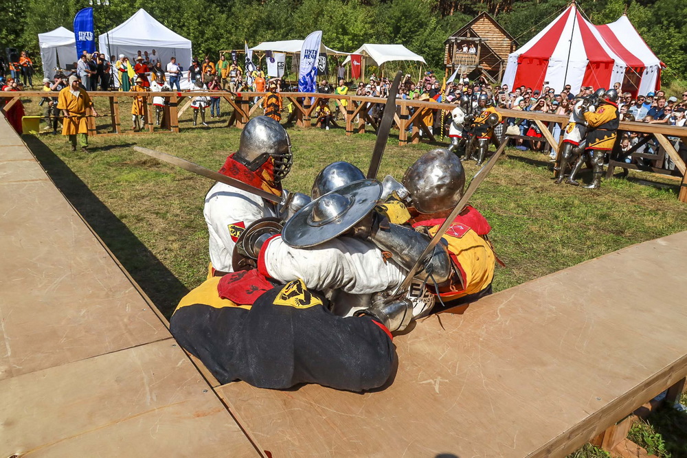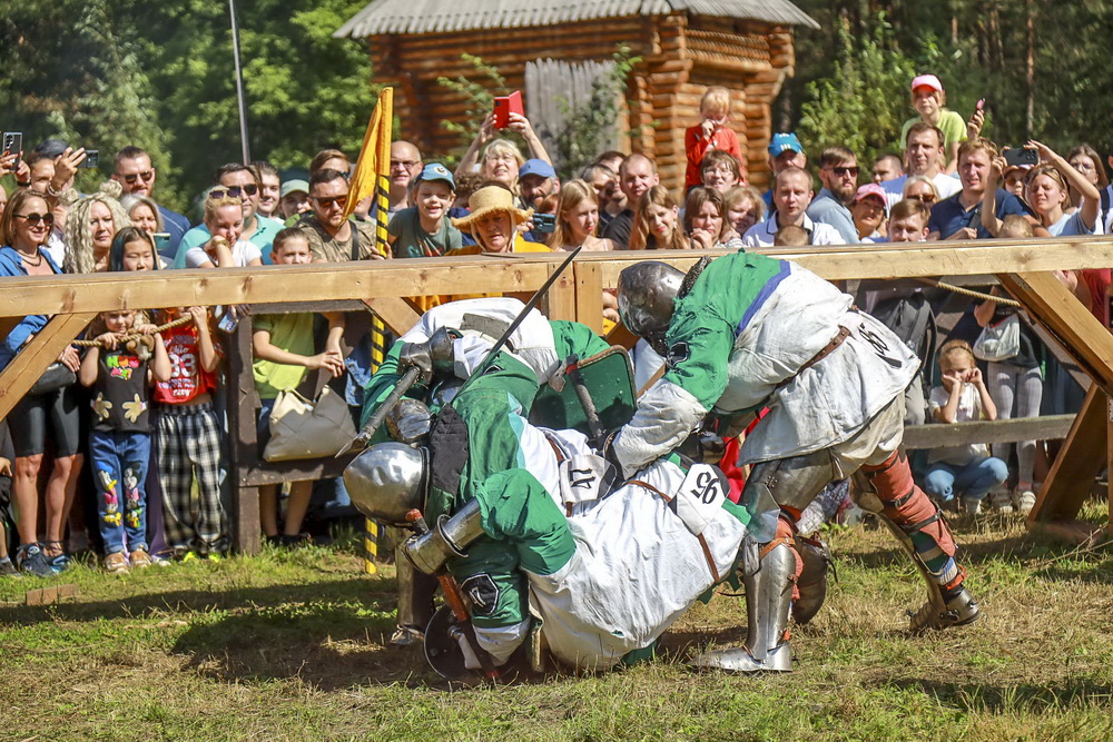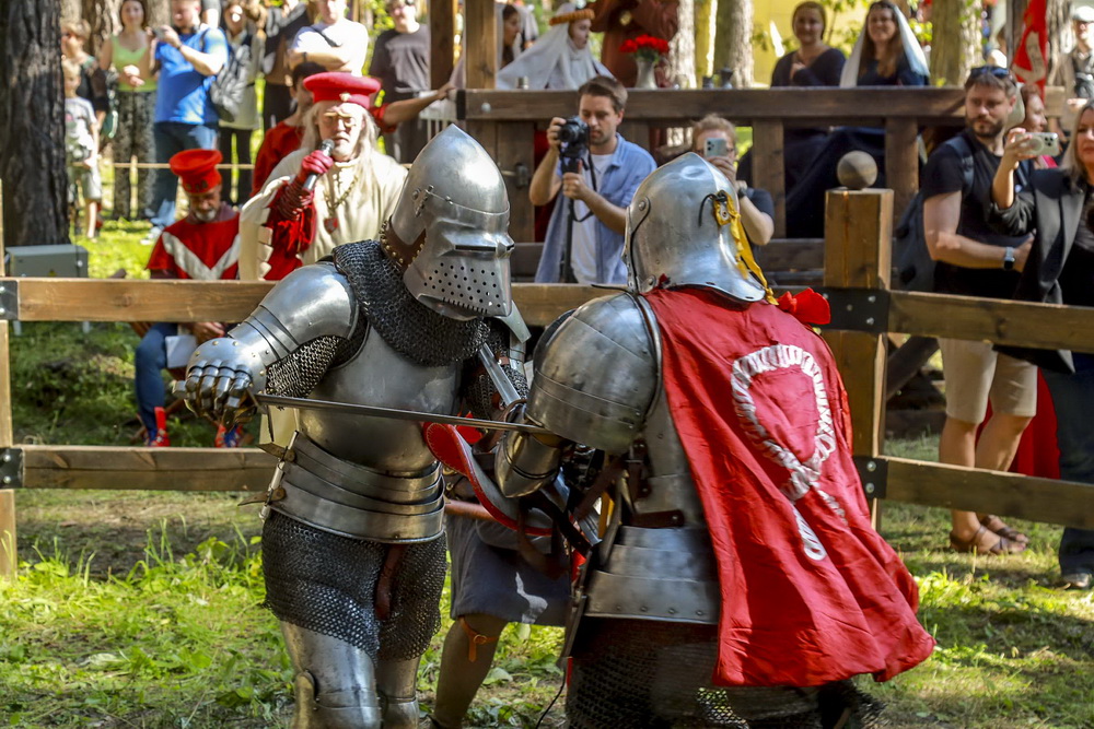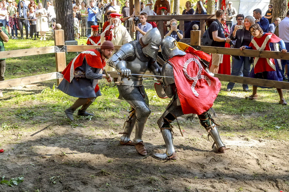 Особый интерес представляет собой ристалище — зрелищные бои в металлических доспехах.