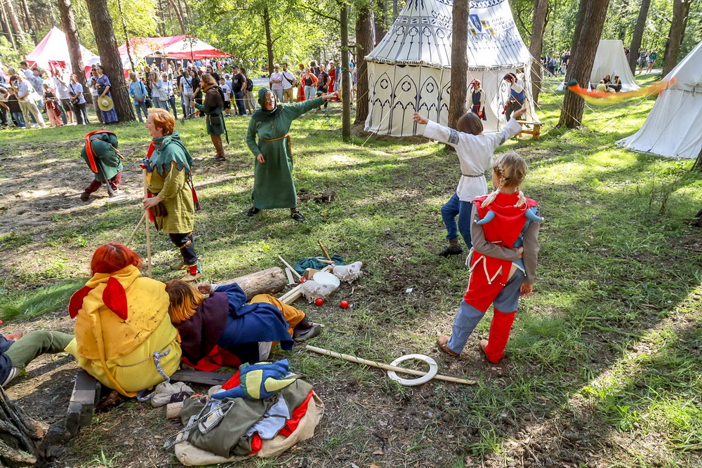 В этом году посетителей ждёт множество площадок: турнир рыцарей и суд прекрасных дам, выступление театра шутов, стрельба из лука и метание топоров, лагерь викингов, кузнечная артель, гончарные мастерские и не только.
