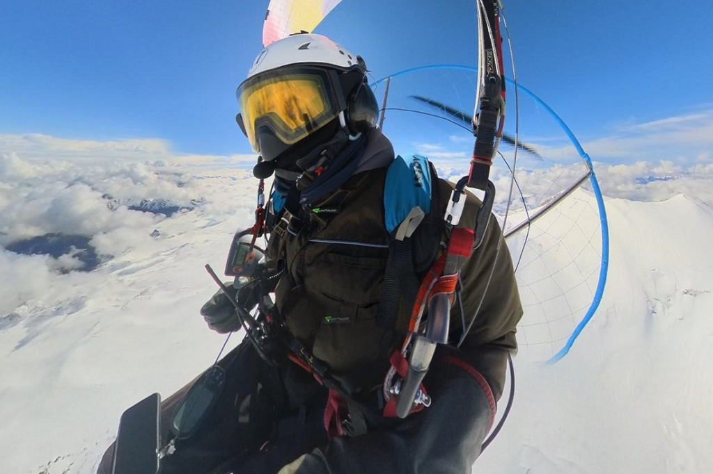 С погодой повезло: новосибирец пролетел над Эльбрусом на мотопараплане