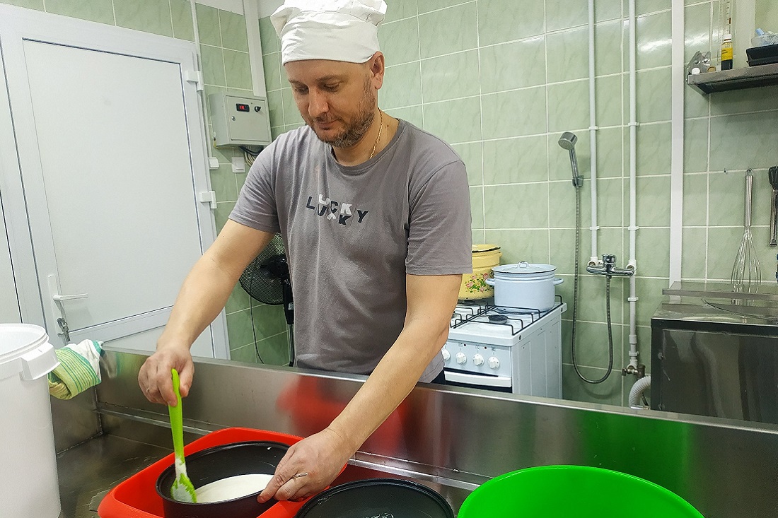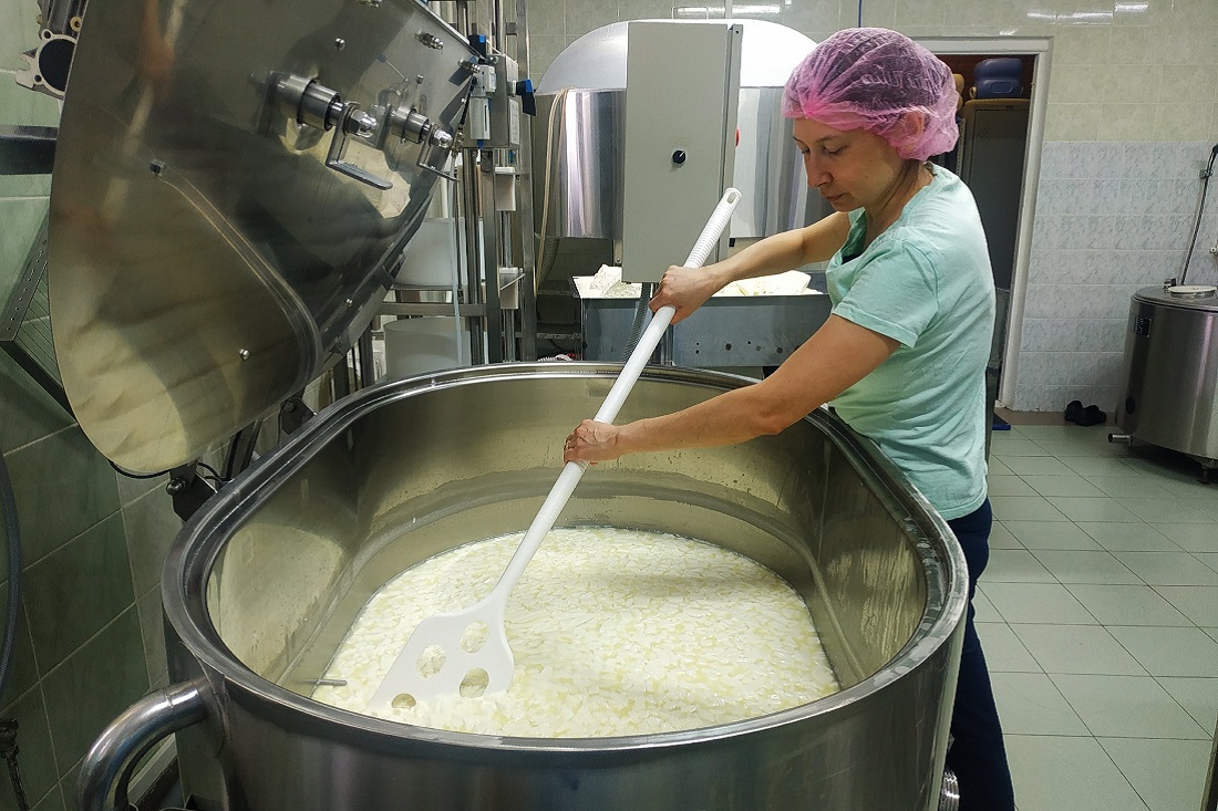 «В какой-то момент мы с мужем приняли решение, что хорошо заниматься делом, которое в старости станет нашим делом жизни, семейным делом и, возможно, будет приносить доход, — рассказывает Людмила Степанова. — Мы купили оборудование, небольшую ванну на 350 литров, сняли помещение, сделали своими руками ремонт. То, что вы сейчас видите, — это расширение уже в третий раз. Изначально вся наша сыроварня, включая вход, раздевалку, дезинфекцию рук, камеру созревания, — всё было на 40 квадратных метрах. Сейчас мы расширились, докупили оборудование, это позволило увеличить производительность в два раза».
