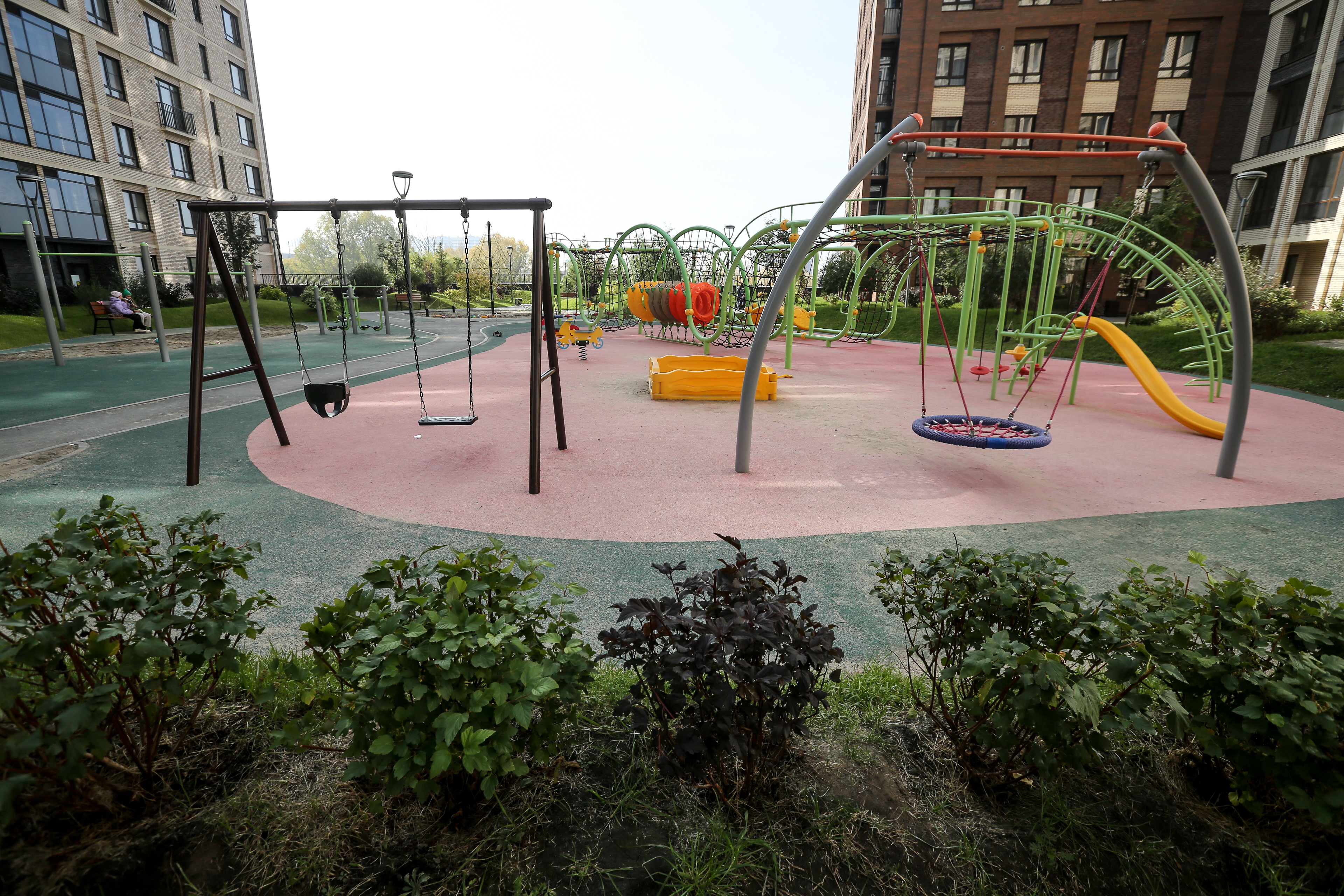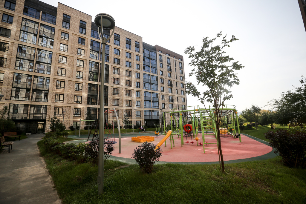 Все дома в ЖК имеют один номер — 65. Различить их можно по дробям. Комплекс занимает территорию площадью 7,5 га. Она огорожена, пройти внутрь можно только с помощью электронного ключа. Во дворах нет автостоянок, всю технику размещают по периметру и на подземной парковке.