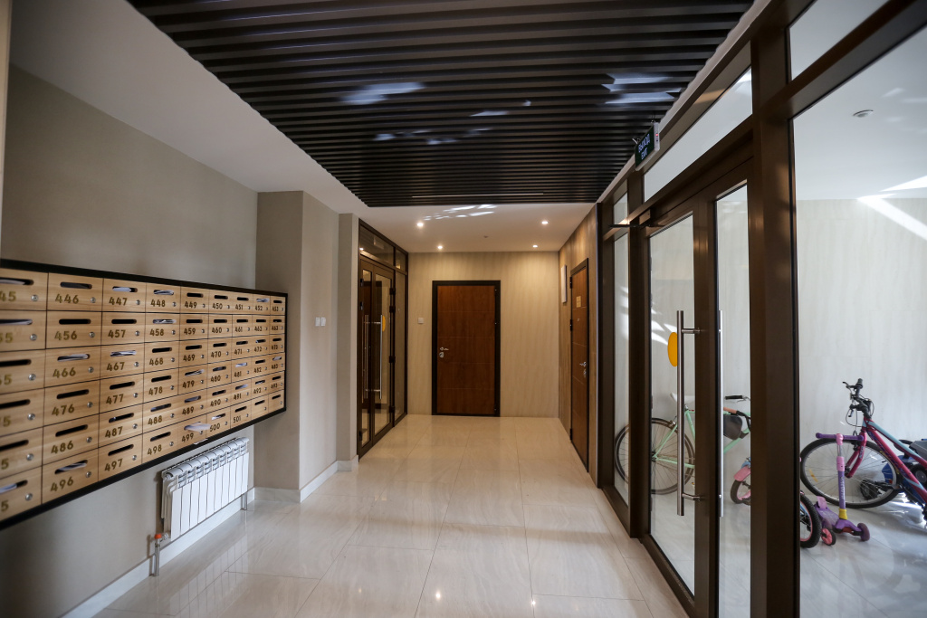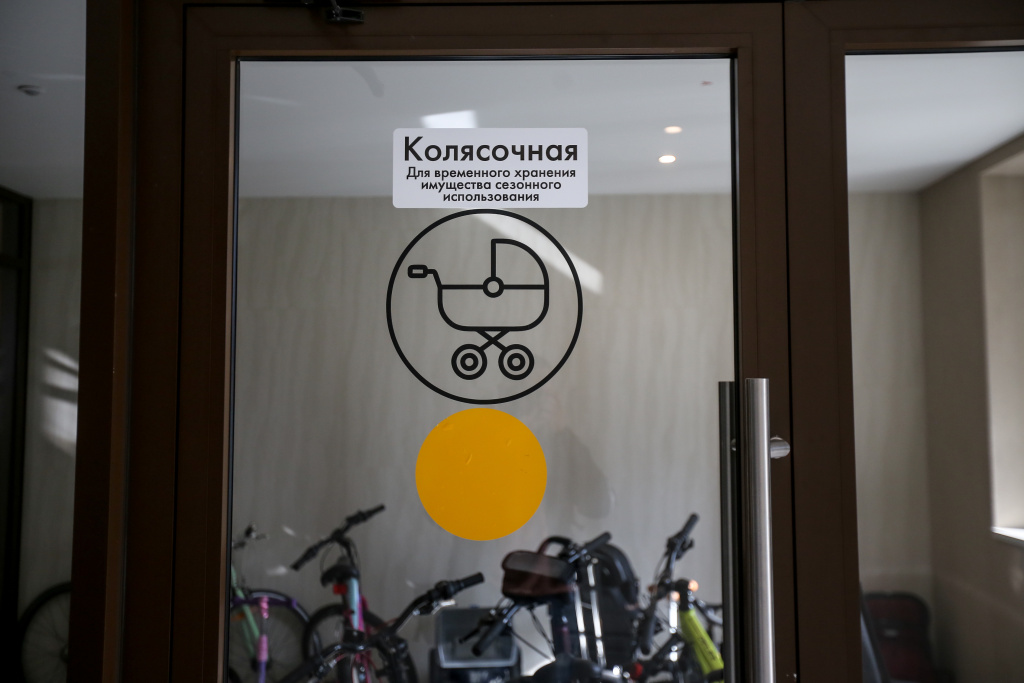 Кроме жилых домов, в квартале построили одноэтажный блок для служебных помещений и подземную автостоянку на 93 места, куда можно попасть прямо на лифте. Кстати, место на парковке стоит 995 тысяч рублей. Кладовую площадью 5,4 кв. метра продают за 325 тысяч. На первых этажах в холлах оборудовали просторные колясочные. Правда, в них хранят преимущественно велосипеды и самокаты.