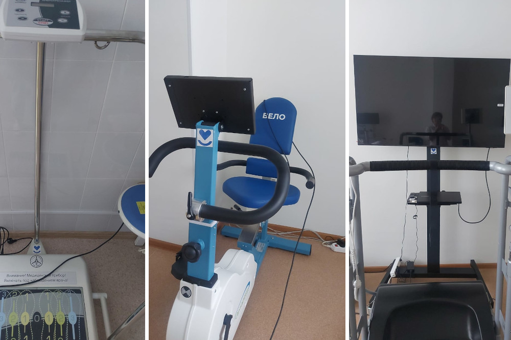 Часто врачи назначают пациентам разминки на велоэргометре и беговой дорожке, каждый из них включали более 500 раз. Тренажёр-брусья «Имитрон» незаменим для восстановления первичных навыков ходьбы у людей с тяжёлыми двигательными нарушениями. Также в отдельных случаях задействуют вибрационную платформу, пневмомассажёр и «Амплипульс 5.1».