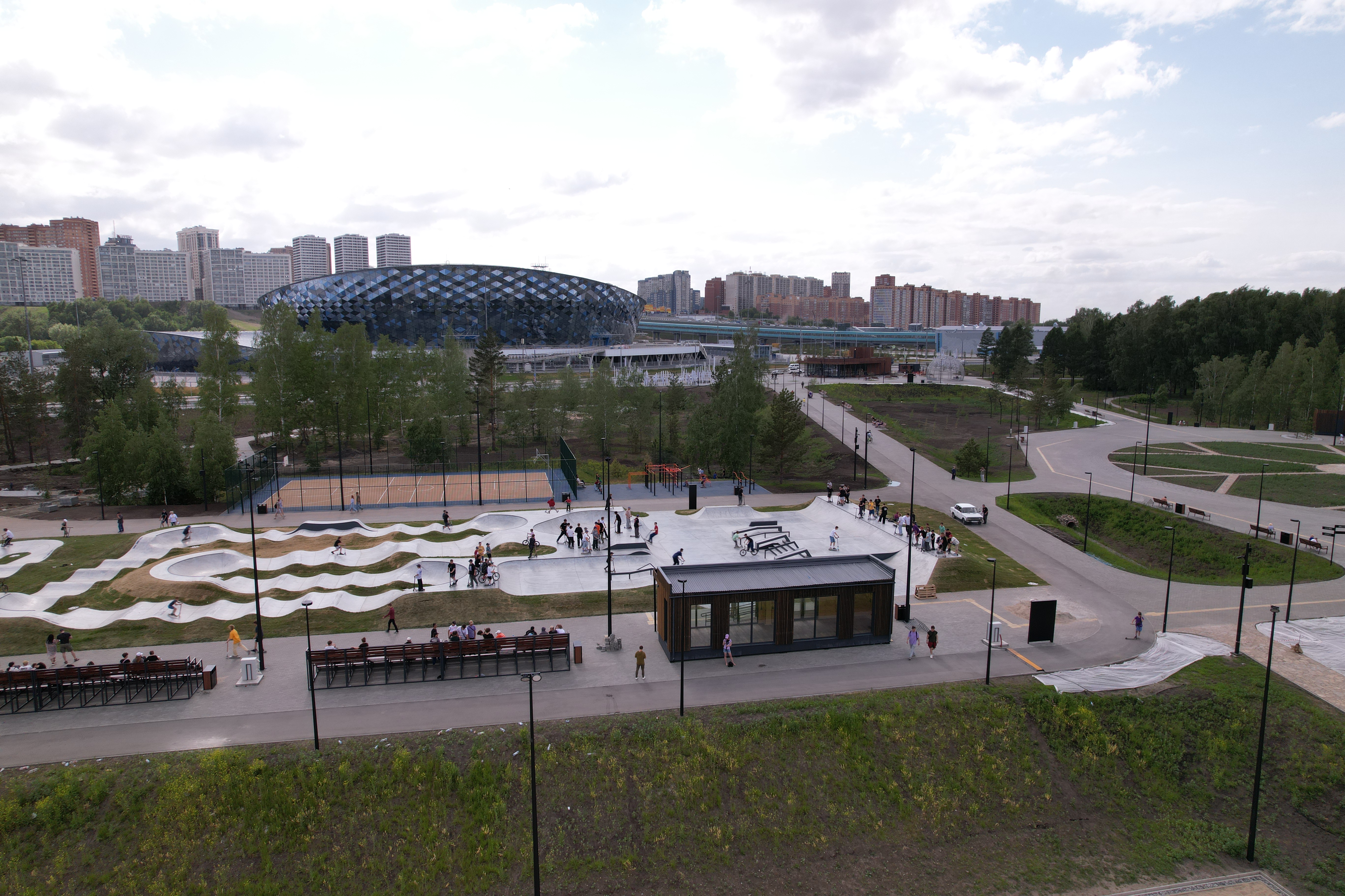Есть детский памп-трек для обучения и взрослые горки для отработки навыков. Подобной площадки в Новосибирске не было.